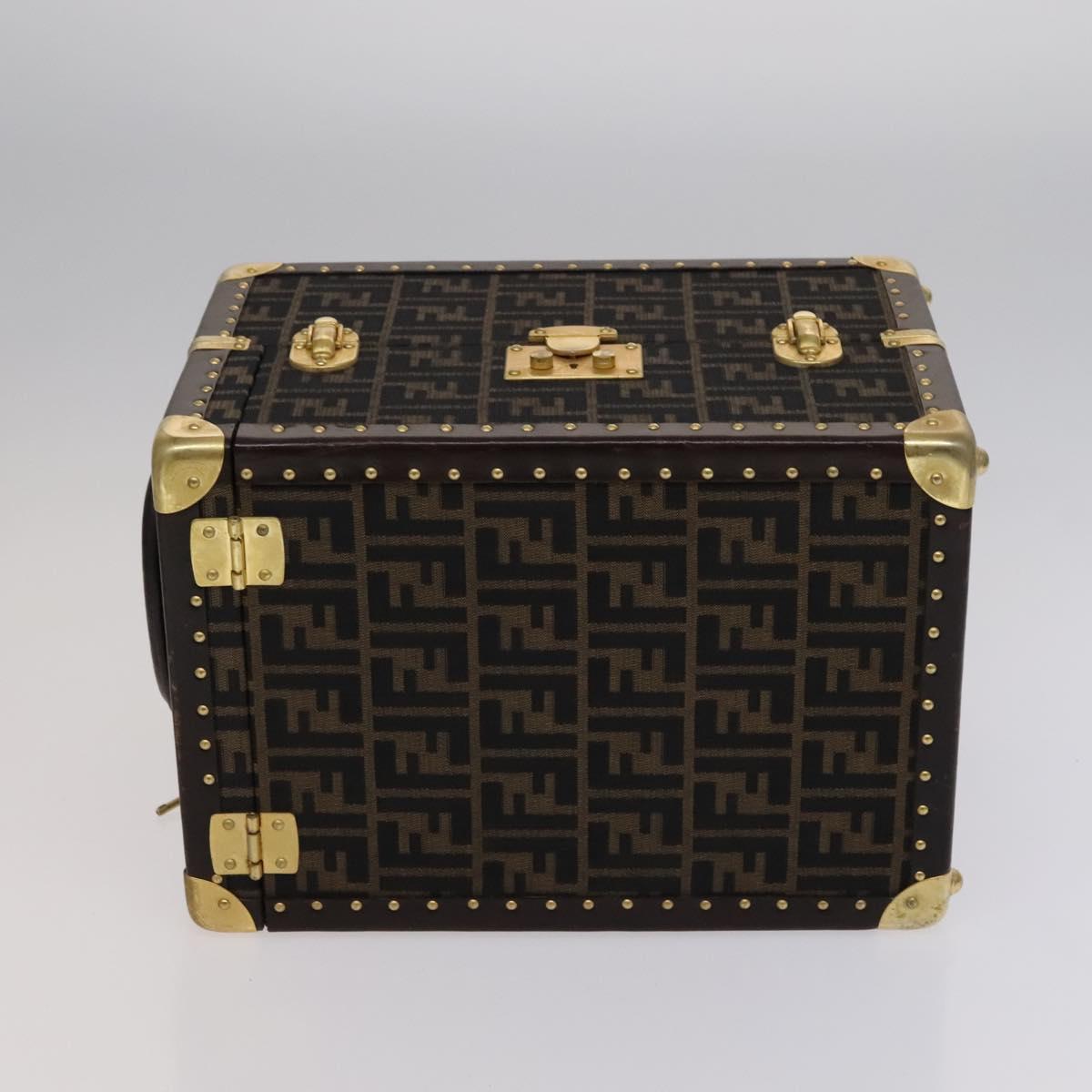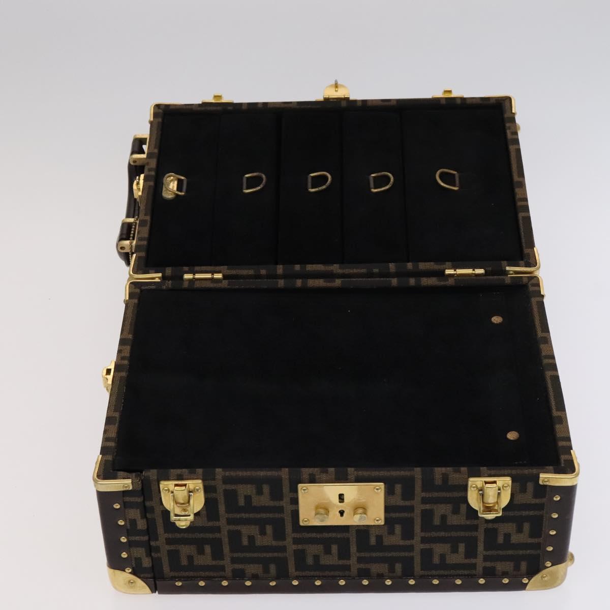 FENDI Zucca Canvas Trunk Jewelry Case Jewelry Box Black Brown Auth 113789SV