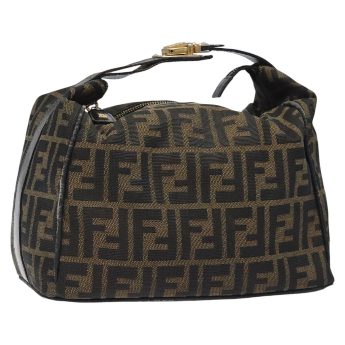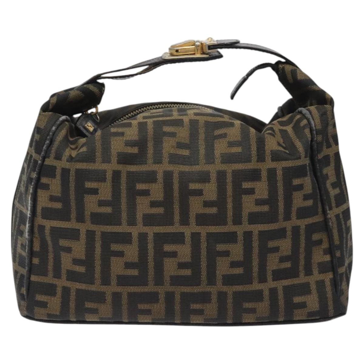 FENDI Zucca Canvas Vanity Pouch Black Brown Auth 125937