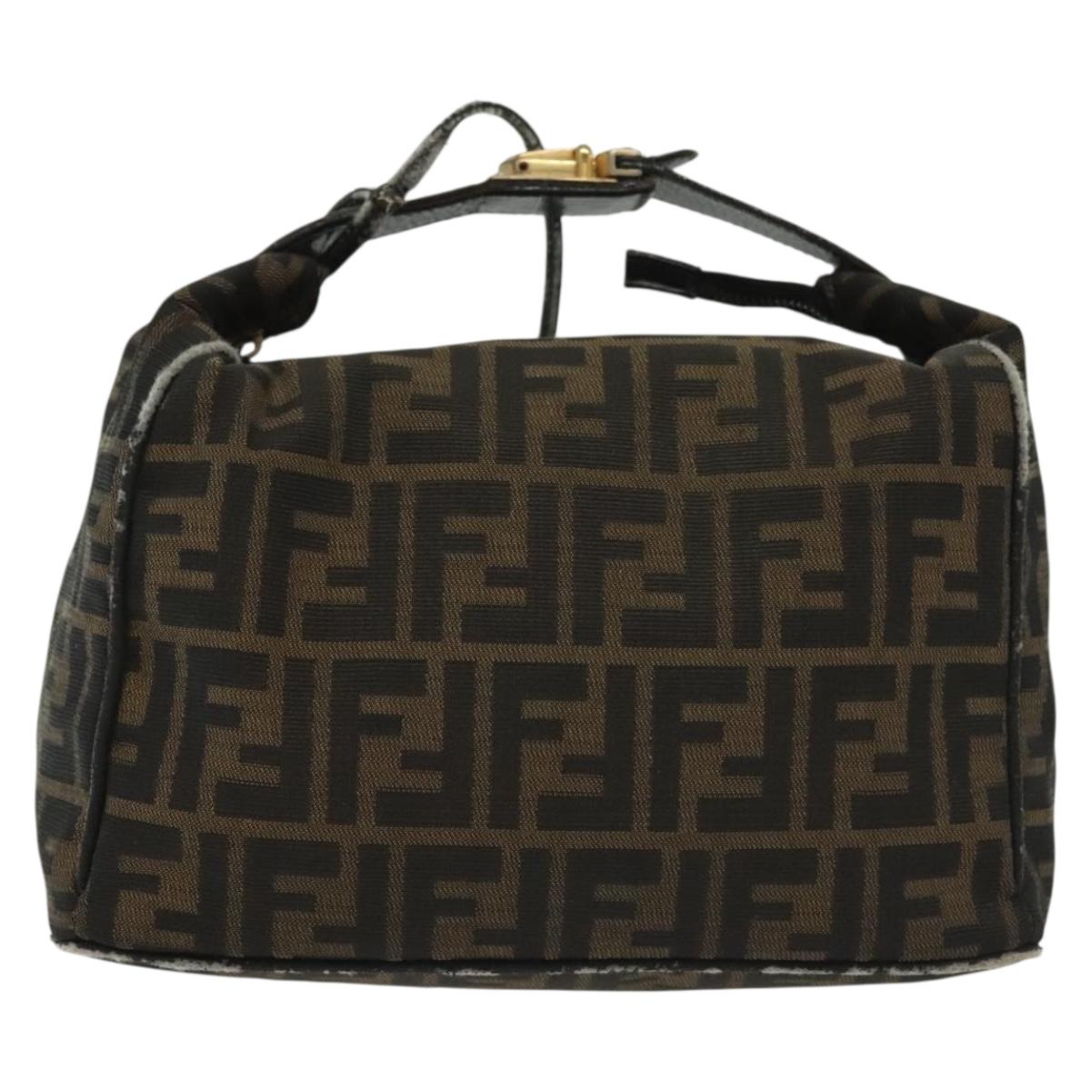FENDI Zucca Canvas Vanity Pouch Black Brown Auth 136971