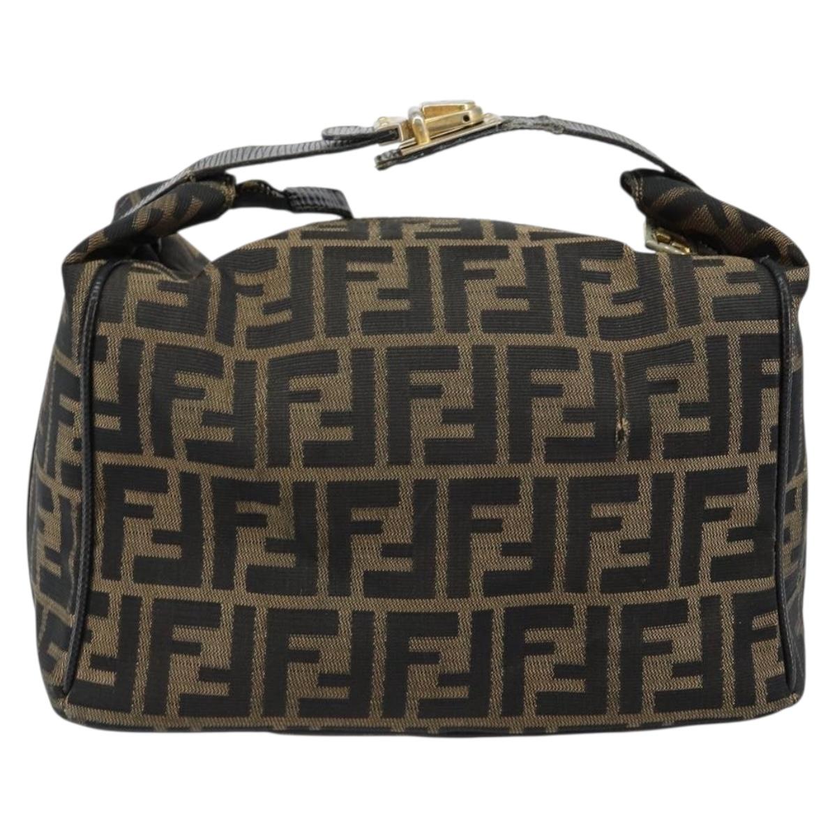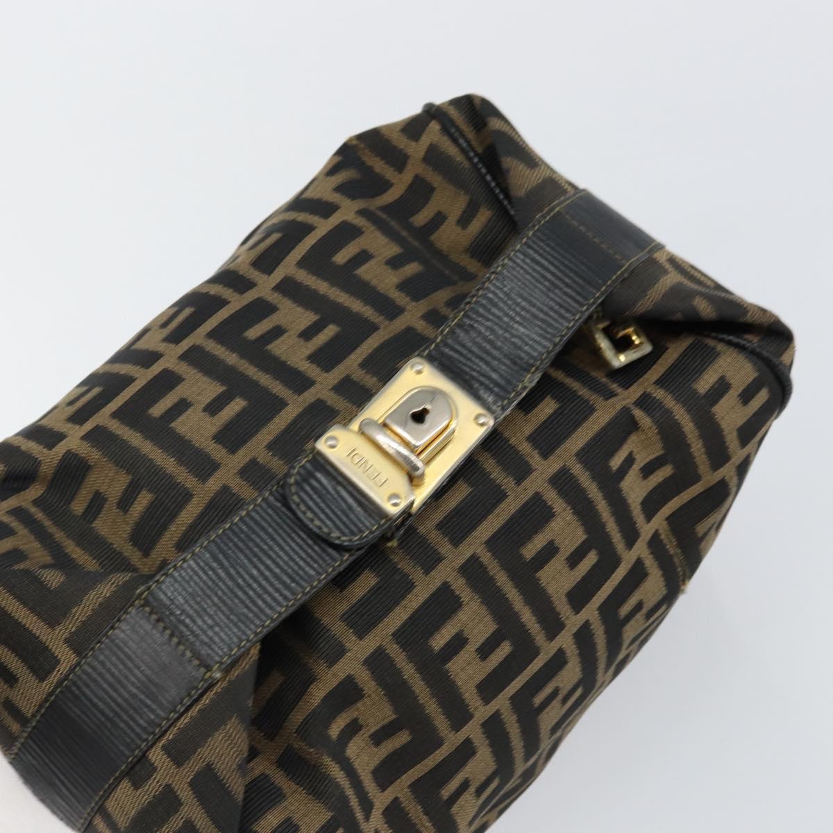 FENDI Zucca Canvas Vanity Pouch Black Brown Auth 146340