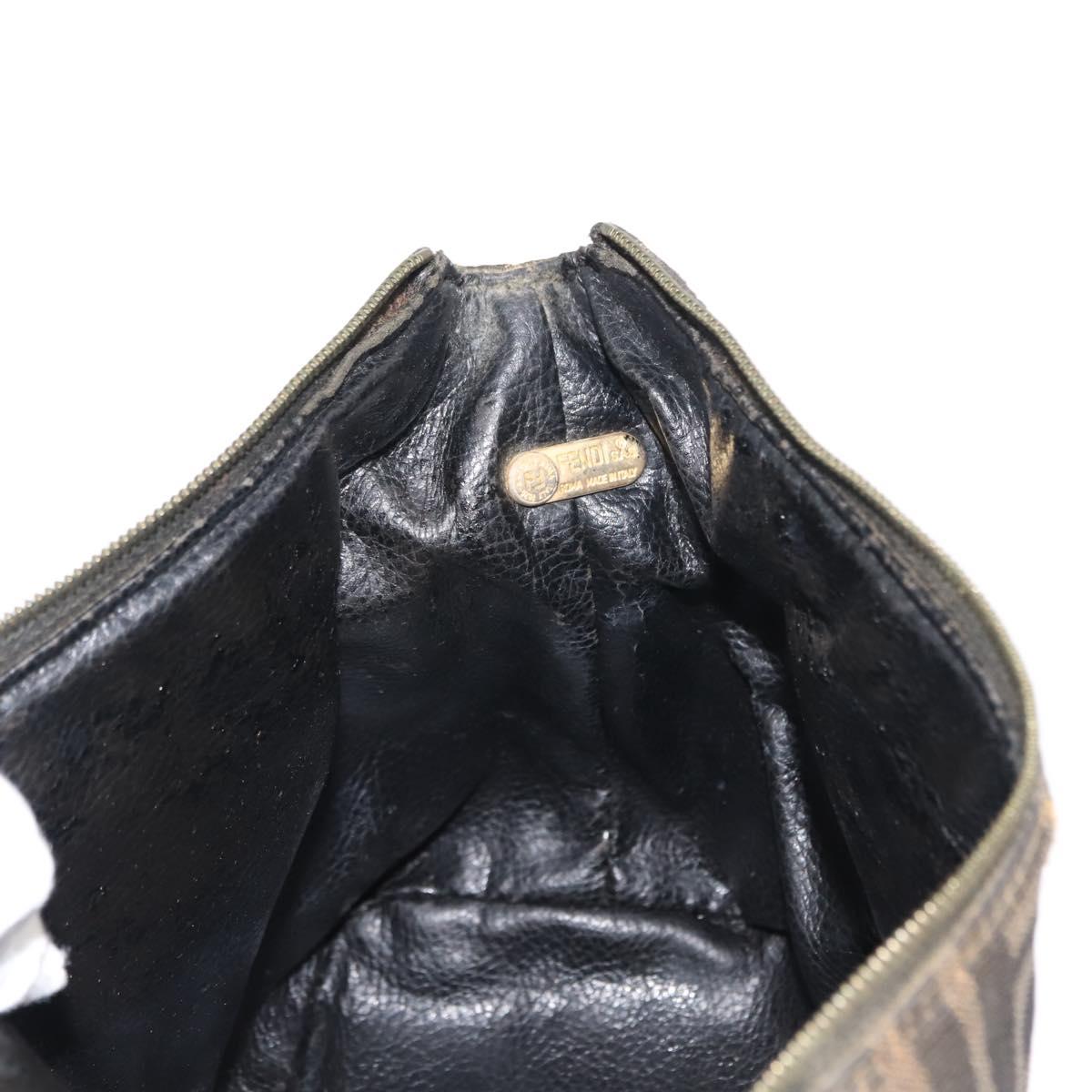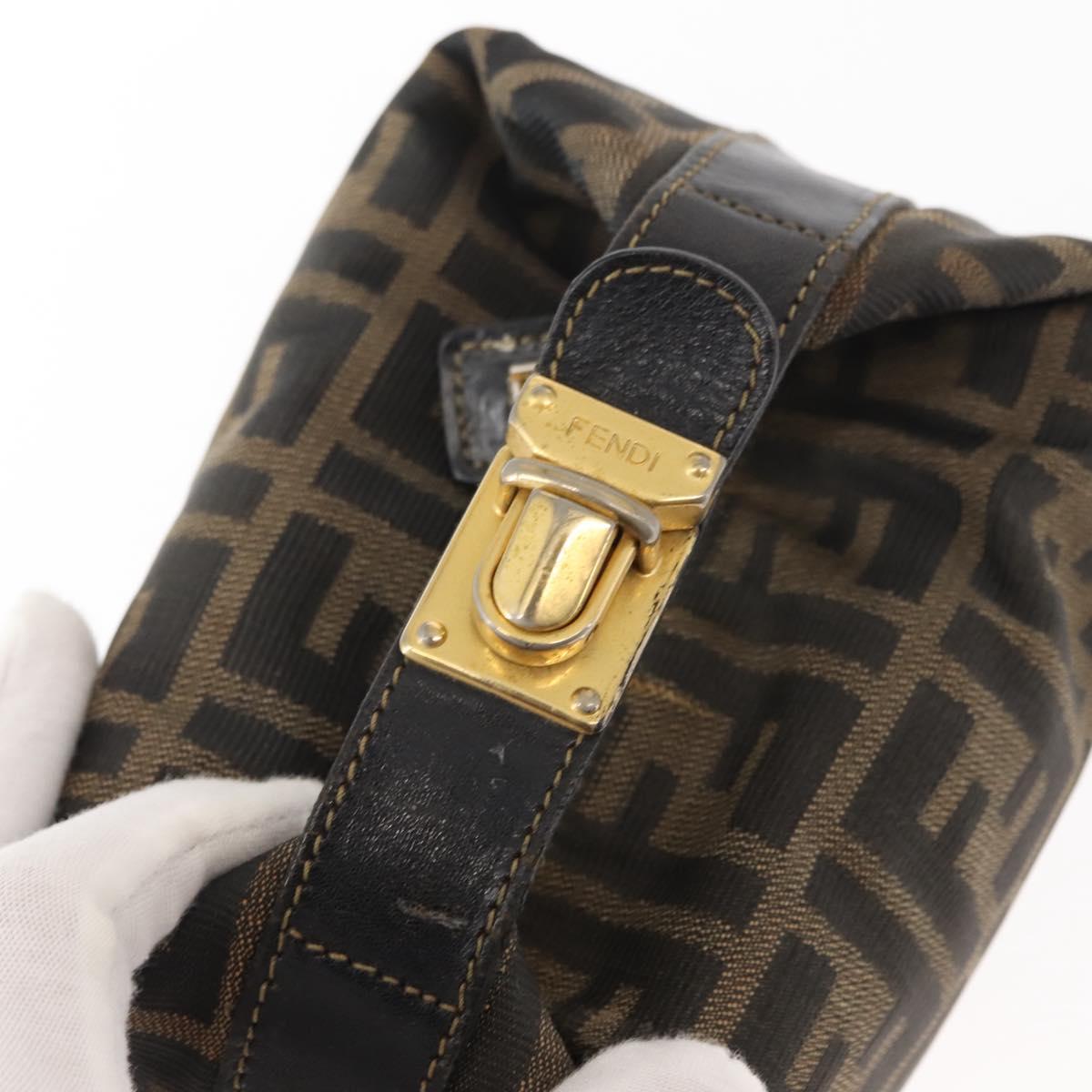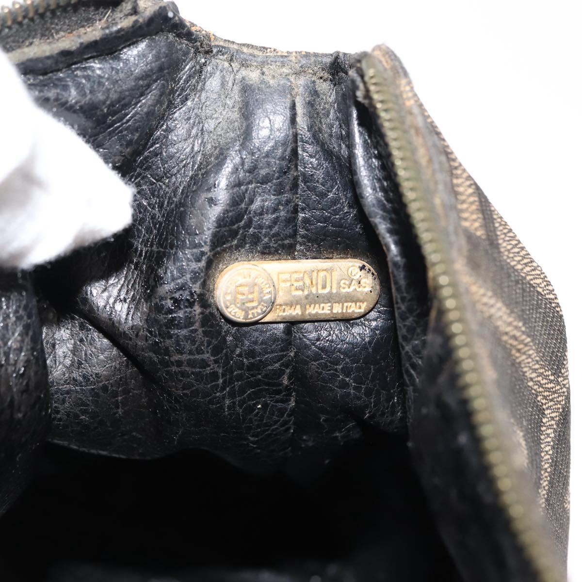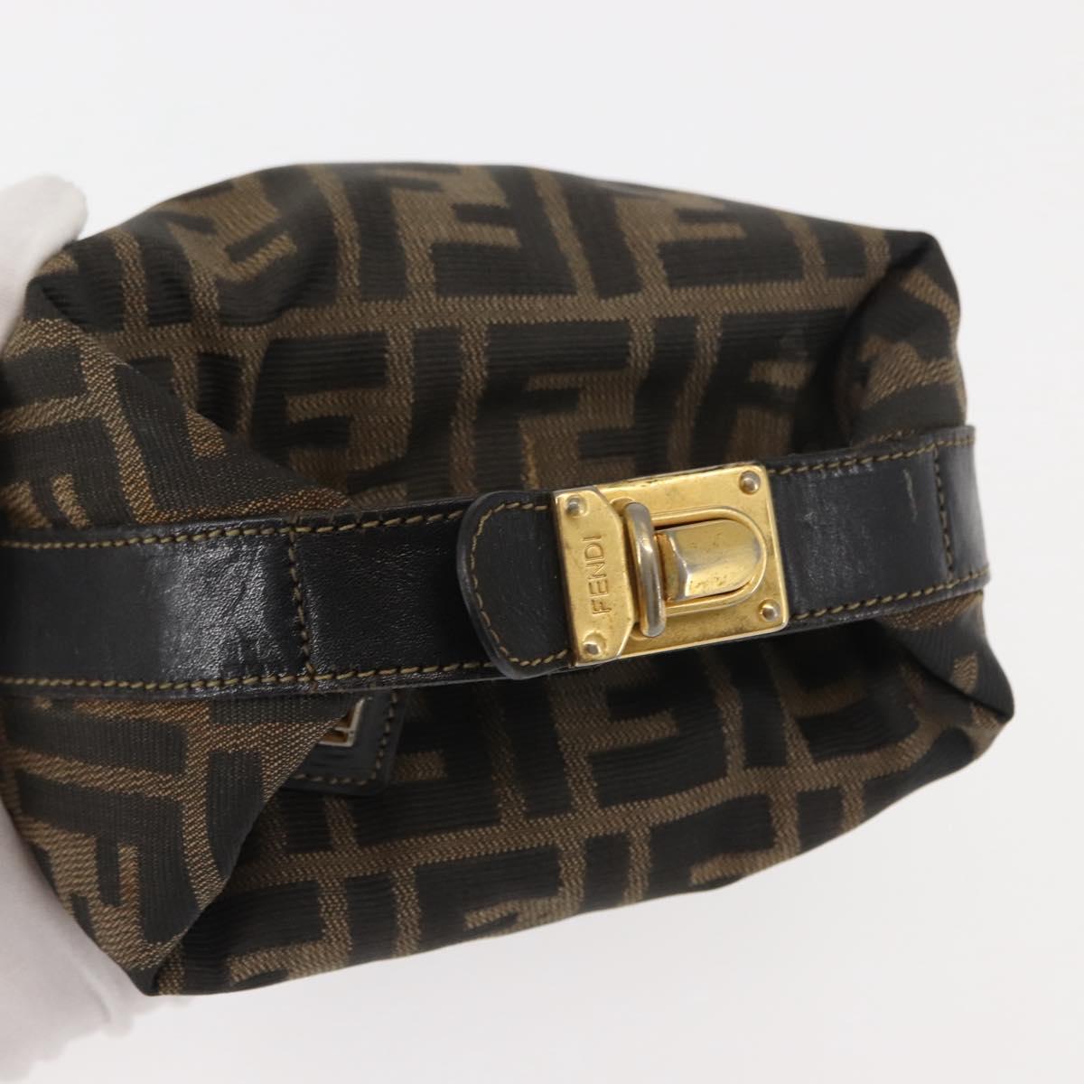 FENDI Zucca Canvas Vanity Pouch Black Brown Auth bs29916