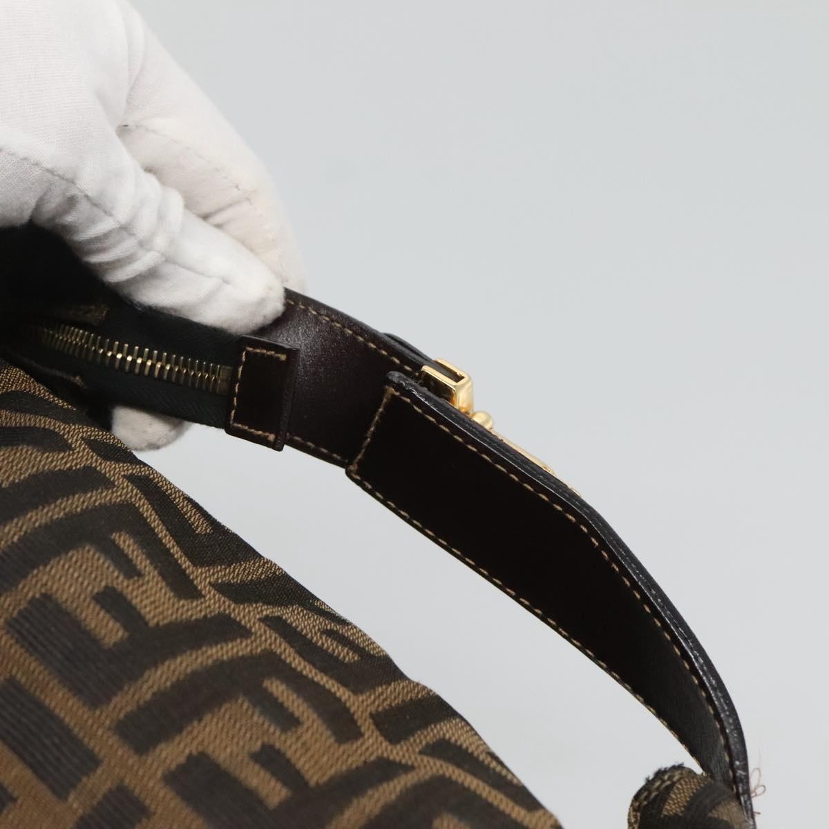FENDI Zucca Canvas Vanity Pouch Black Brown Gold Auth 126334