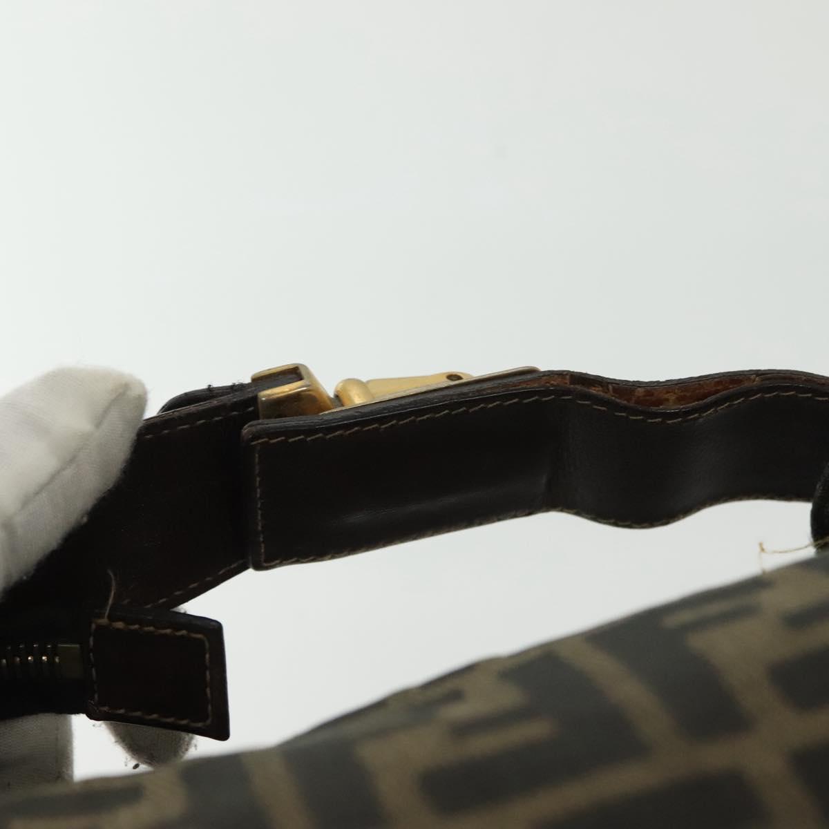 FENDI Zucca Canvas Vanity Pouch Black Brown gold Auth gh745