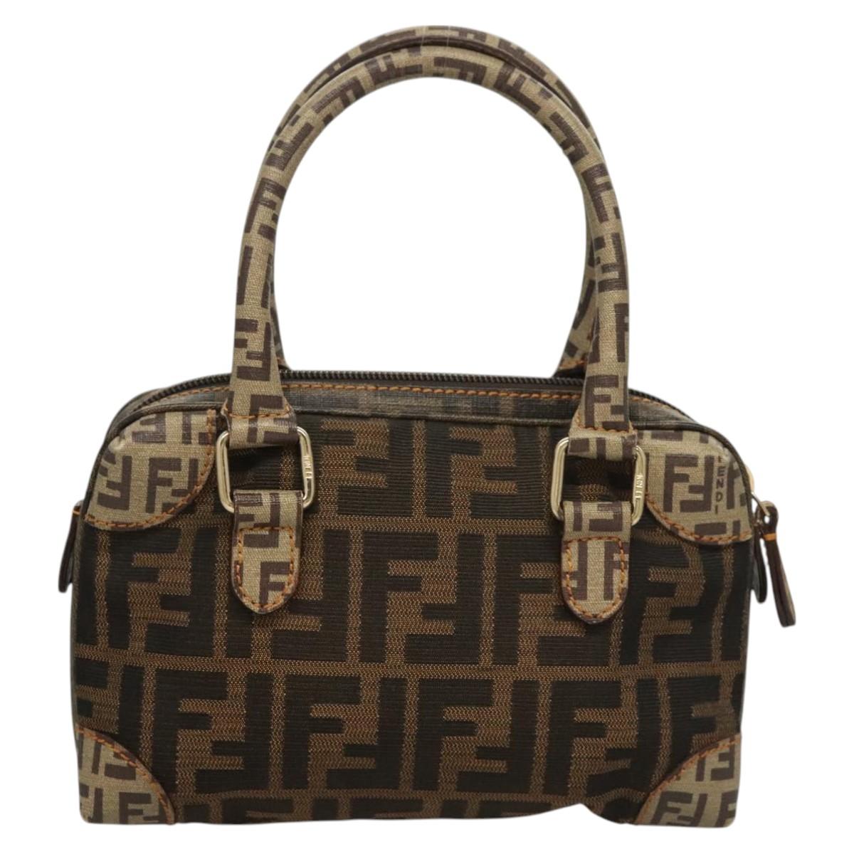 FENDI Zucca Canvas Zucchino Canvas Hand Bag 2way Brown Black beige Auth 123727