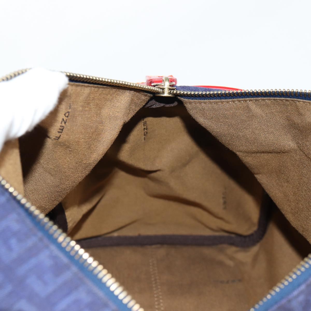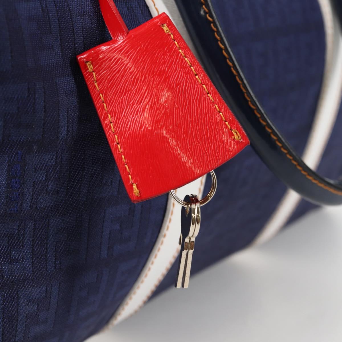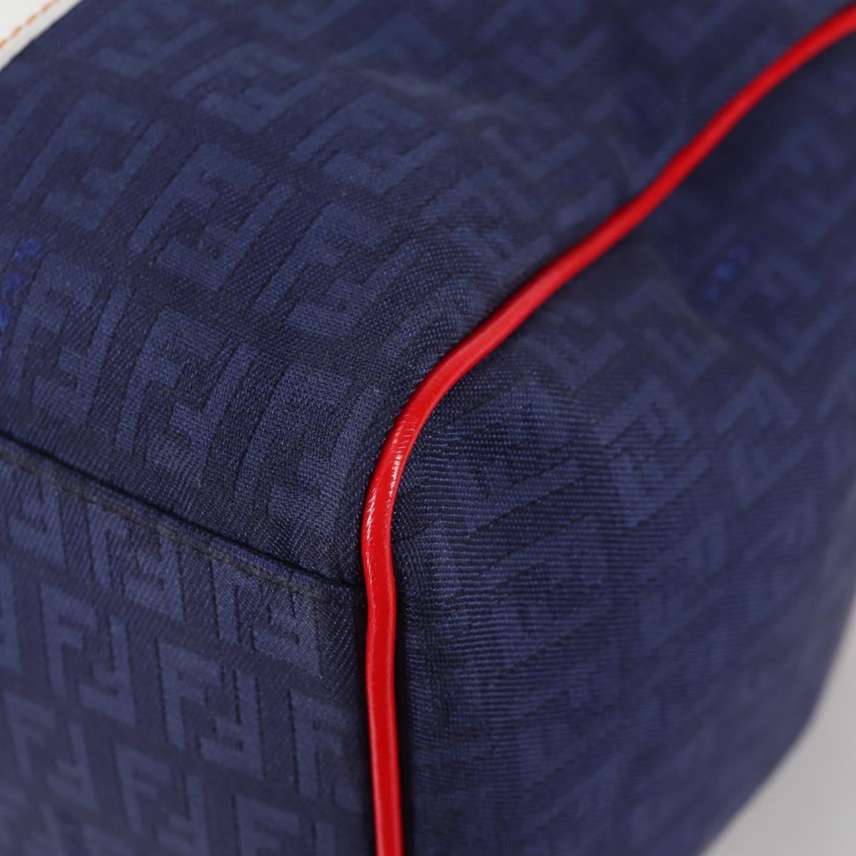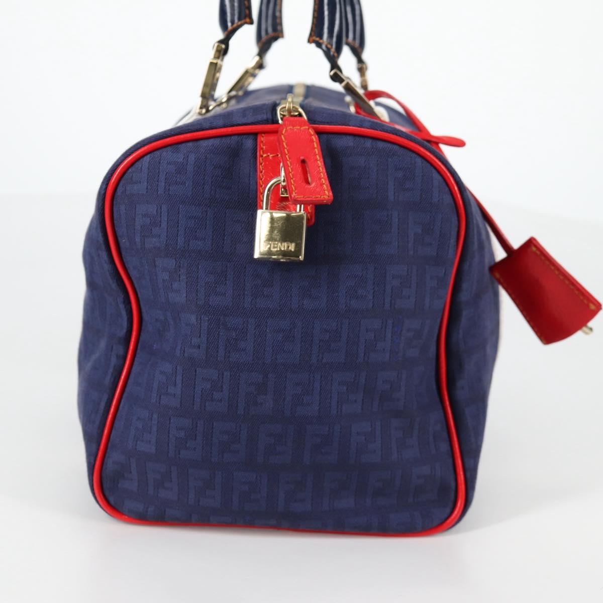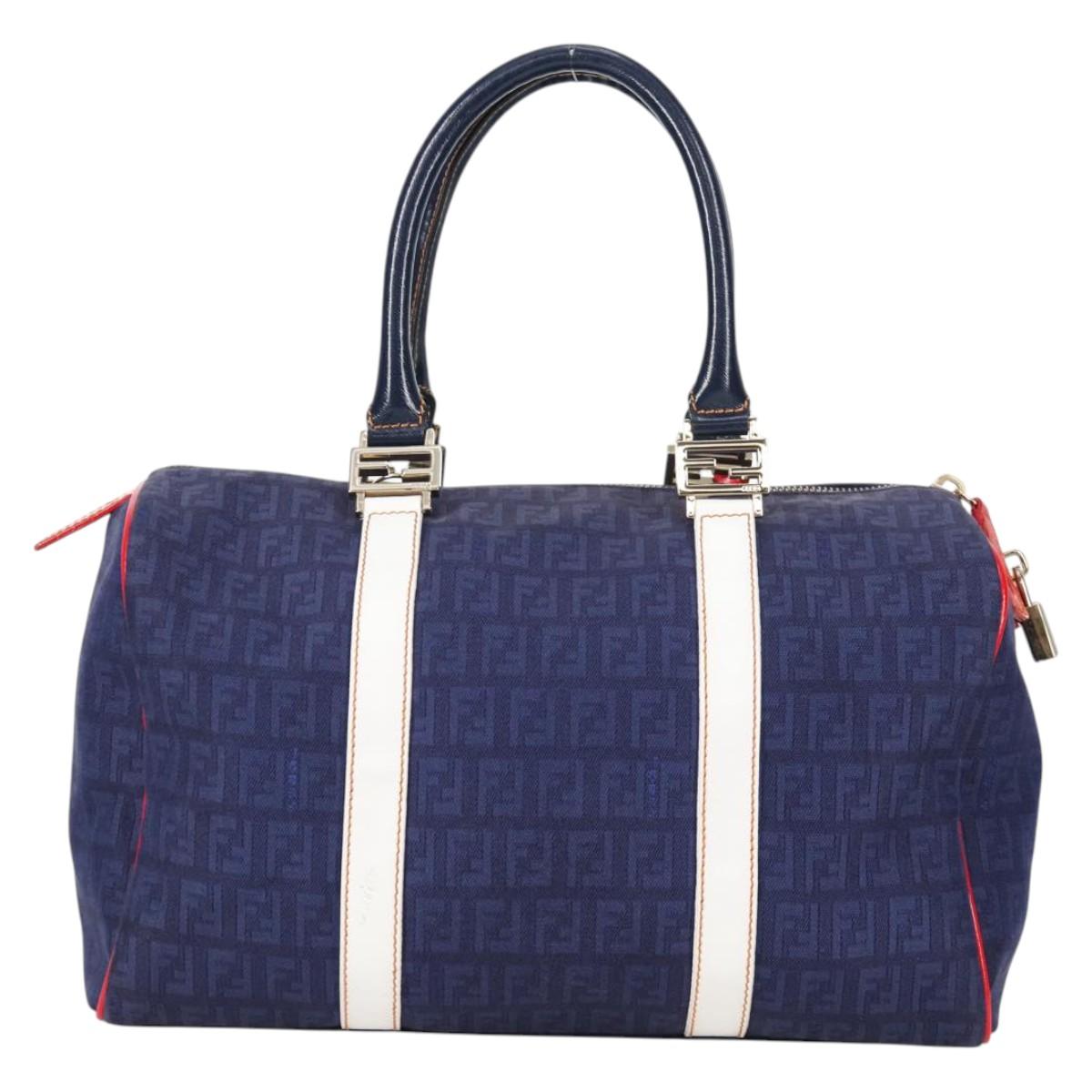 FENDI Zucchino Canvas Boston Bag Navy Gold Auth 141159V