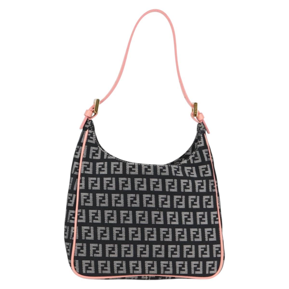 FENDI Zucchino Canvas Hand Bag Black Gold Auth yk19129A