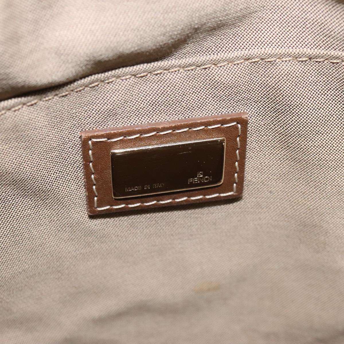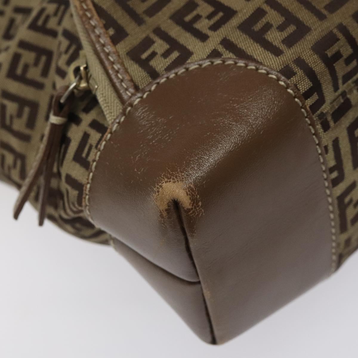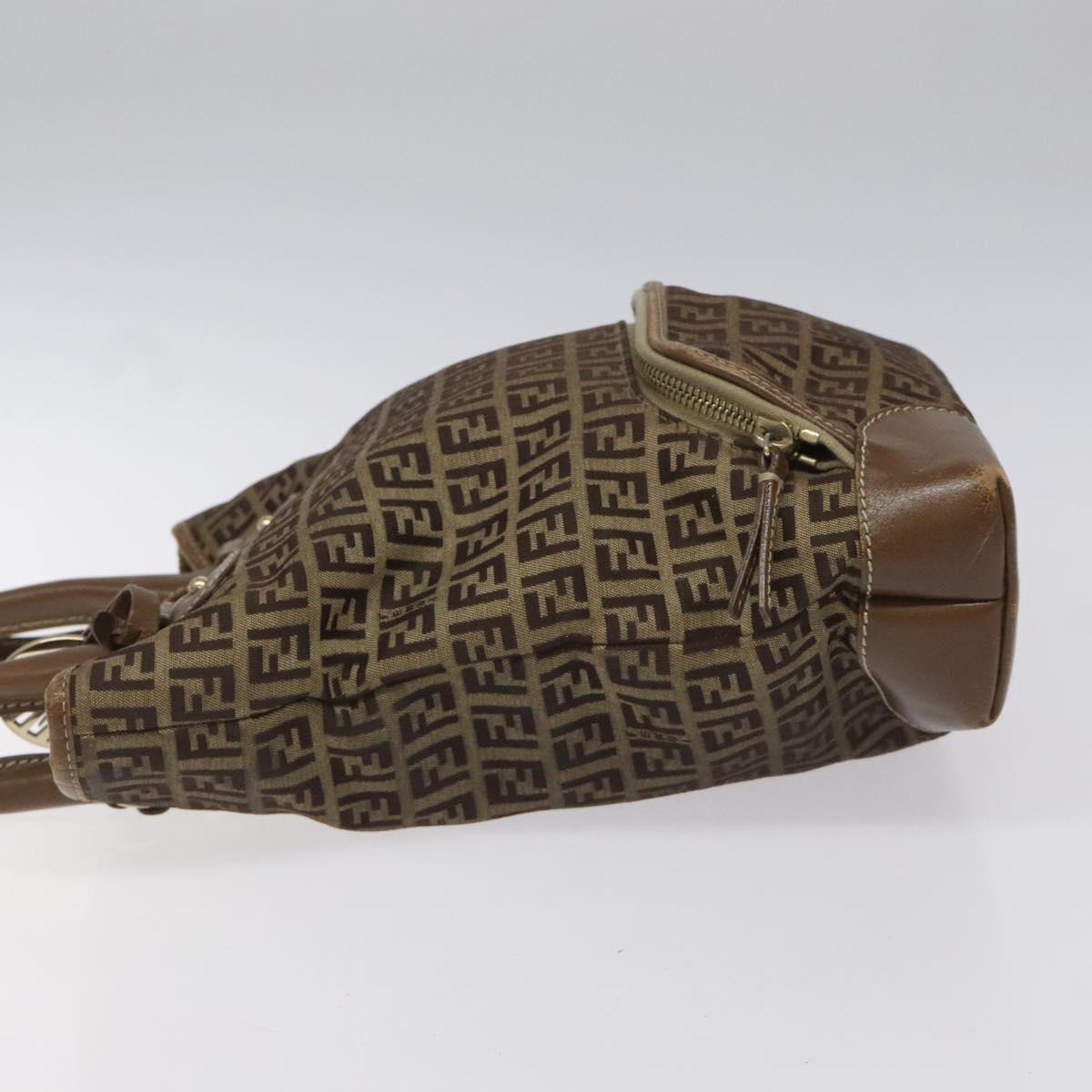 FENDI Zucchino Canvas Hand Bag Brown Beige Silver Auth 115510