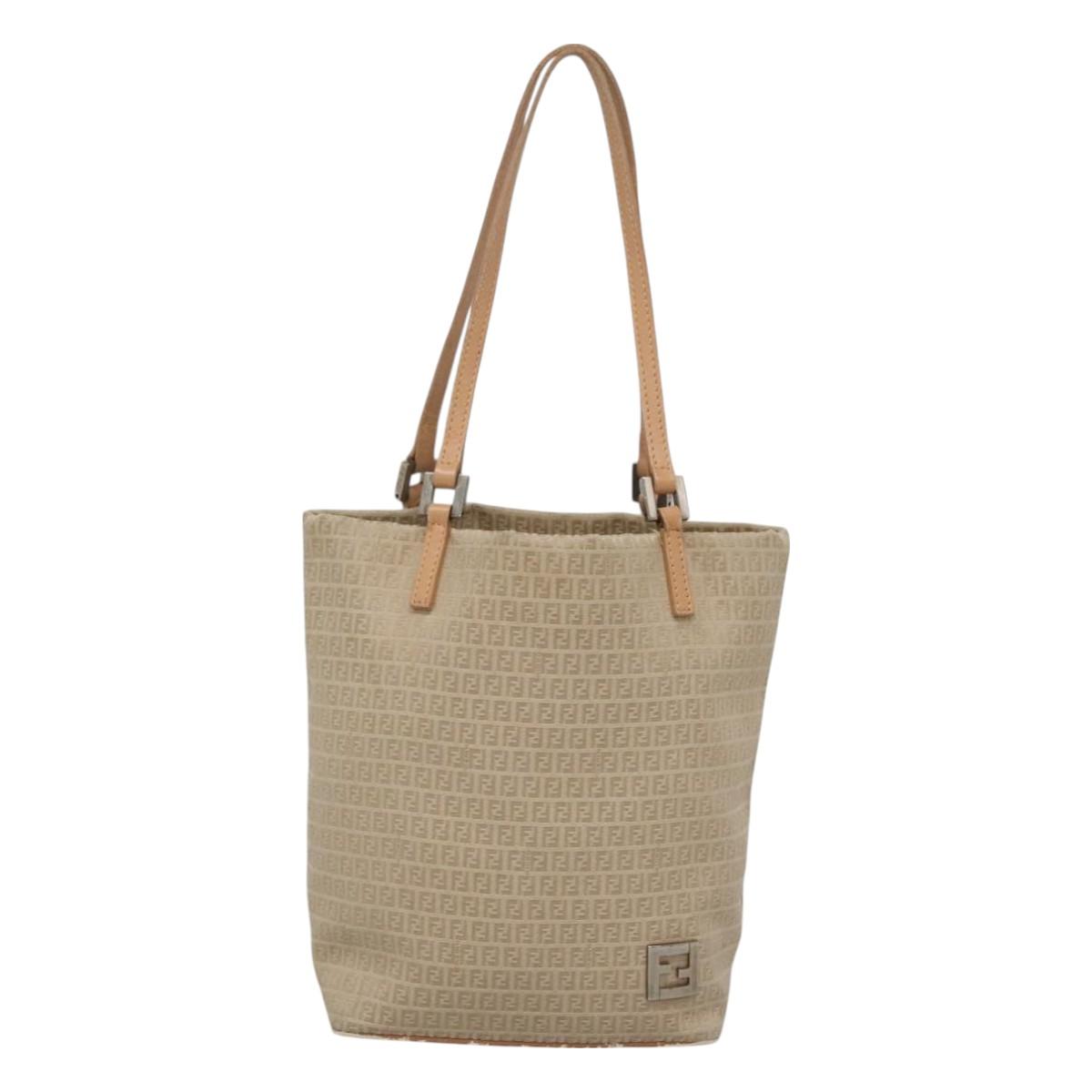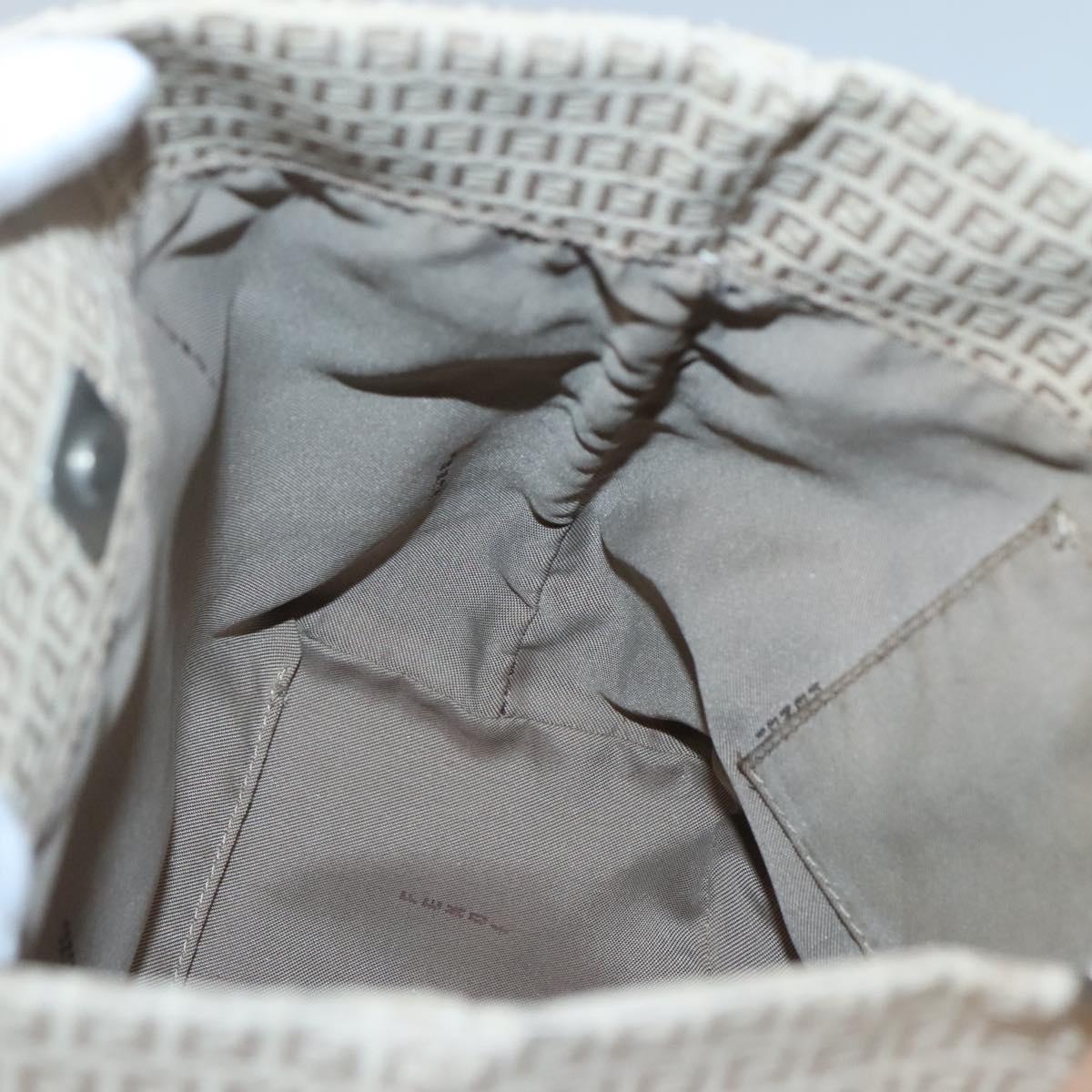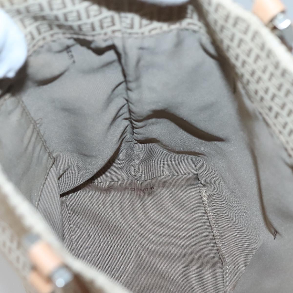 FENDI Zucchino Canvas Hand Bag Nylon Beige Silver Auth bs26890