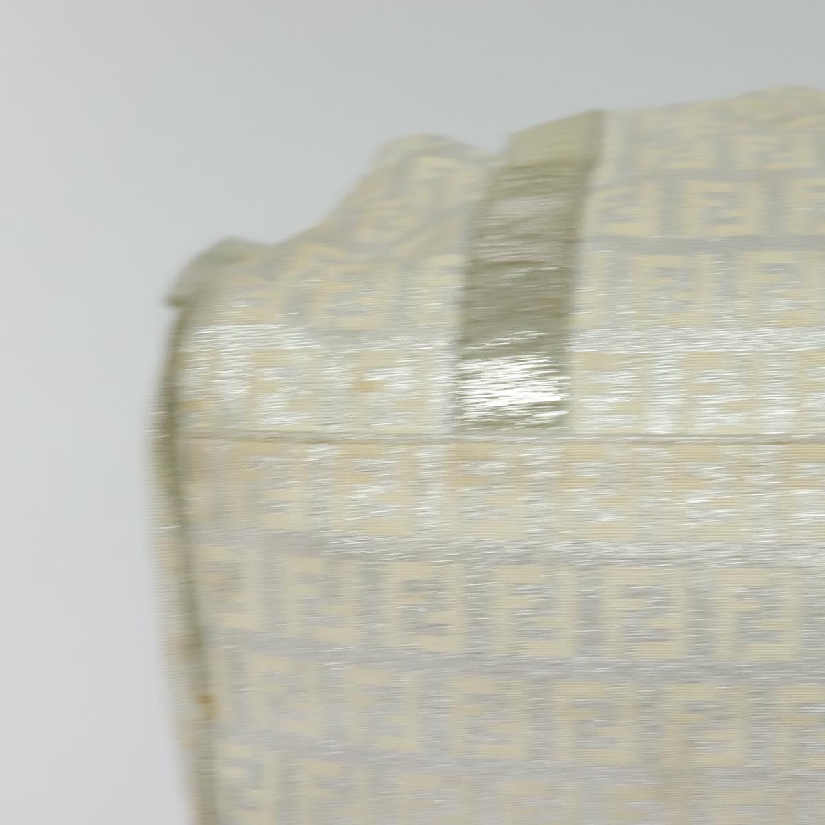 FENDI Zucchino Canvas Hand Bag Silver Auth 119320