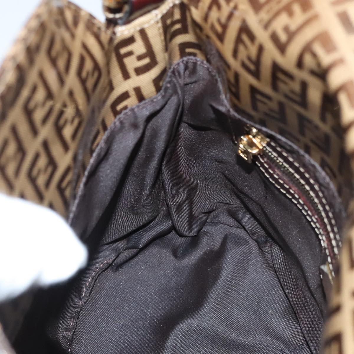 FENDI Zucchino Canvas Mamma Baguette Hand Bag Enamel Beige Gold Auth KD316