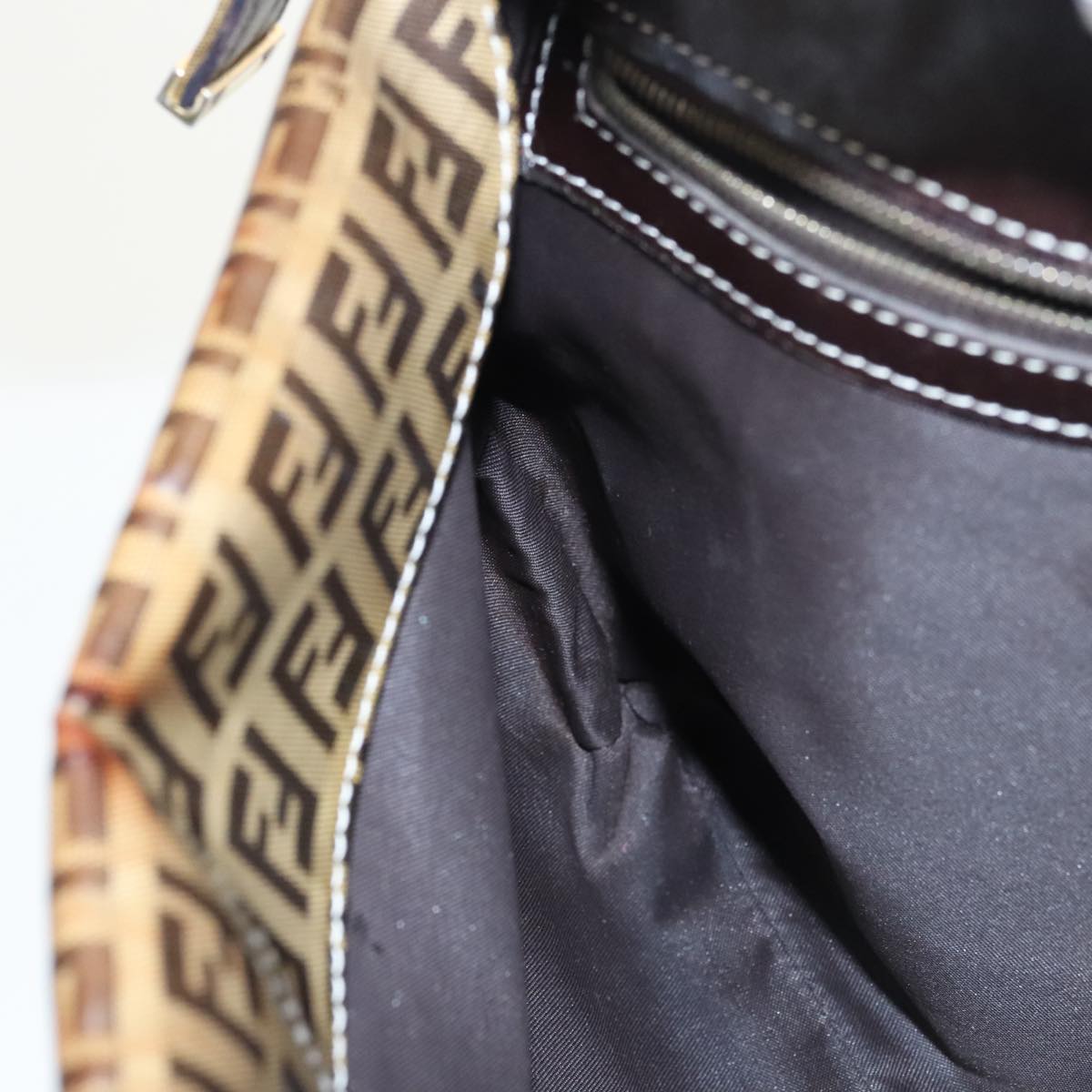 FENDI Zucchino Canvas Mamma Baguette Shoulder Bag Beige Gold Auth 98793