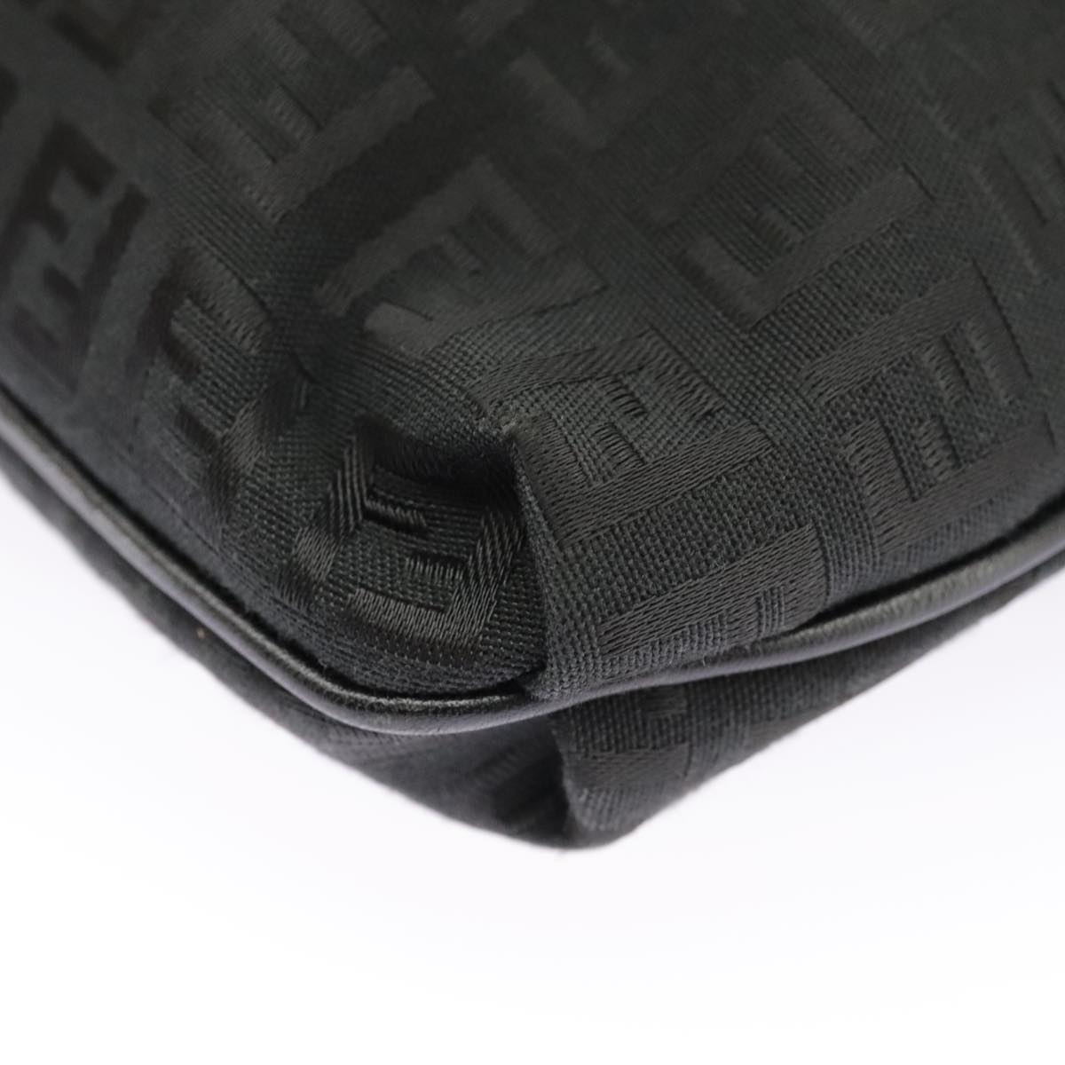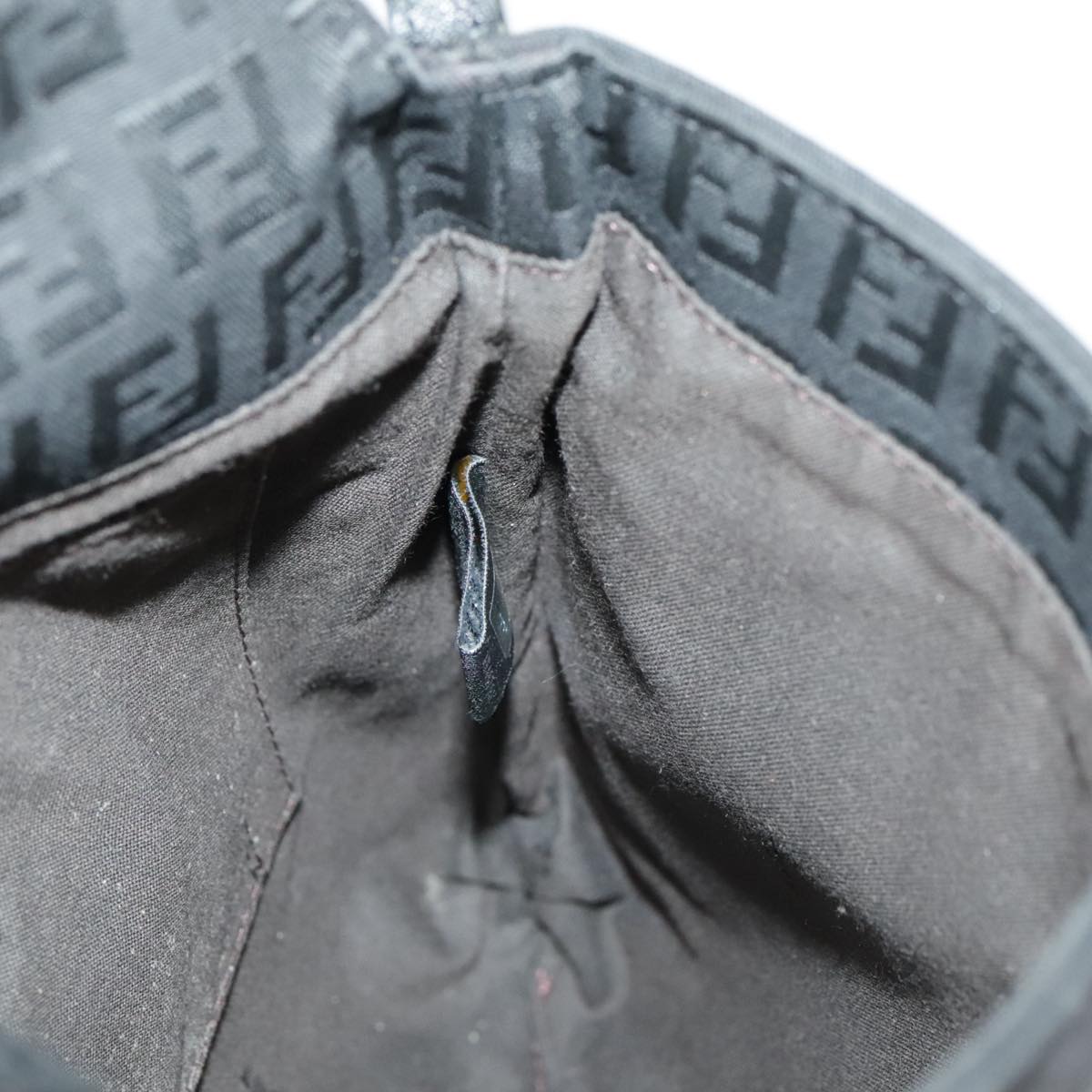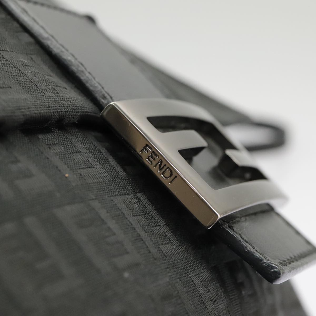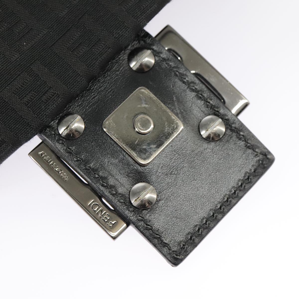 FENDI Zucchino Canvas Mamma Baguette Shoulder Bag Black Auth 101222V