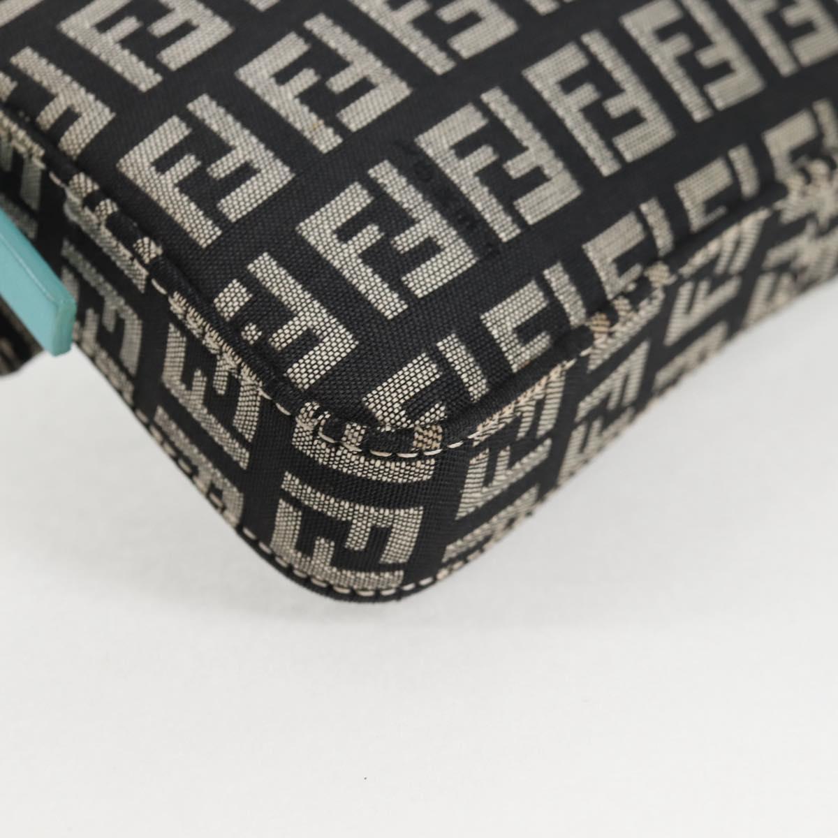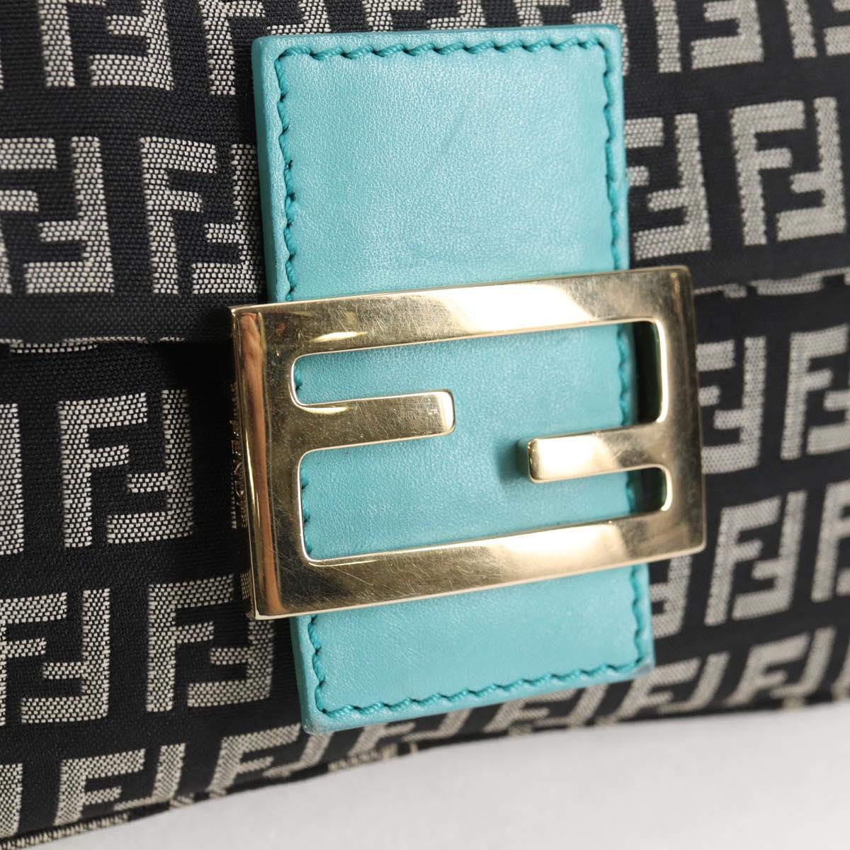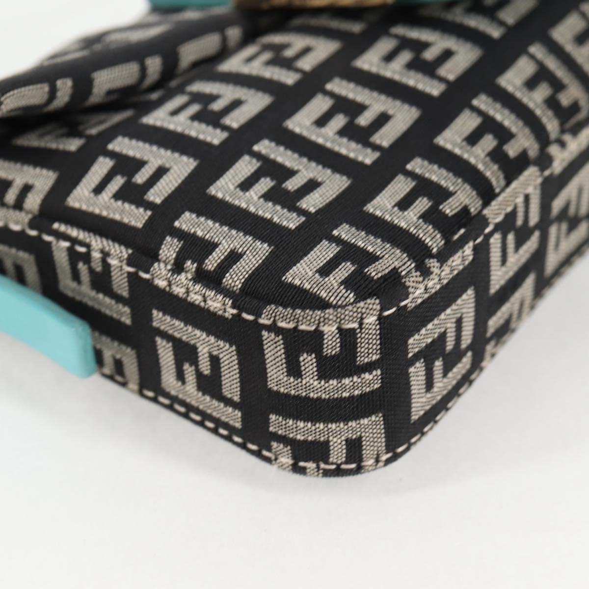 FENDI Zucchino Canvas Mamma Baguette Shoulder Bag Black Gold Auth 136114V