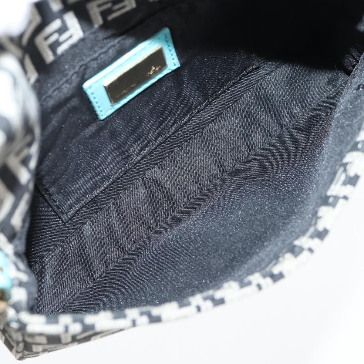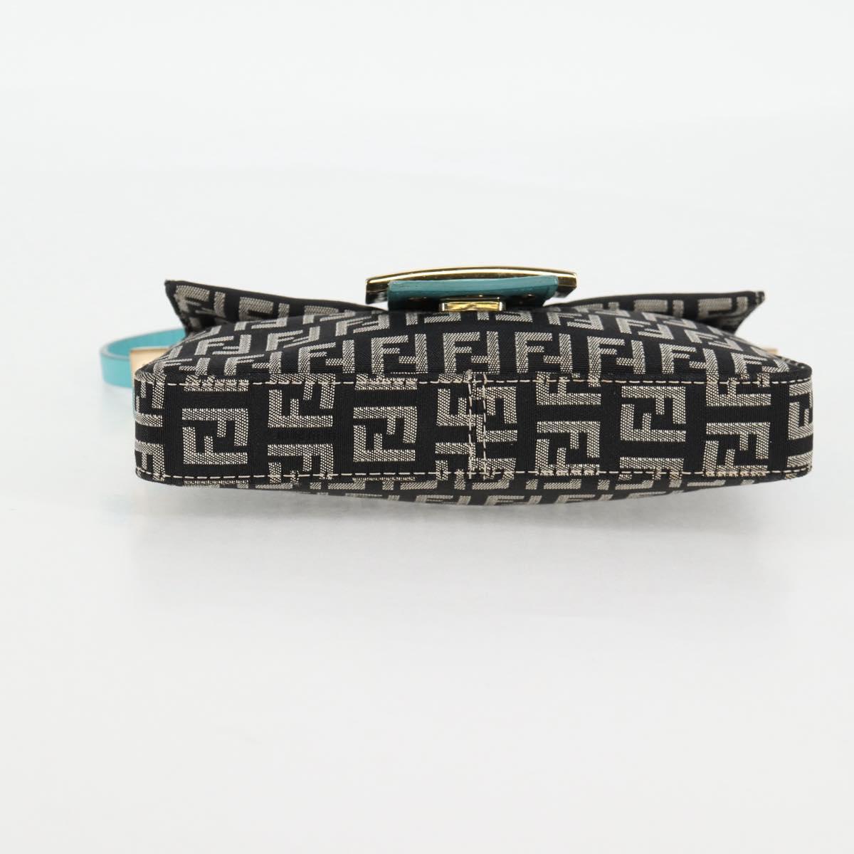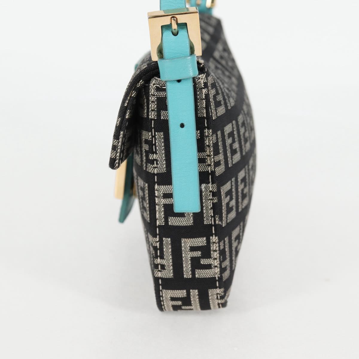 FENDI Zucchino Canvas Mamma Baguette Shoulder Bag Black Gold Auth 136114V