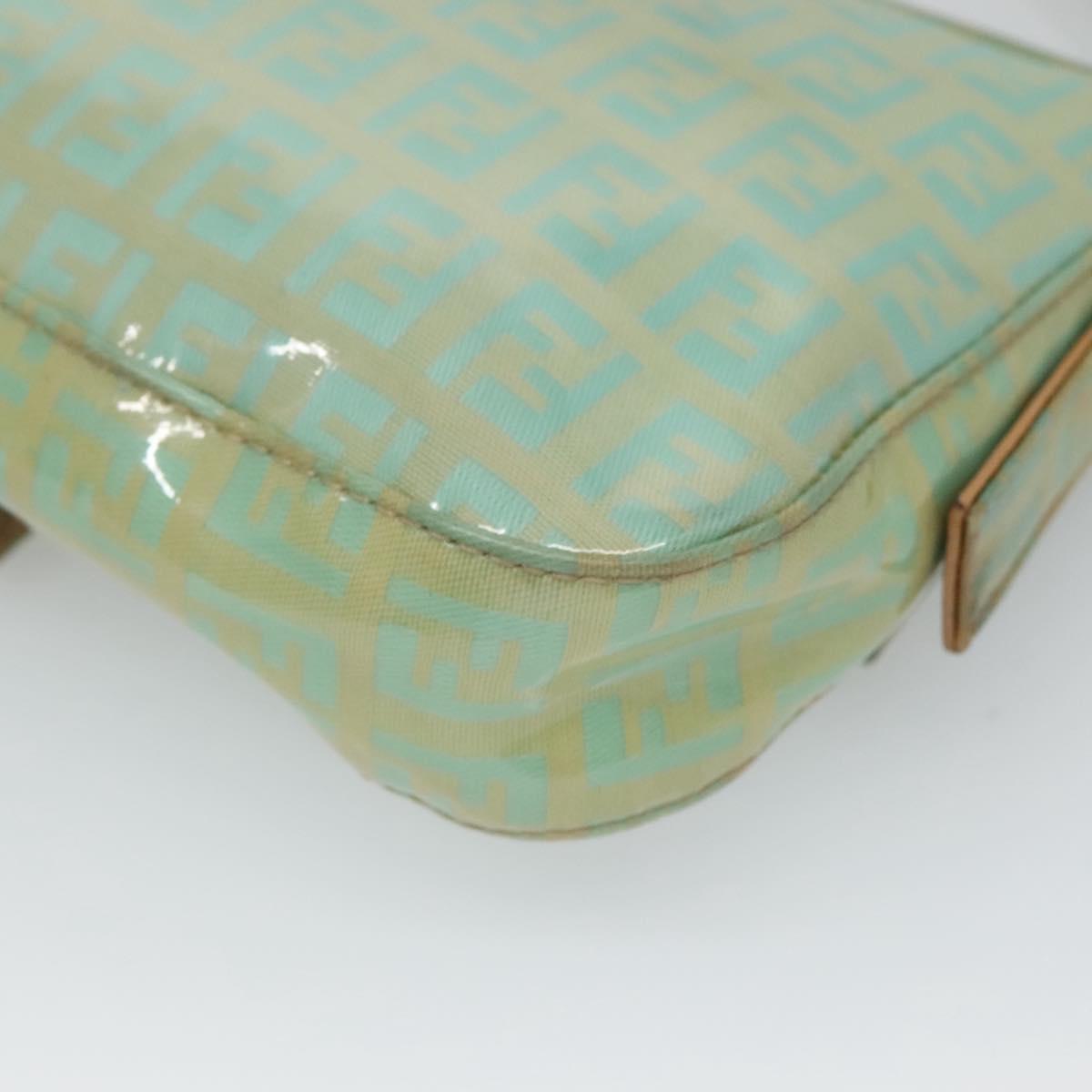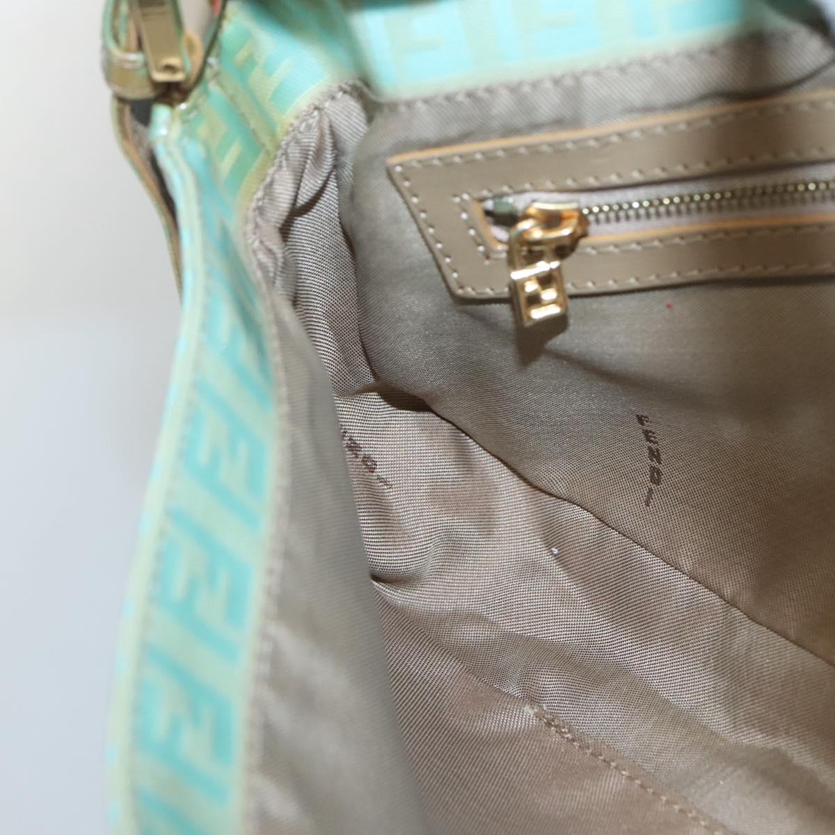 FENDI Zucchino Canvas Mamma Baguette Shoulder Bag Enamel Green Gold Auth 126178