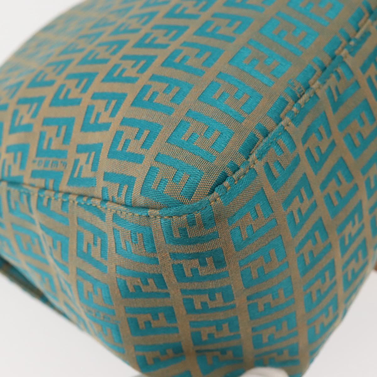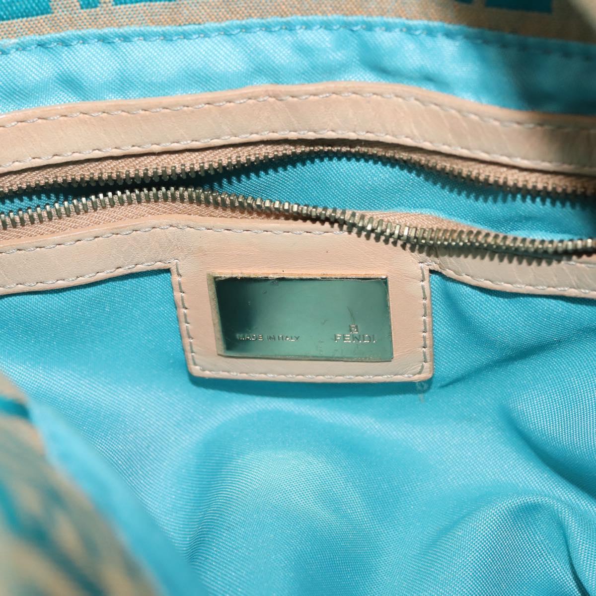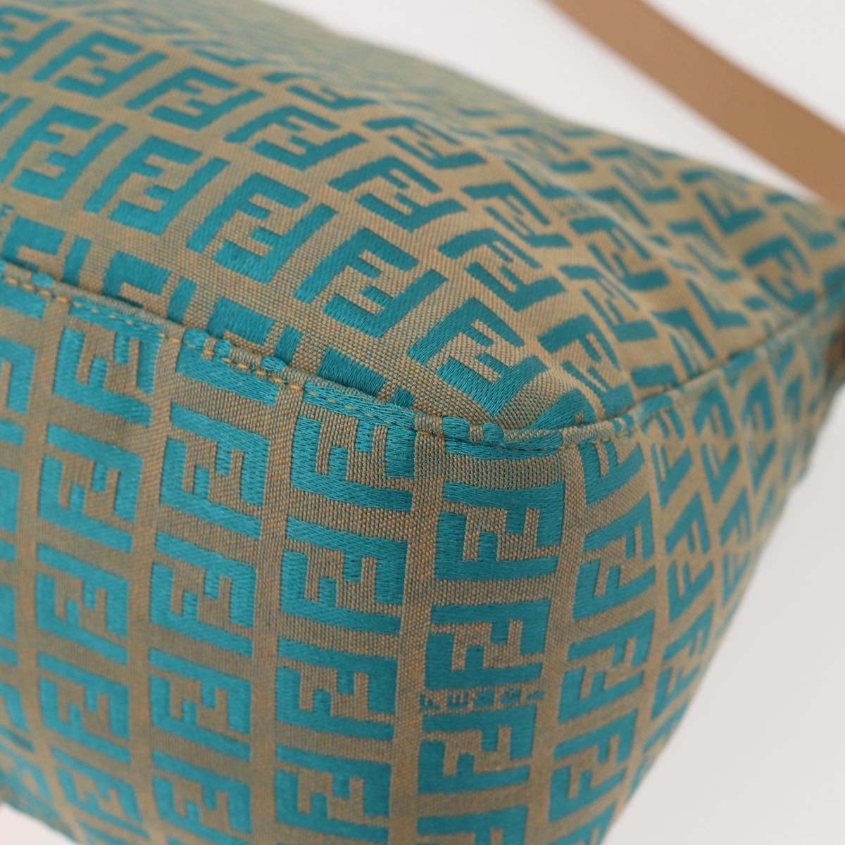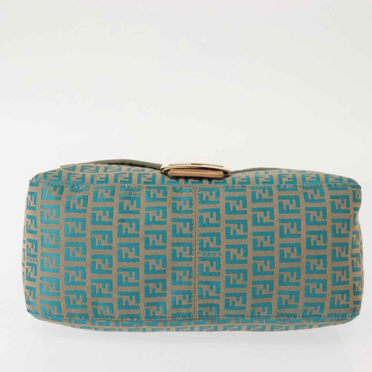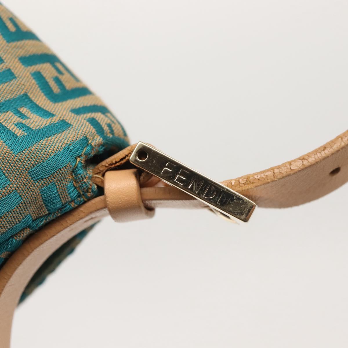 FENDI Zucchino Canvas Mamma Baguette Shoulder Bag Gold Green Auth 138349