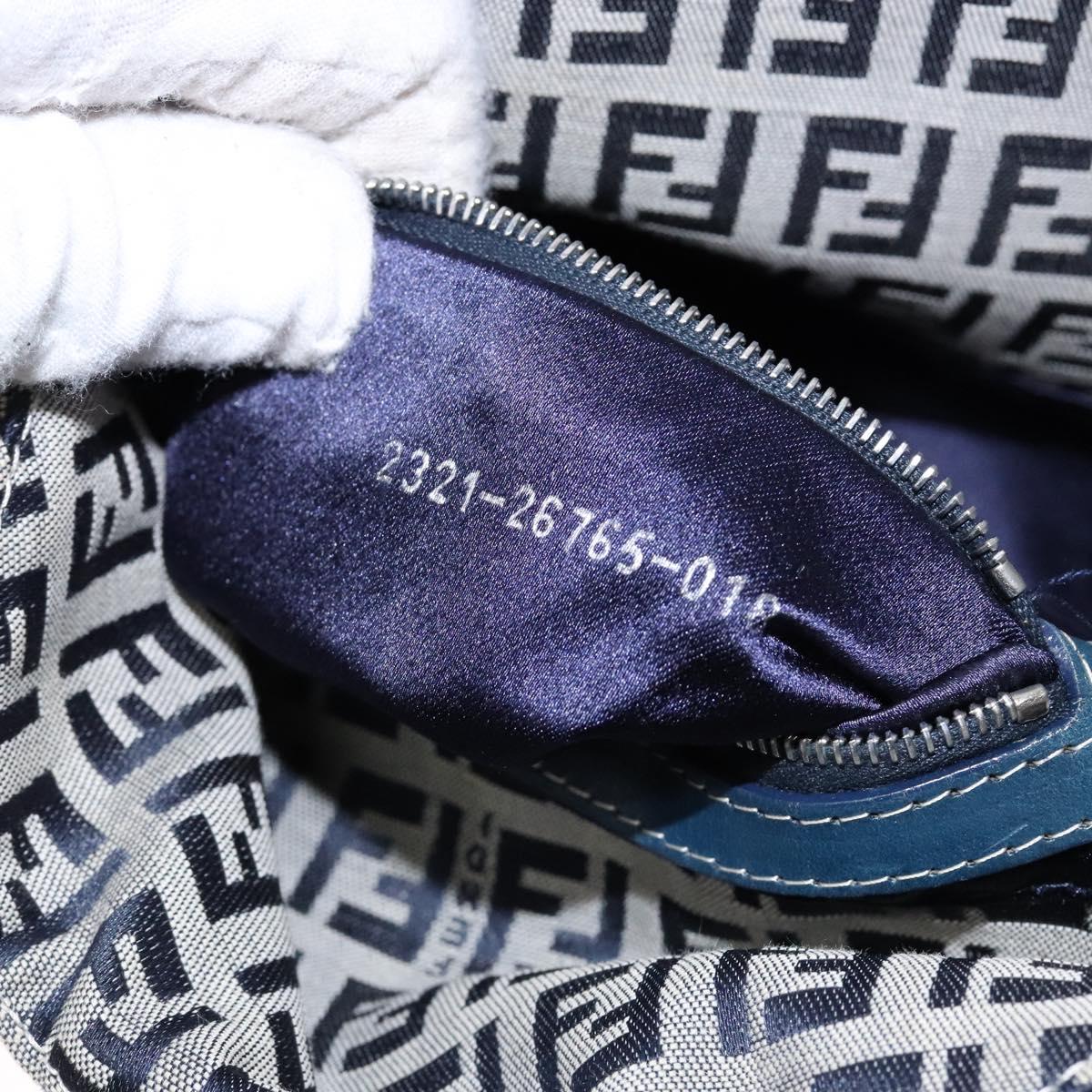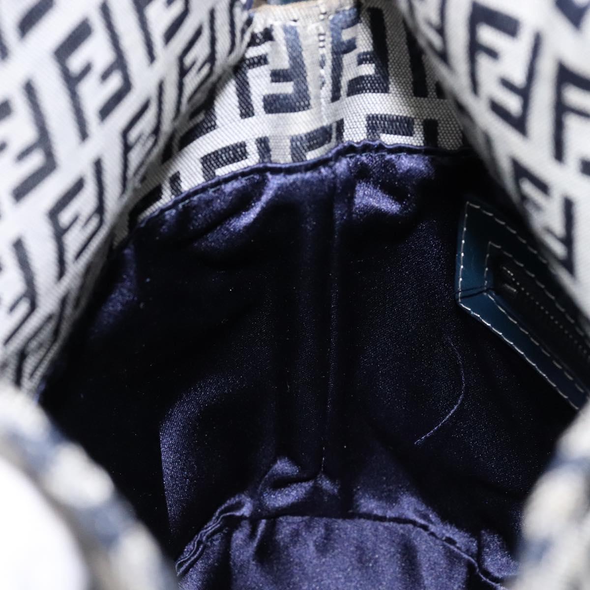 FENDI Zucchino Canvas Mamma Baguette Shoulder Bag Navy Gold Auth 139307