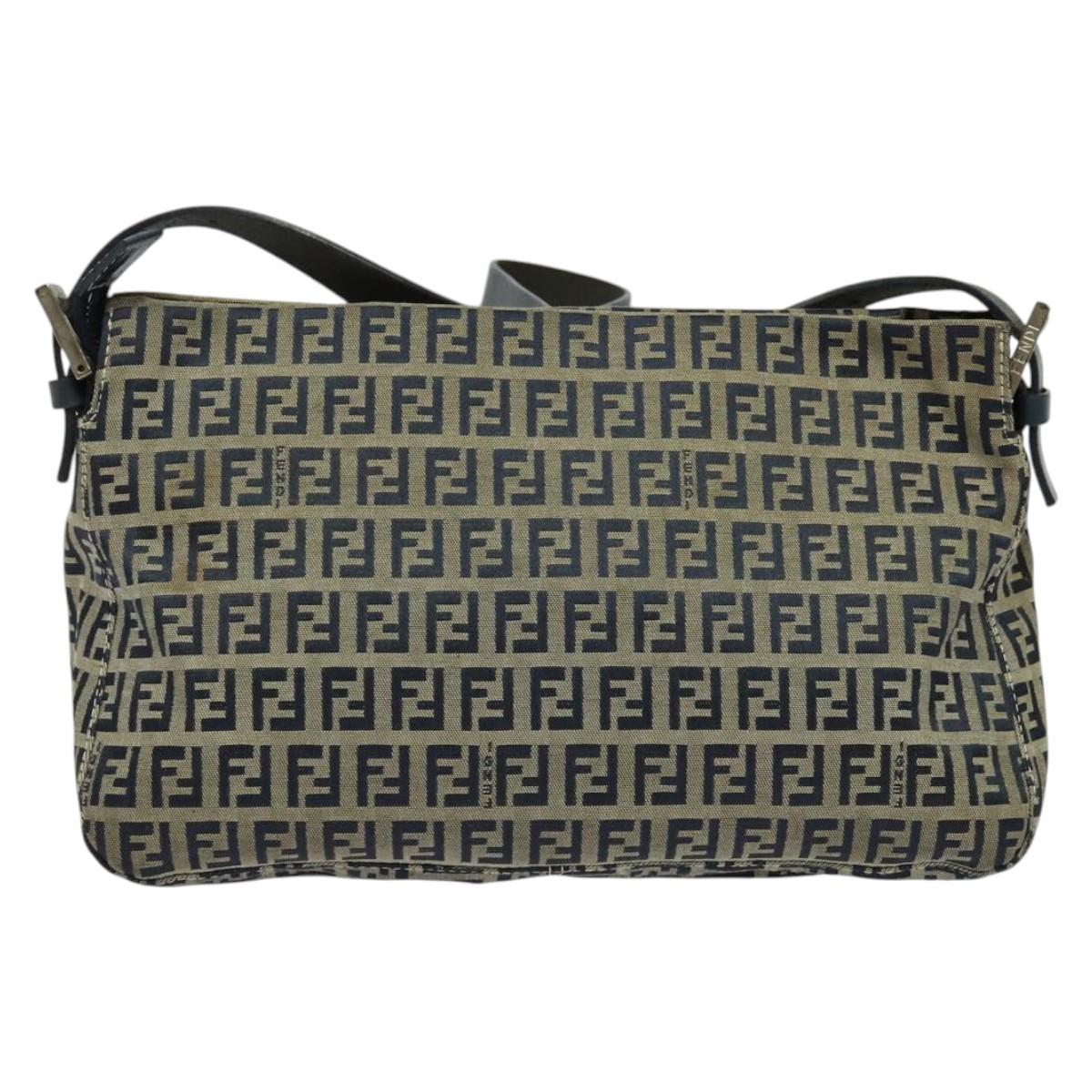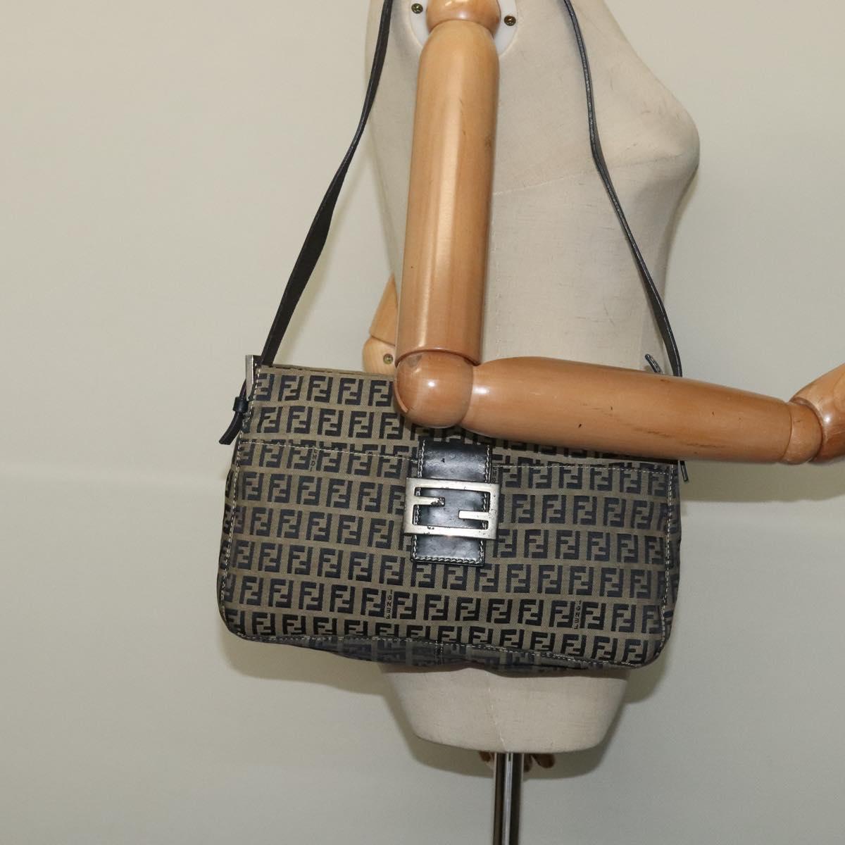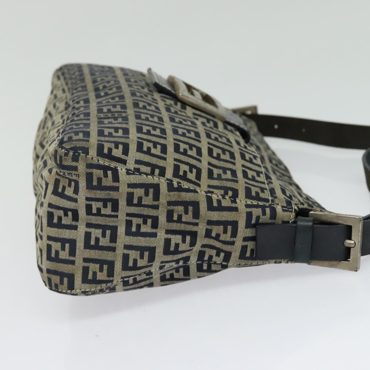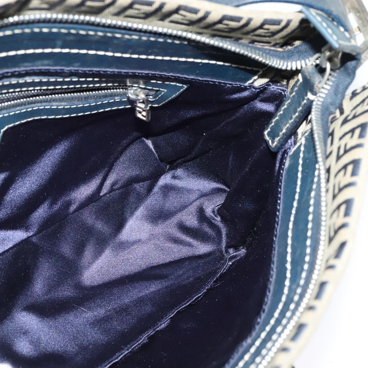 FENDI Zucchino Canvas Mamma Baguette Shoulder Bag Navy Silver Auth 138467