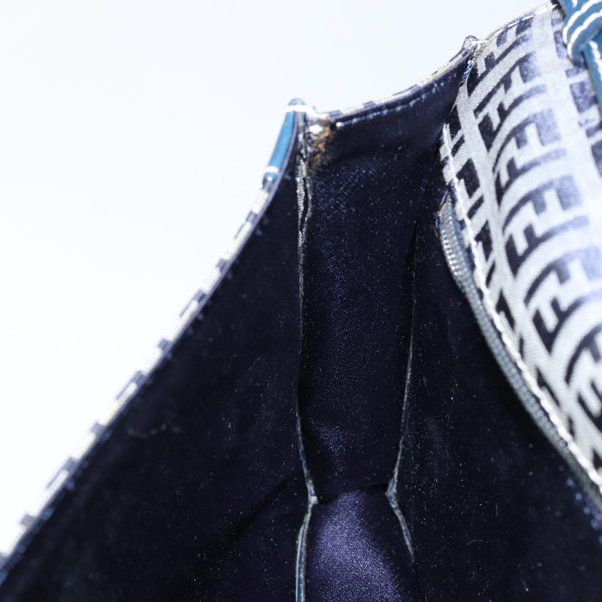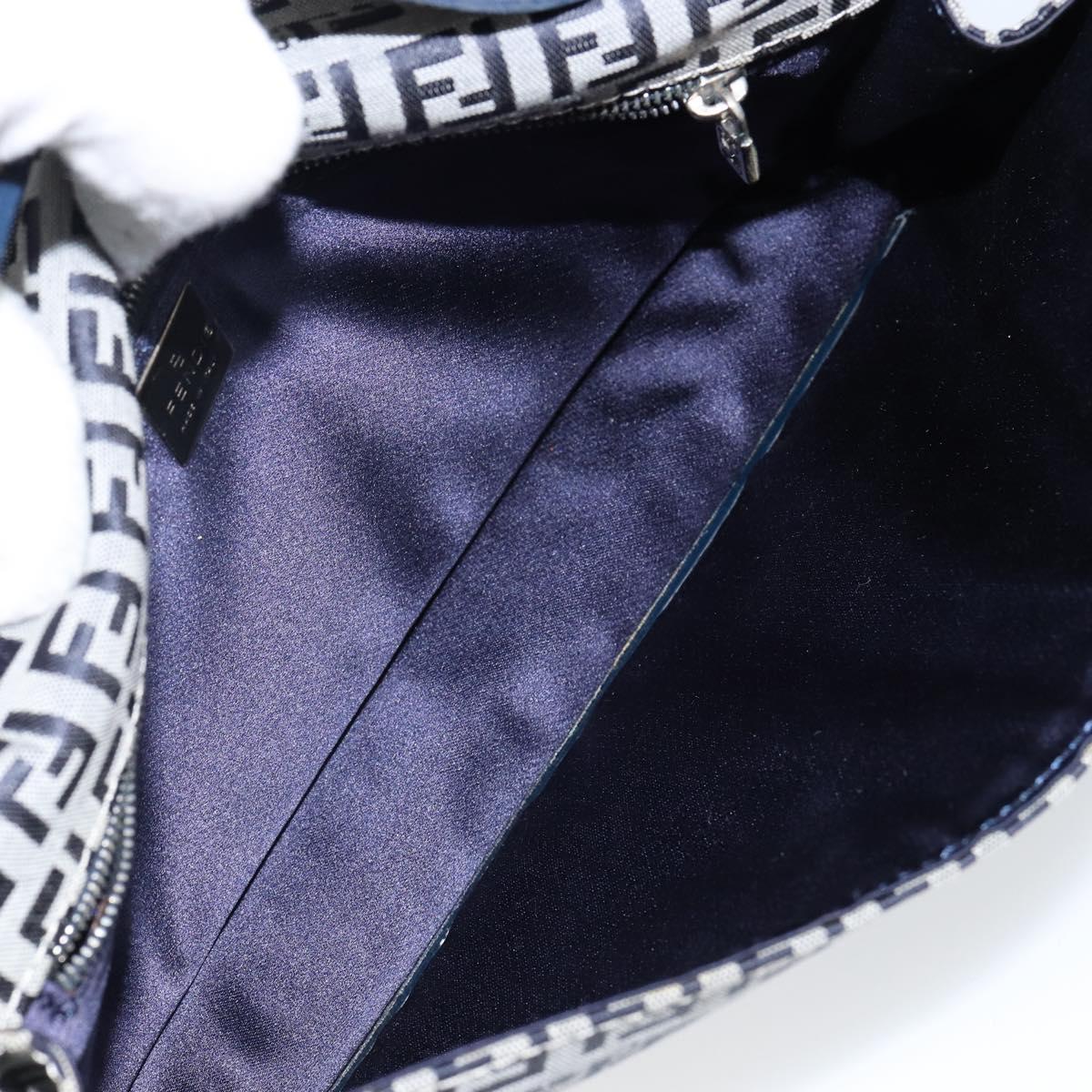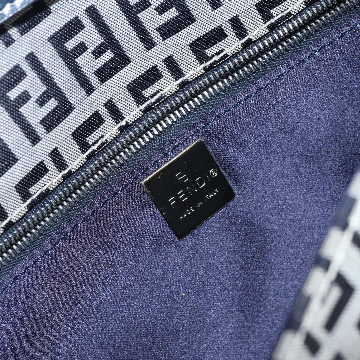 FENDI Zucchino Canvas Mamma Baguette Shoulder Bag Navy Silver Auth 143158V