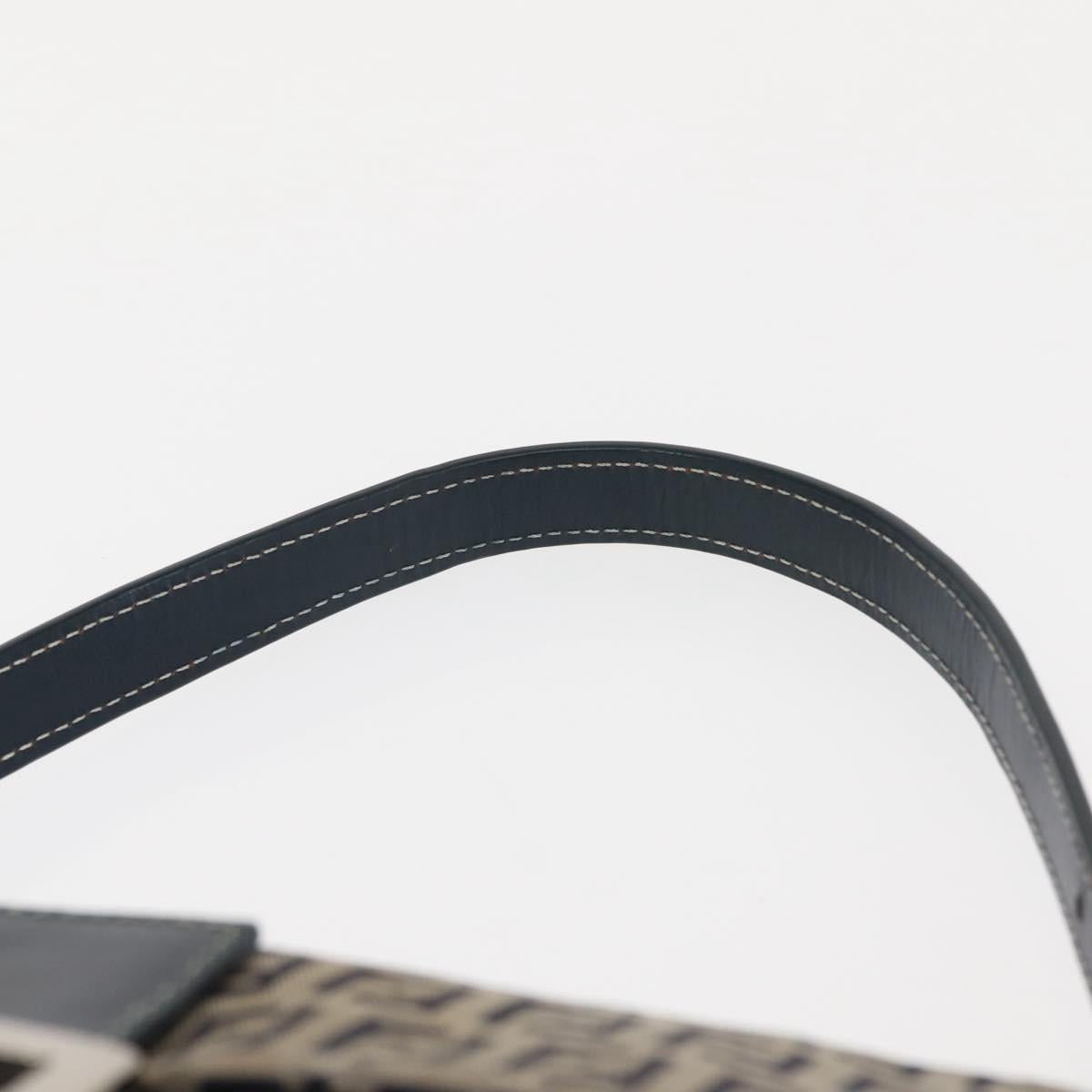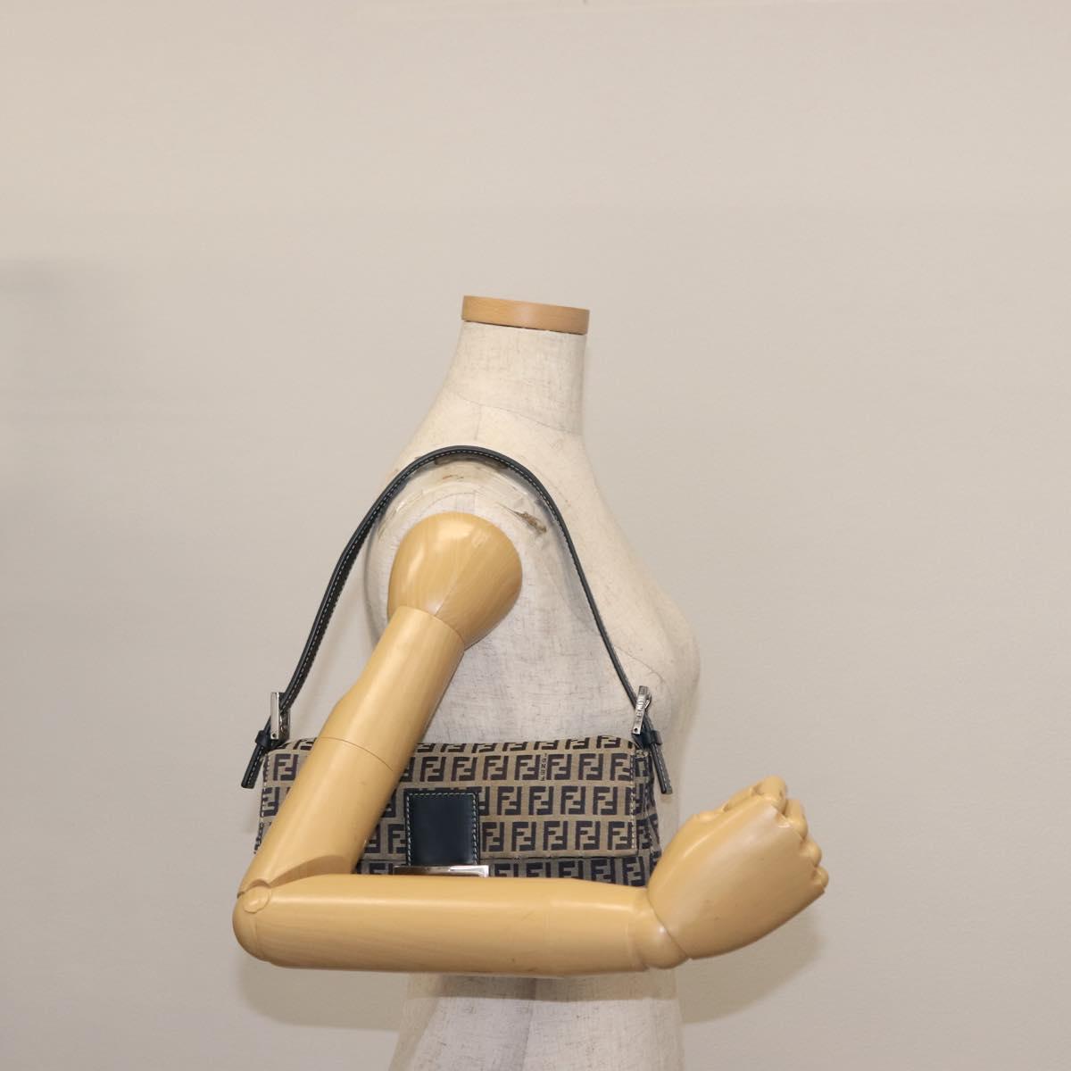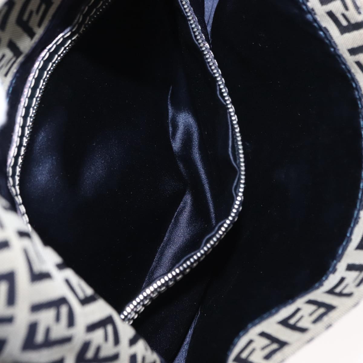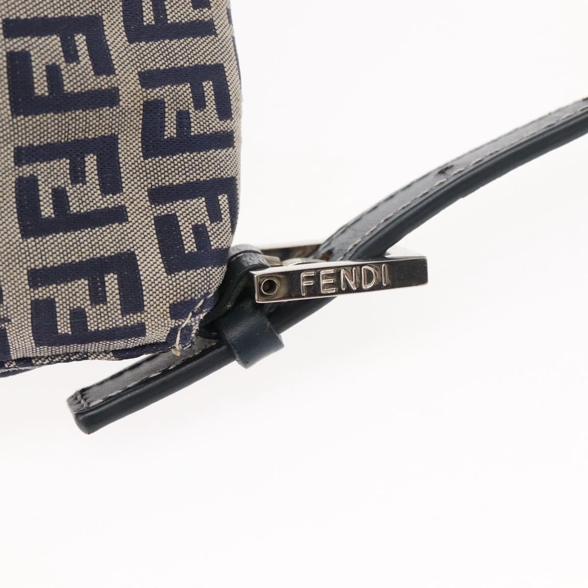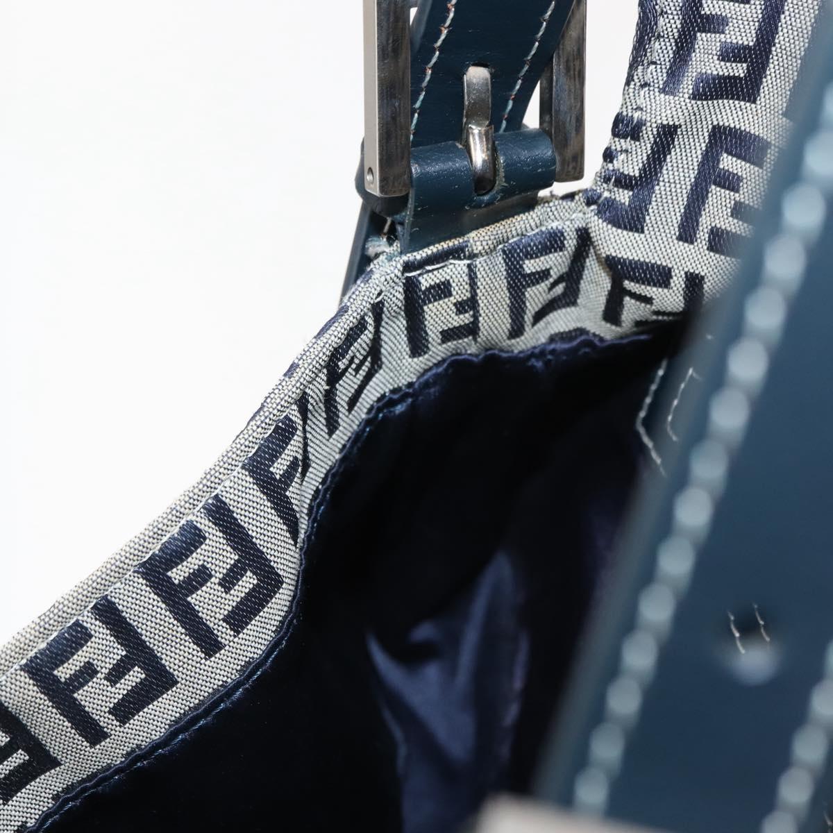 FENDI Zucchino Canvas Mamma Baguette Shoulder Bag Navy Silver Auth 145490