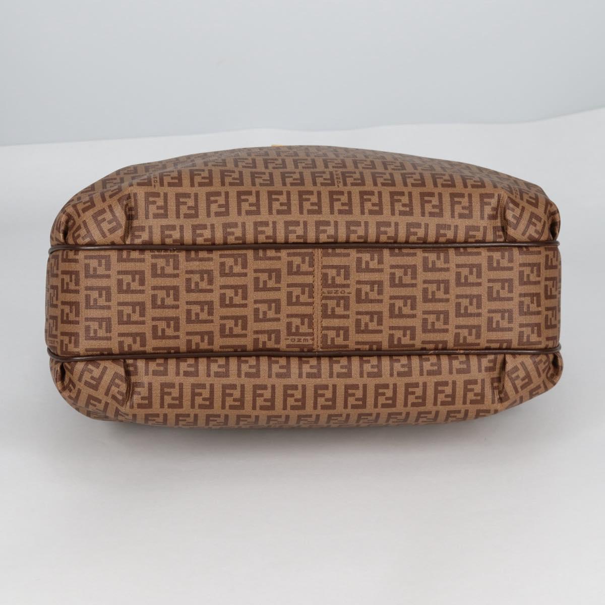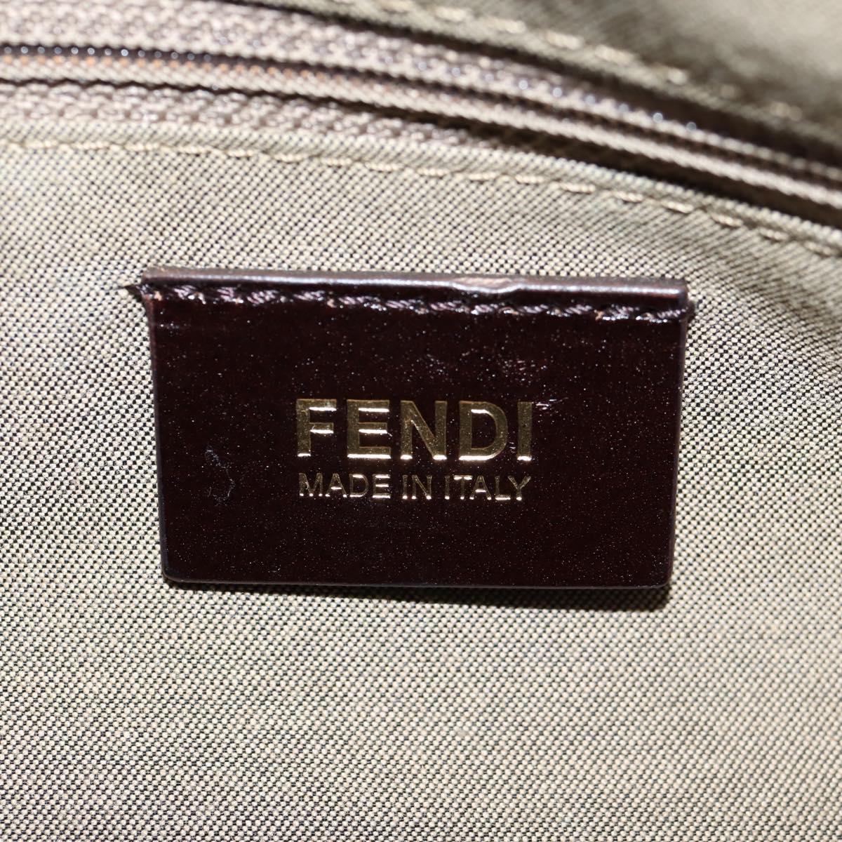 FENDI Zucchino Canvas Mamma Baguette Shoulder Bag PVC Beige Gold Auth 135115A