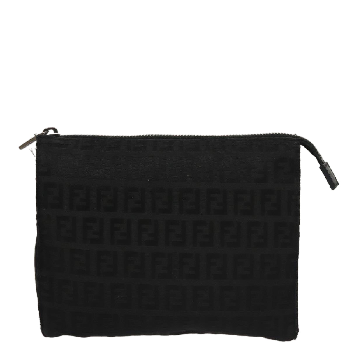 FENDI Zucchino Canvas Pouch Black Auth mr924