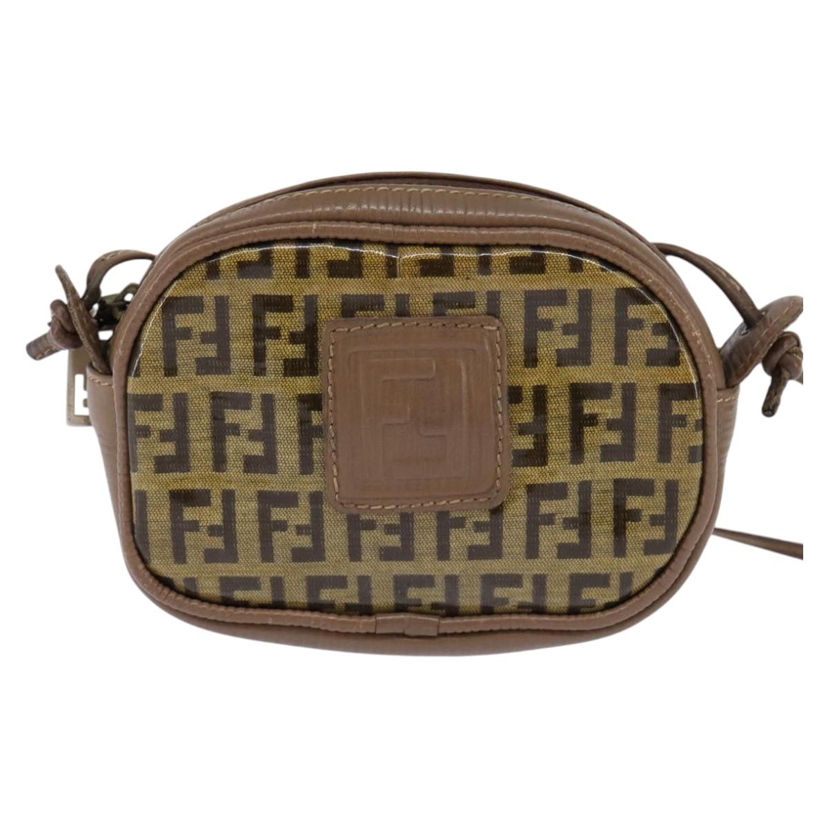 FENDI Zucchino Canvas Shoulder Bag Beige Auth ep10936