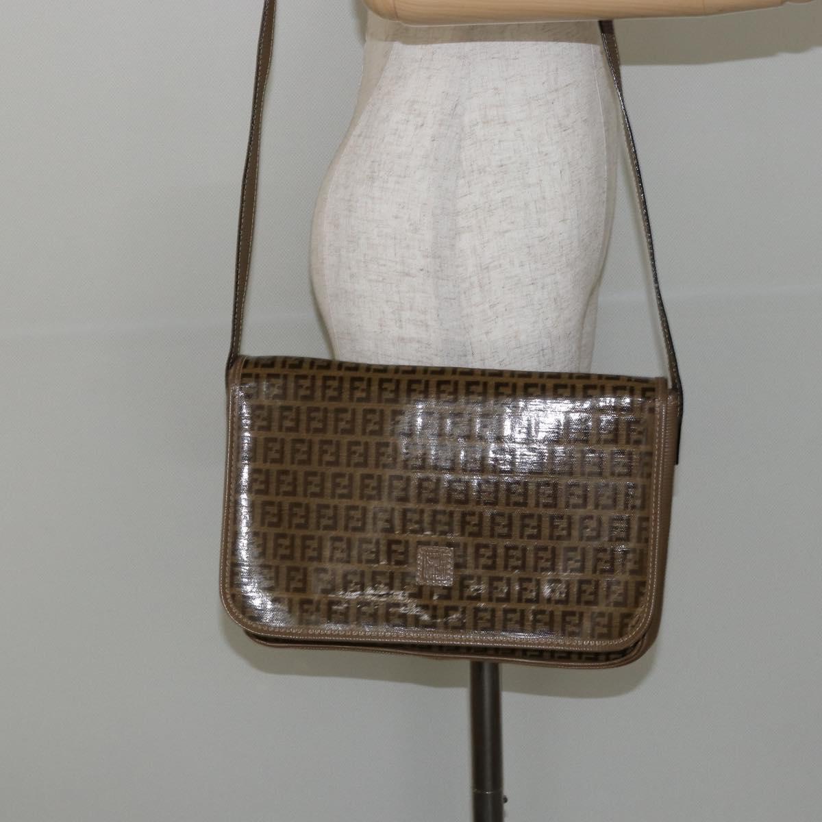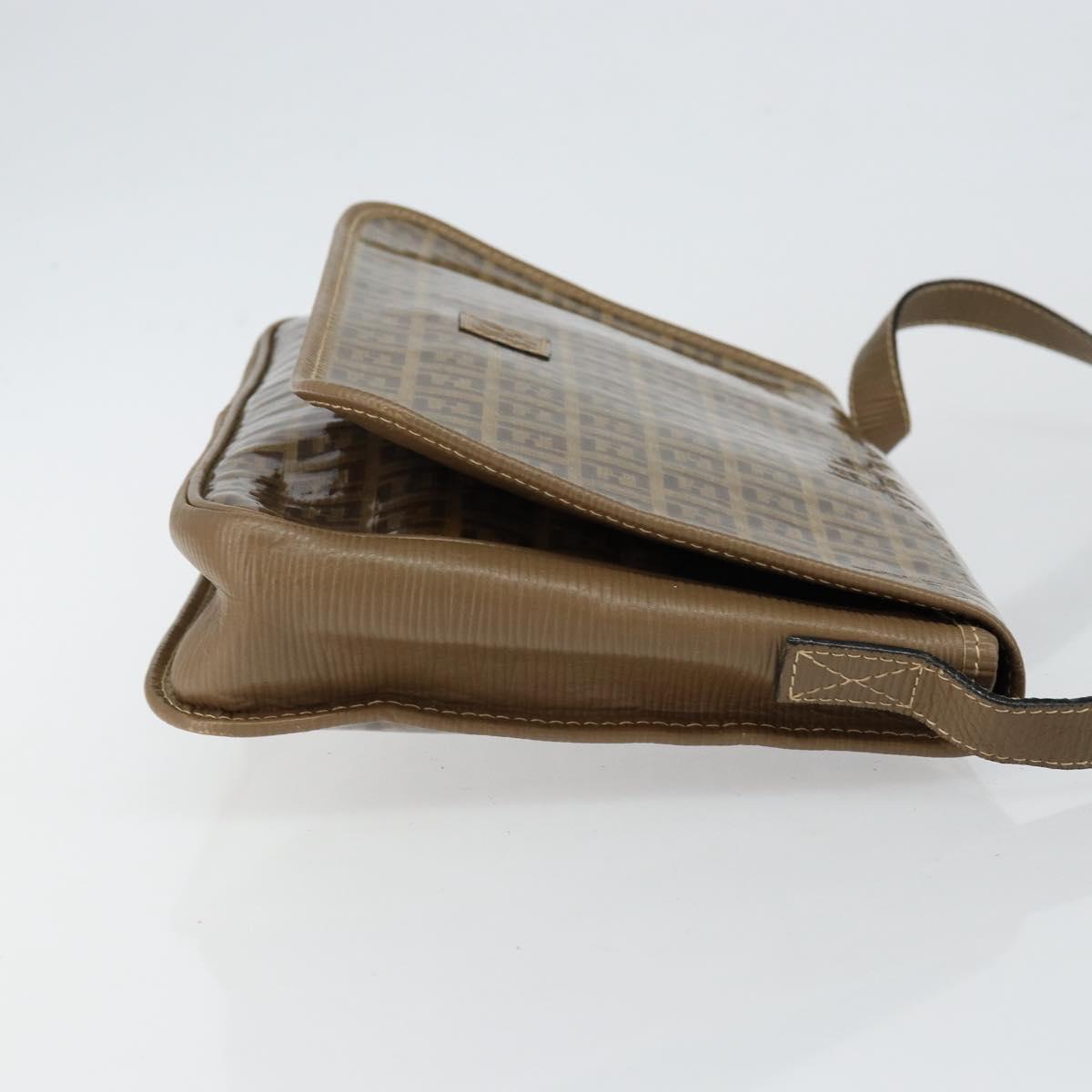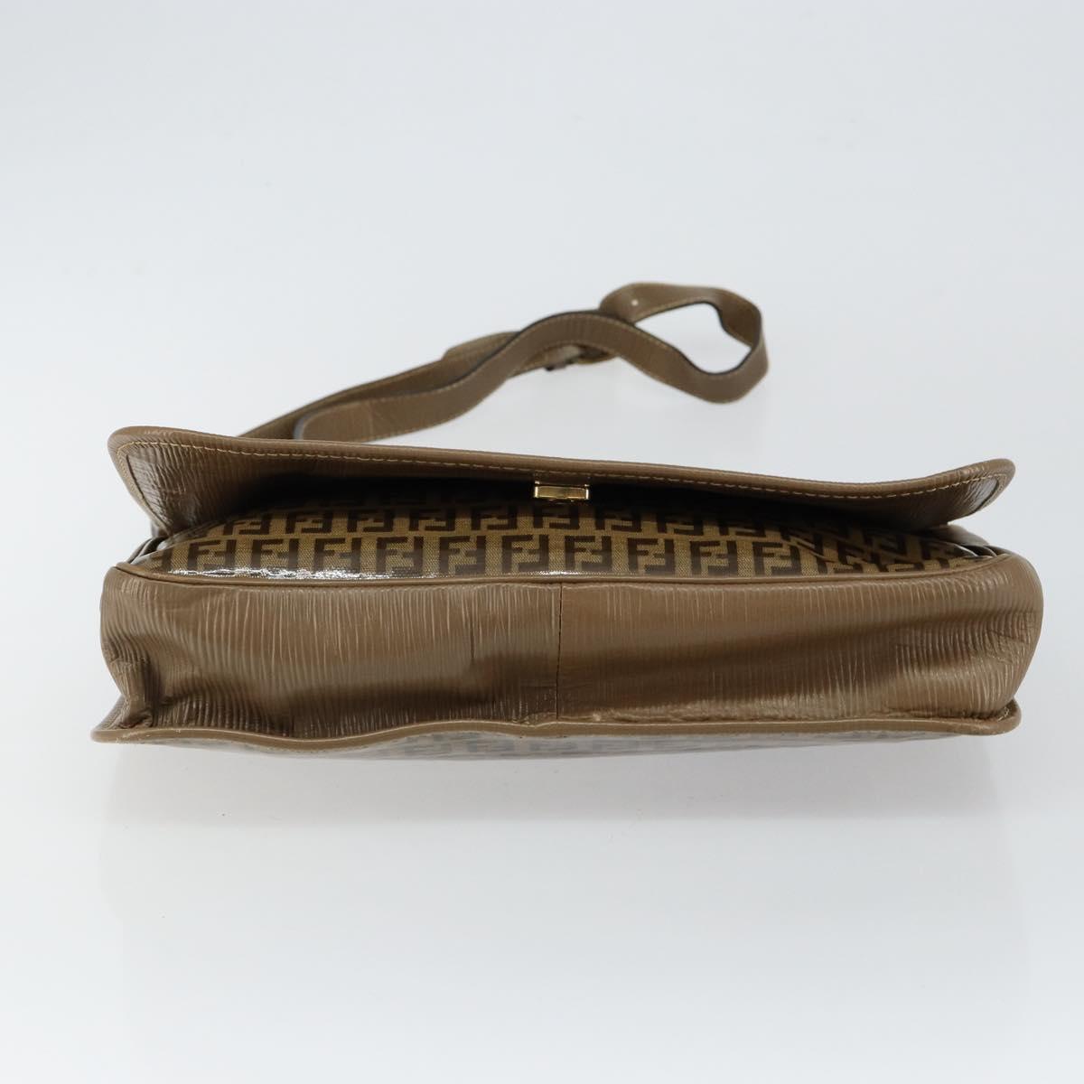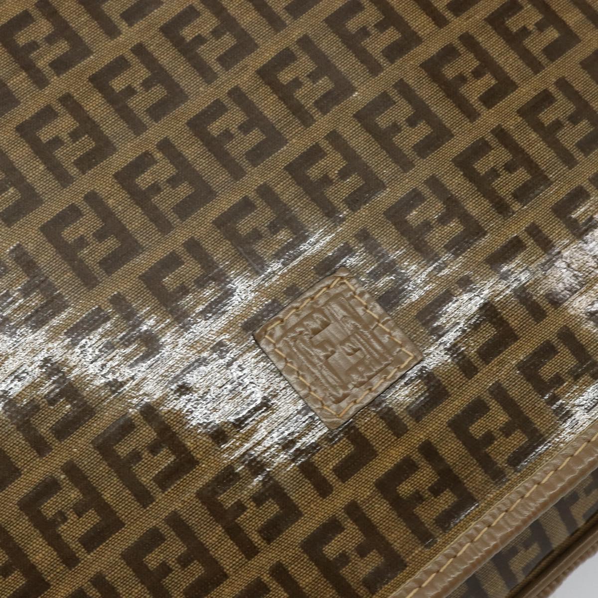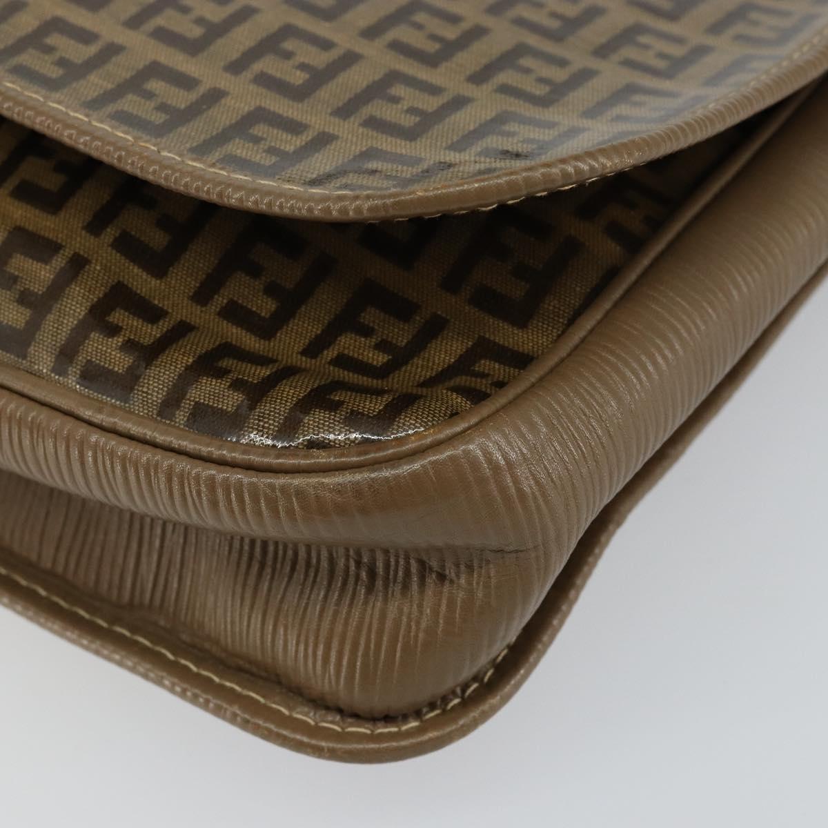 FENDI Zucchino Canvas Shoulder Bag Beige Gold Auth 145202