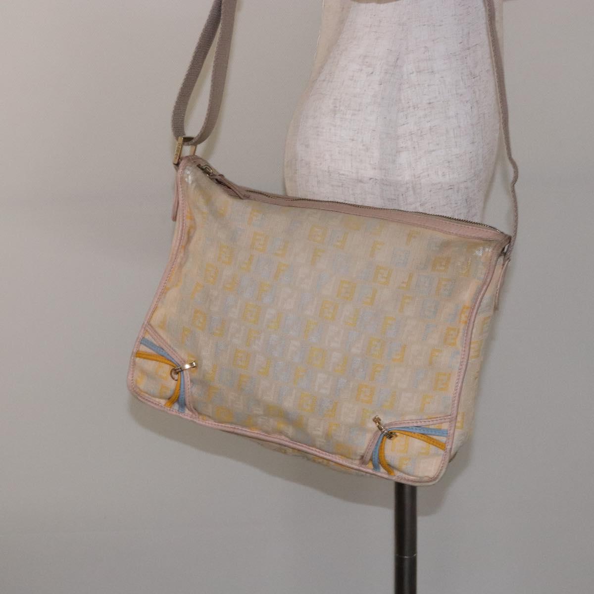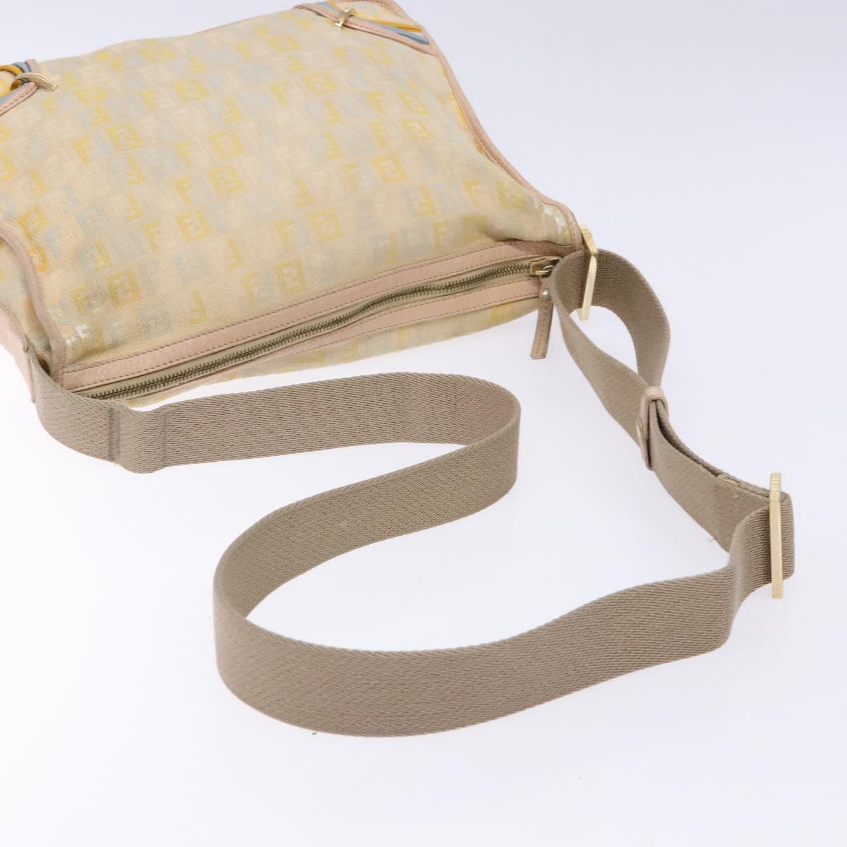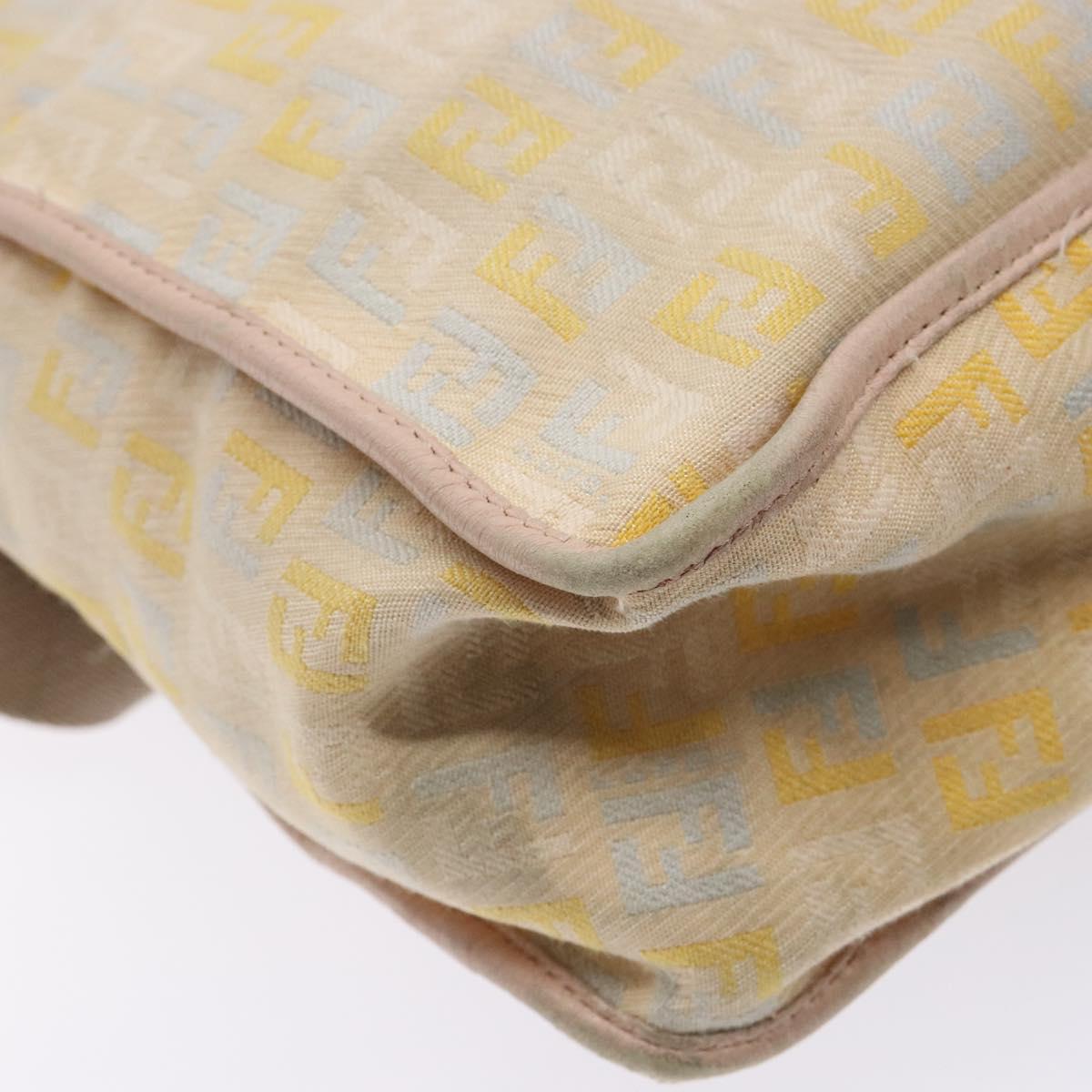 FENDI Zucchino Canvas Shoulder Bag Beige Gold Auth ep9438
