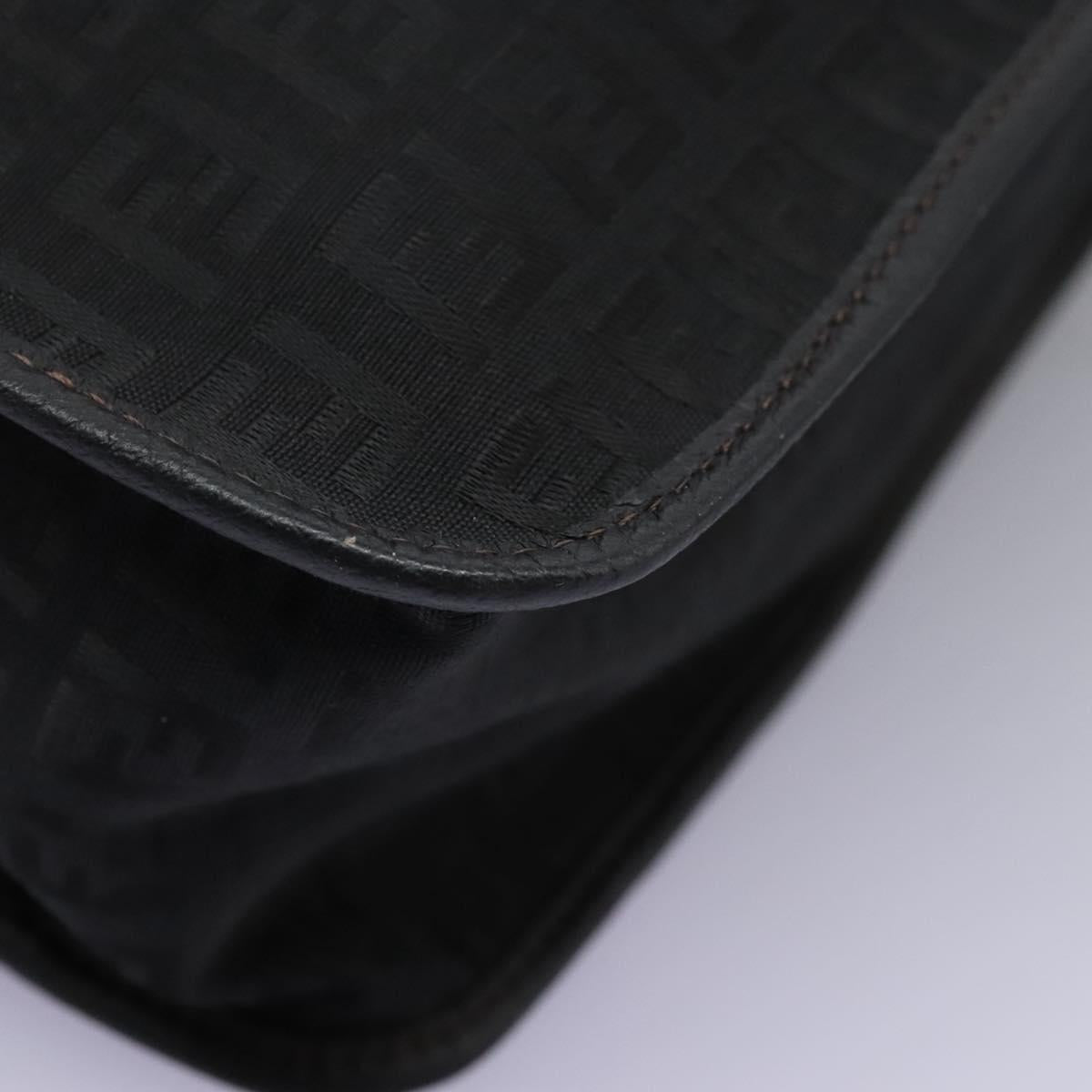 FENDI Zucchino Canvas Shoulder Bag Black Auth PP376V