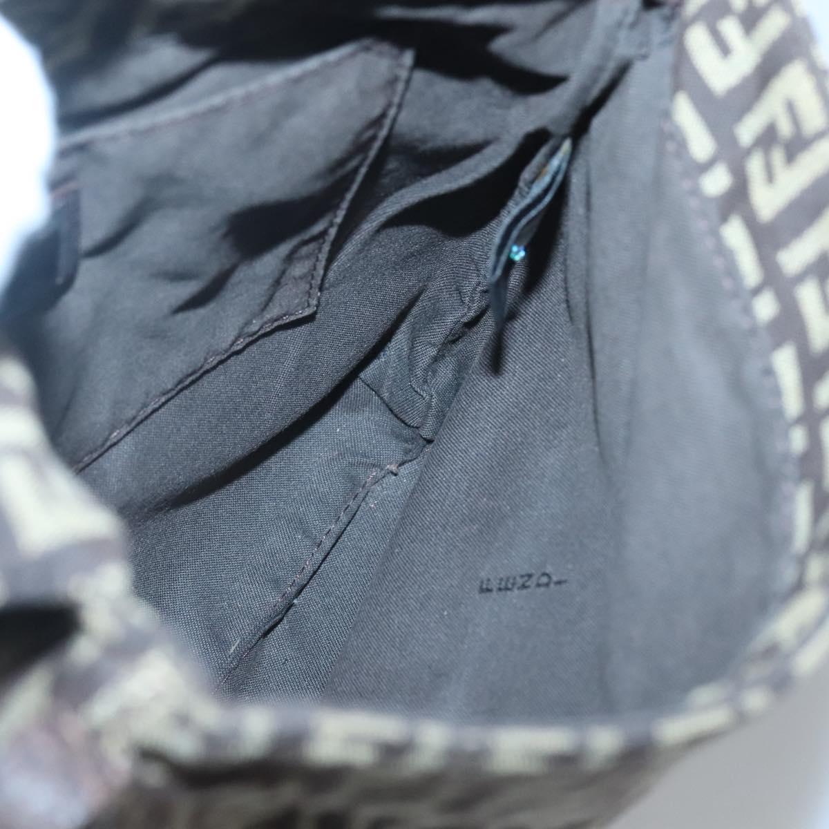 FENDI Zucchino Canvas Shoulder Bag Black Brown Silver Auth 120201