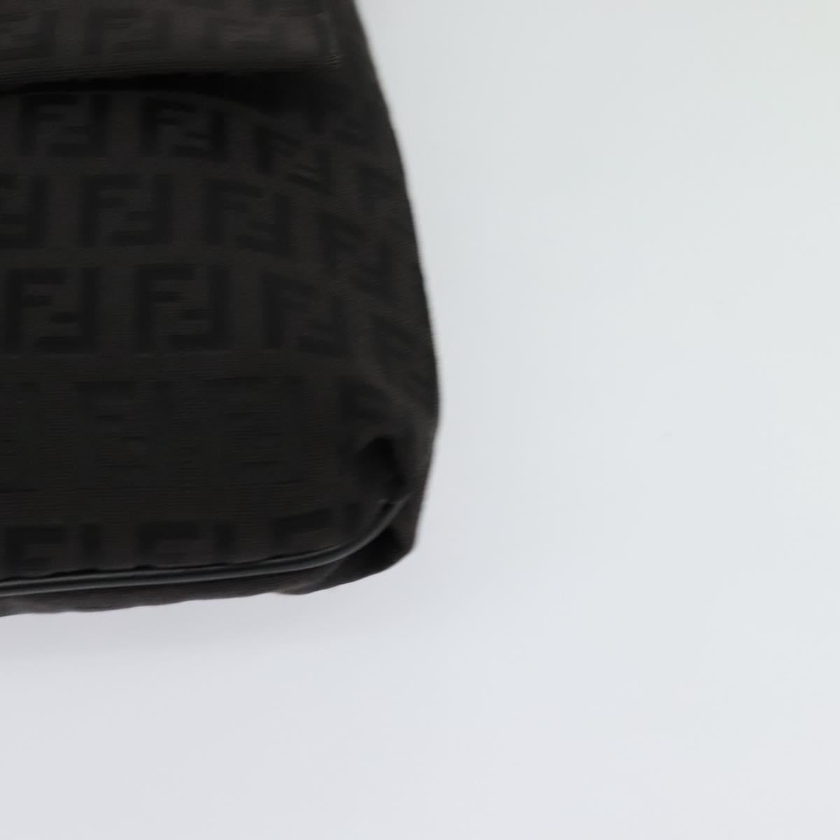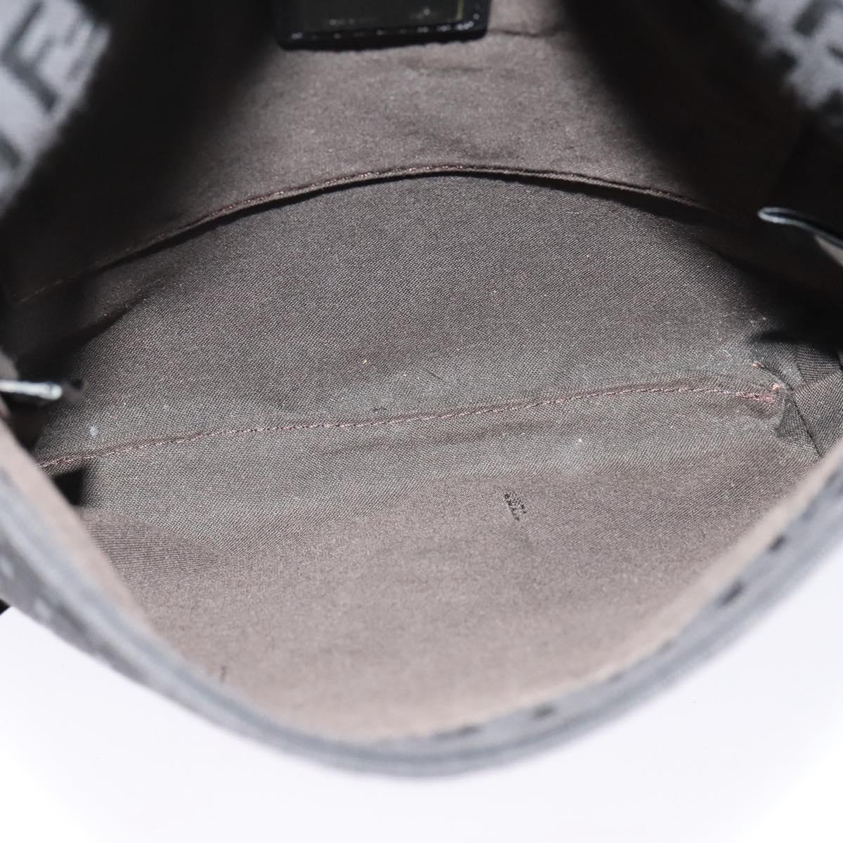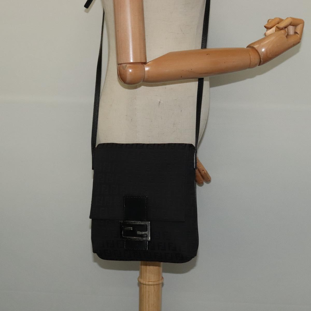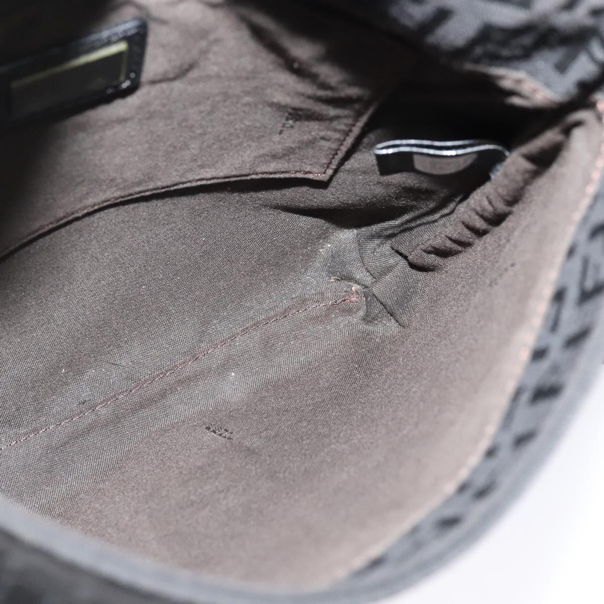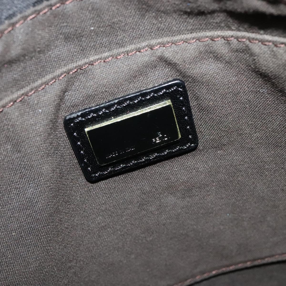 FENDI Zucchino Canvas Shoulder Bag Black Silver Auth 118655