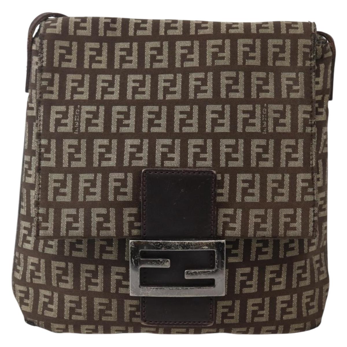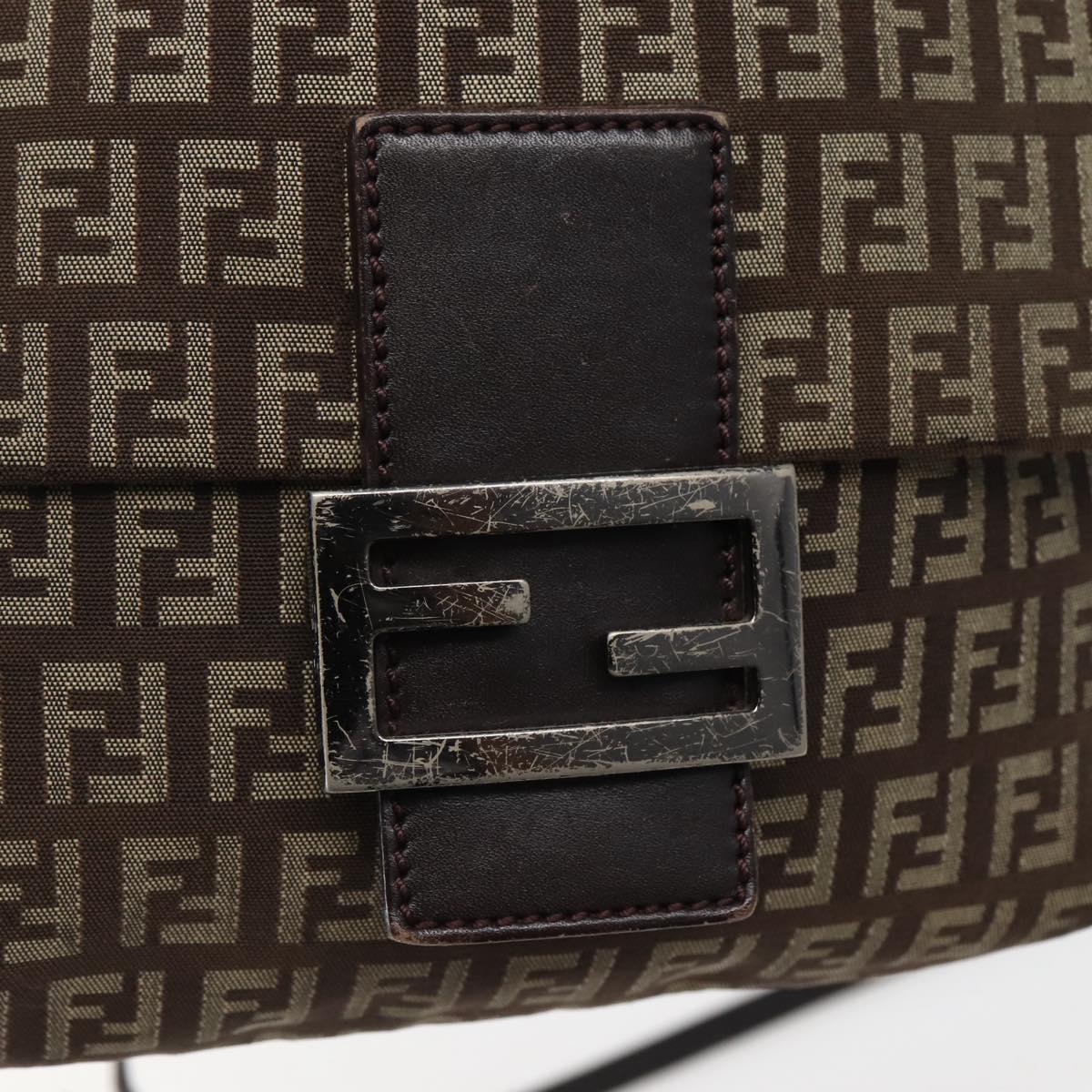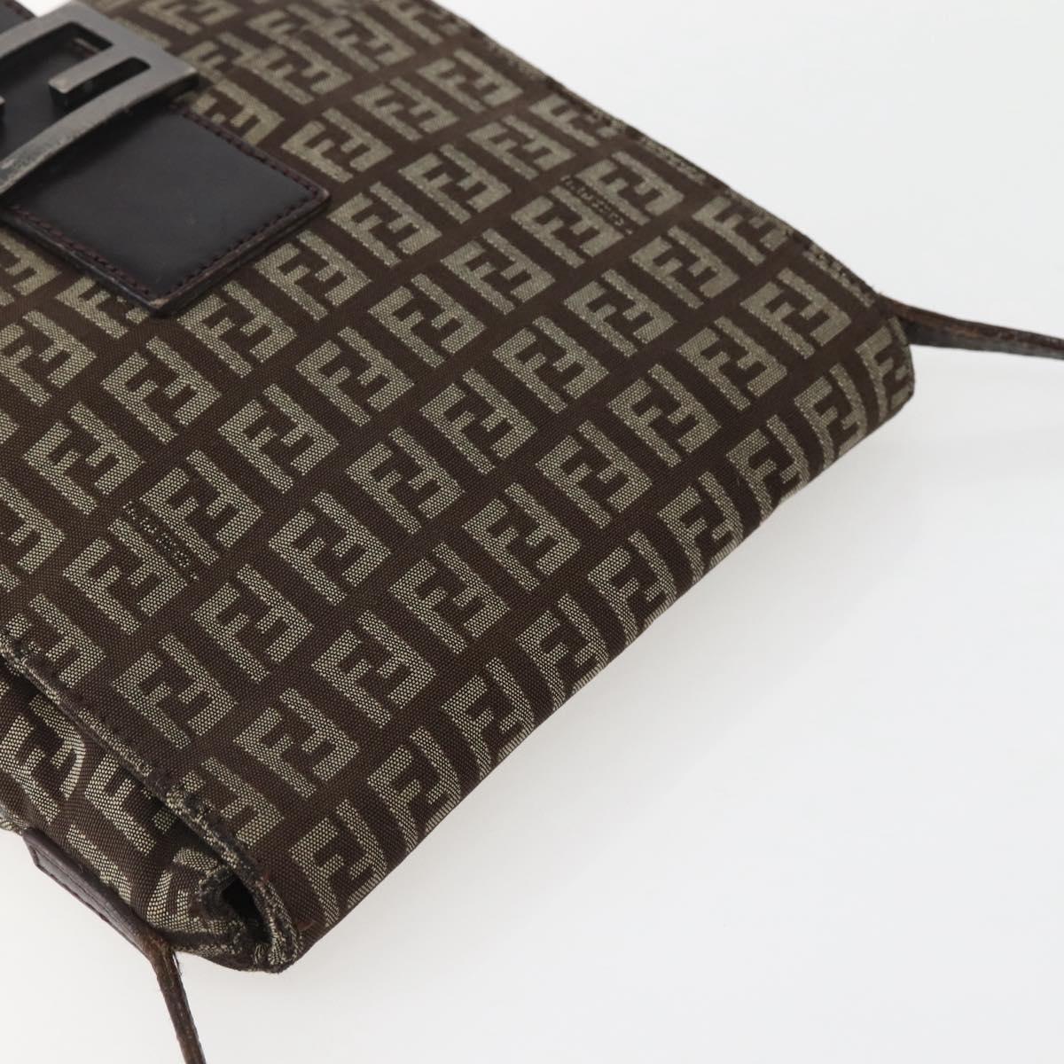 FENDI Zucchino Canvas Shoulder Bag Brown Auth bs29399