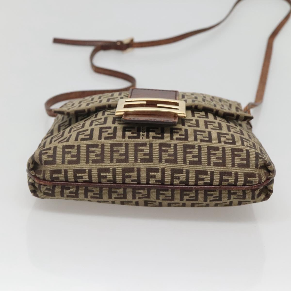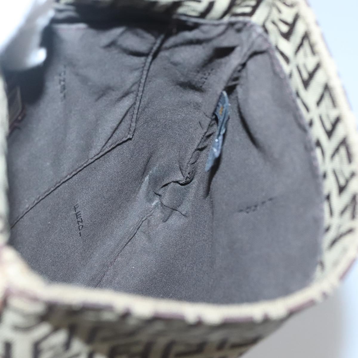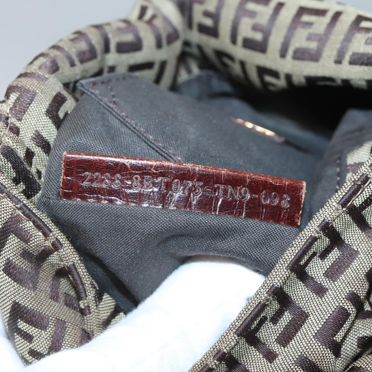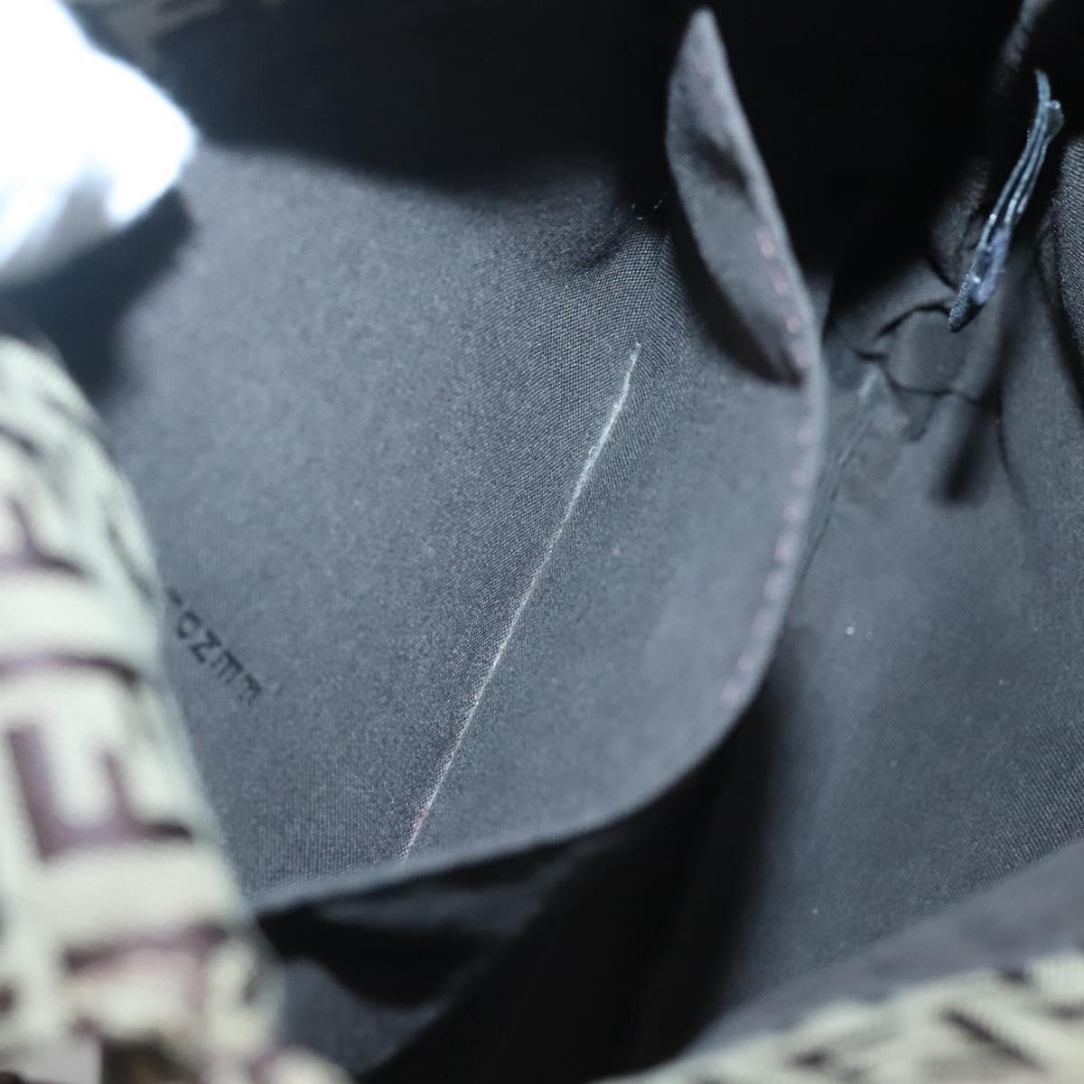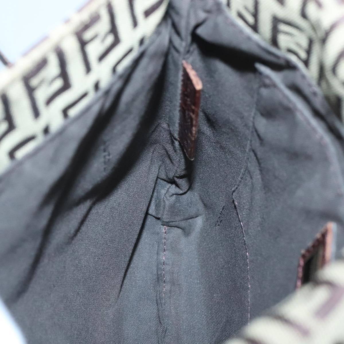 FENDI Zucchino Canvas Shoulder Bag Brown Black Auth bs25758