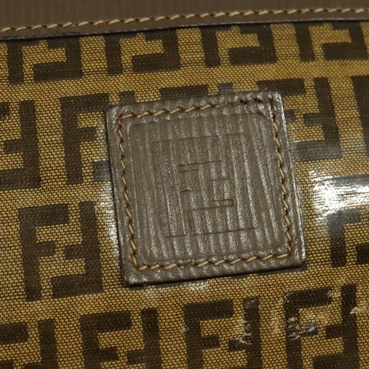 FENDI Zucchino Canvas Shoulder Bag Coated Canvas Brown Gold Auth th5787