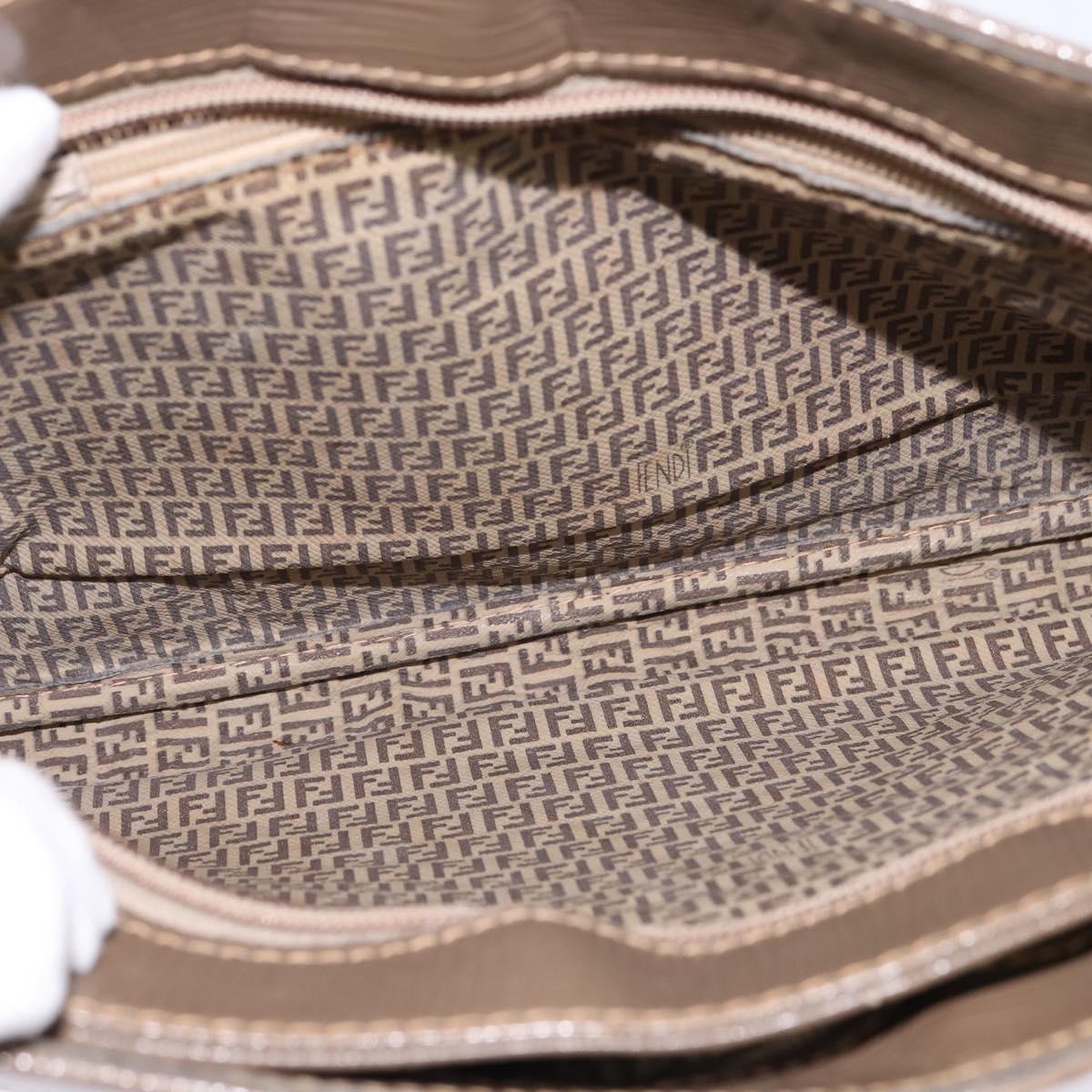 FENDI Zucchino Canvas Shoulder Bag Enamel Beige Auth 144084