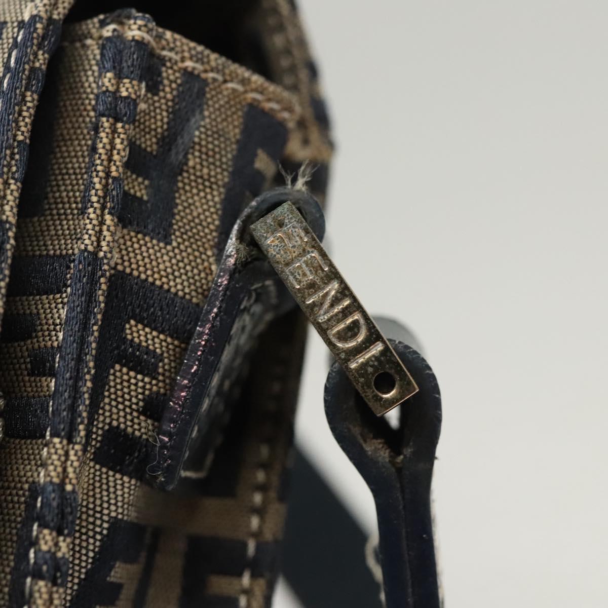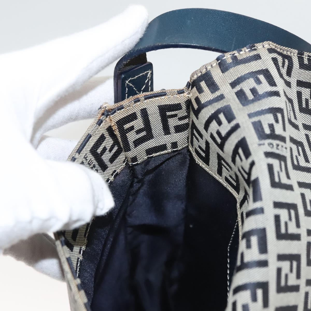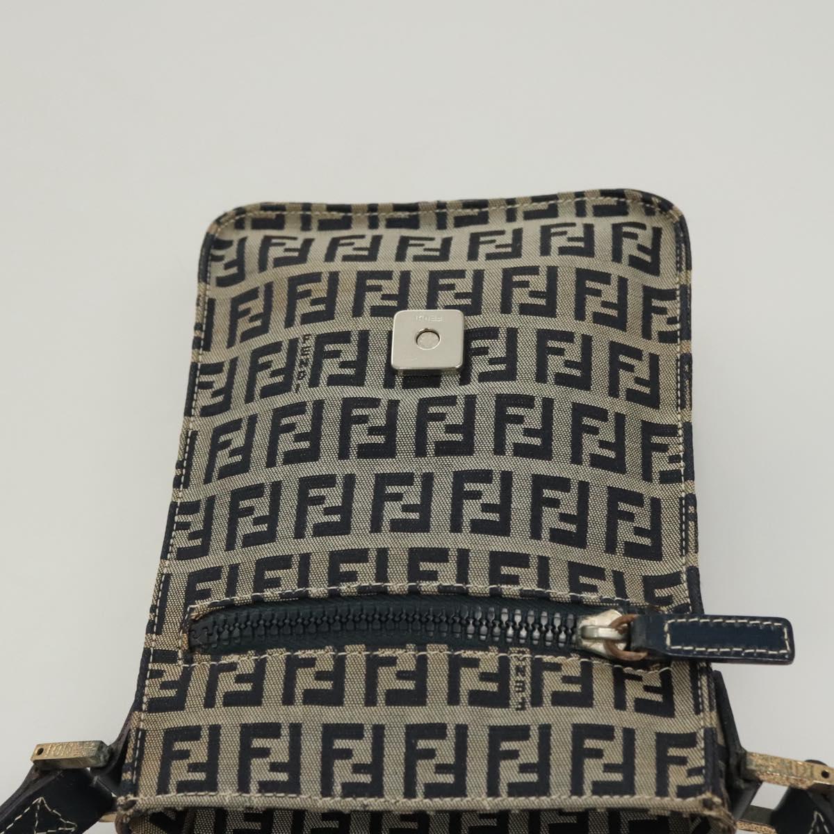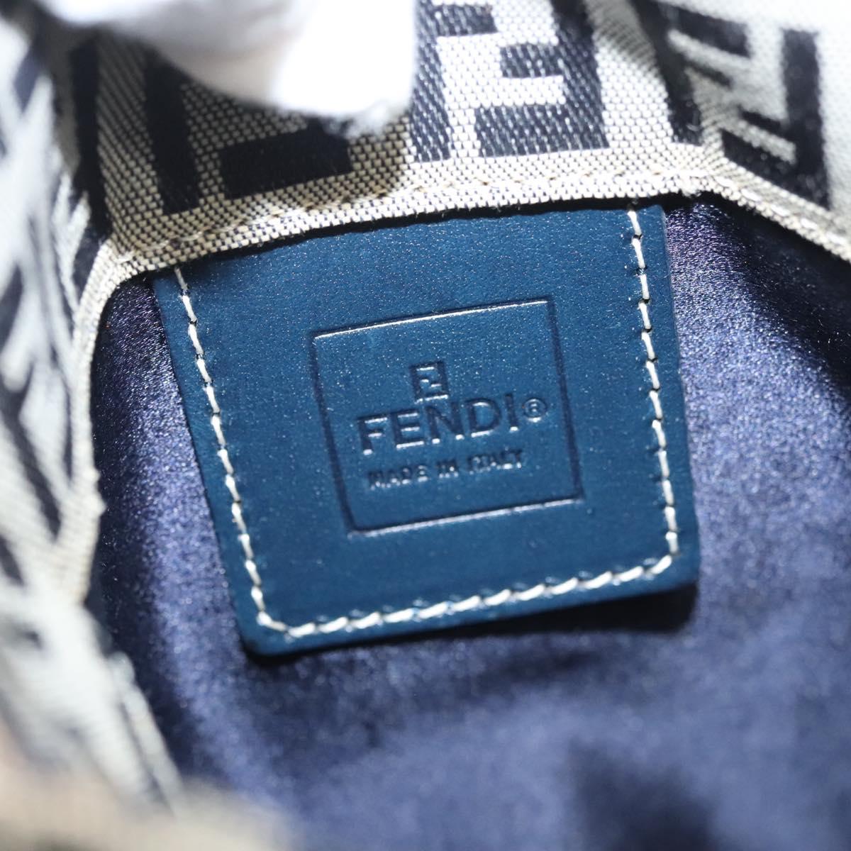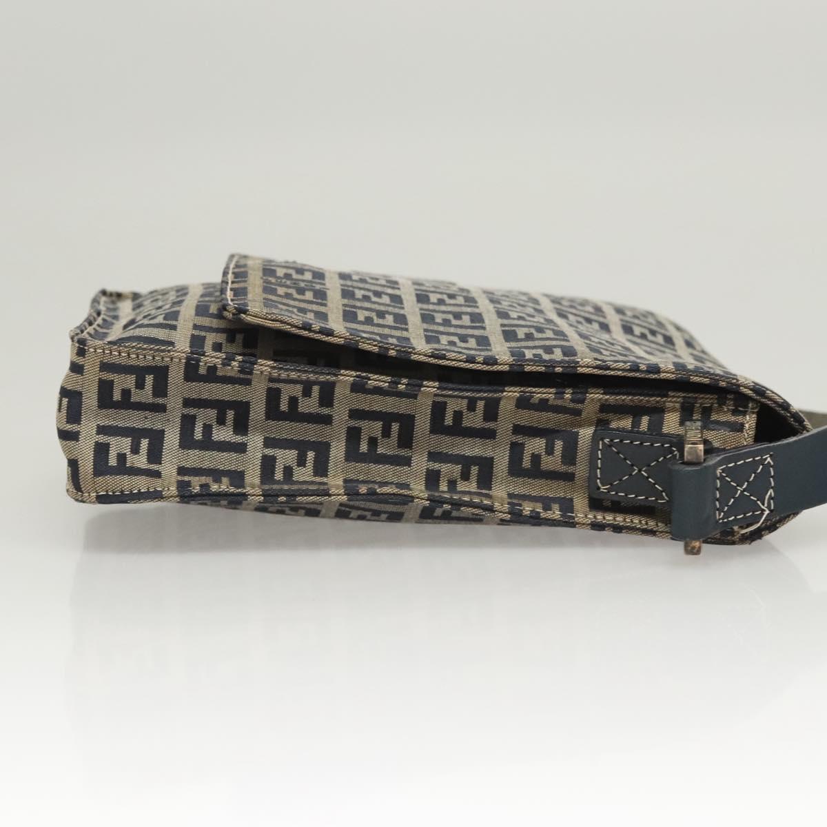 FENDI Zucchino Canvas Shoulder Bag Navy Gold Auth 126273