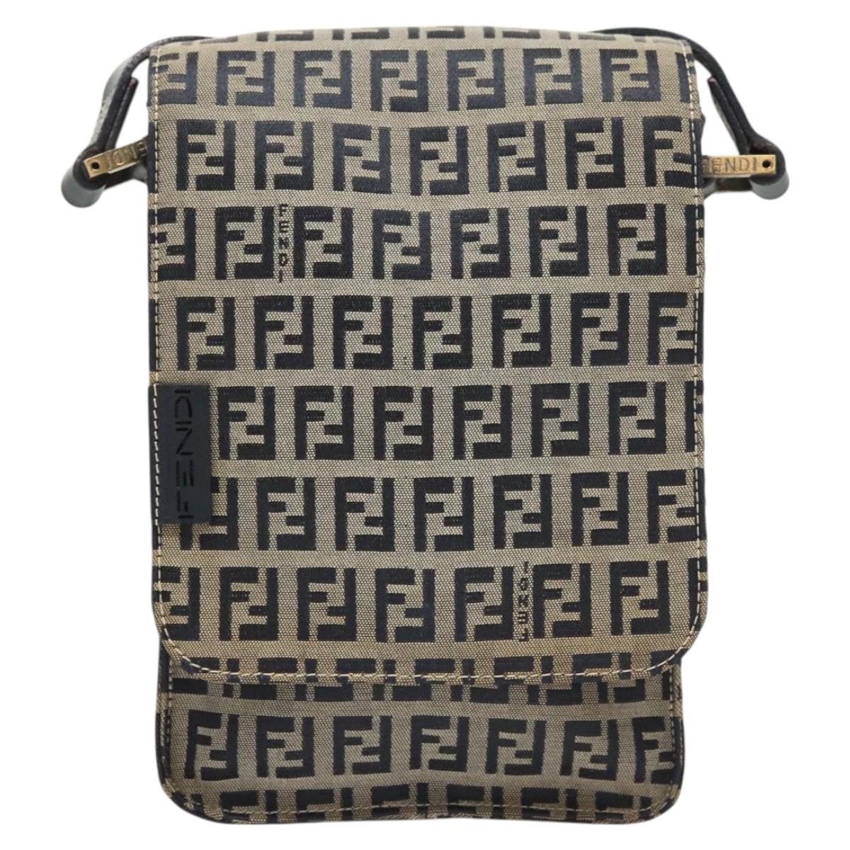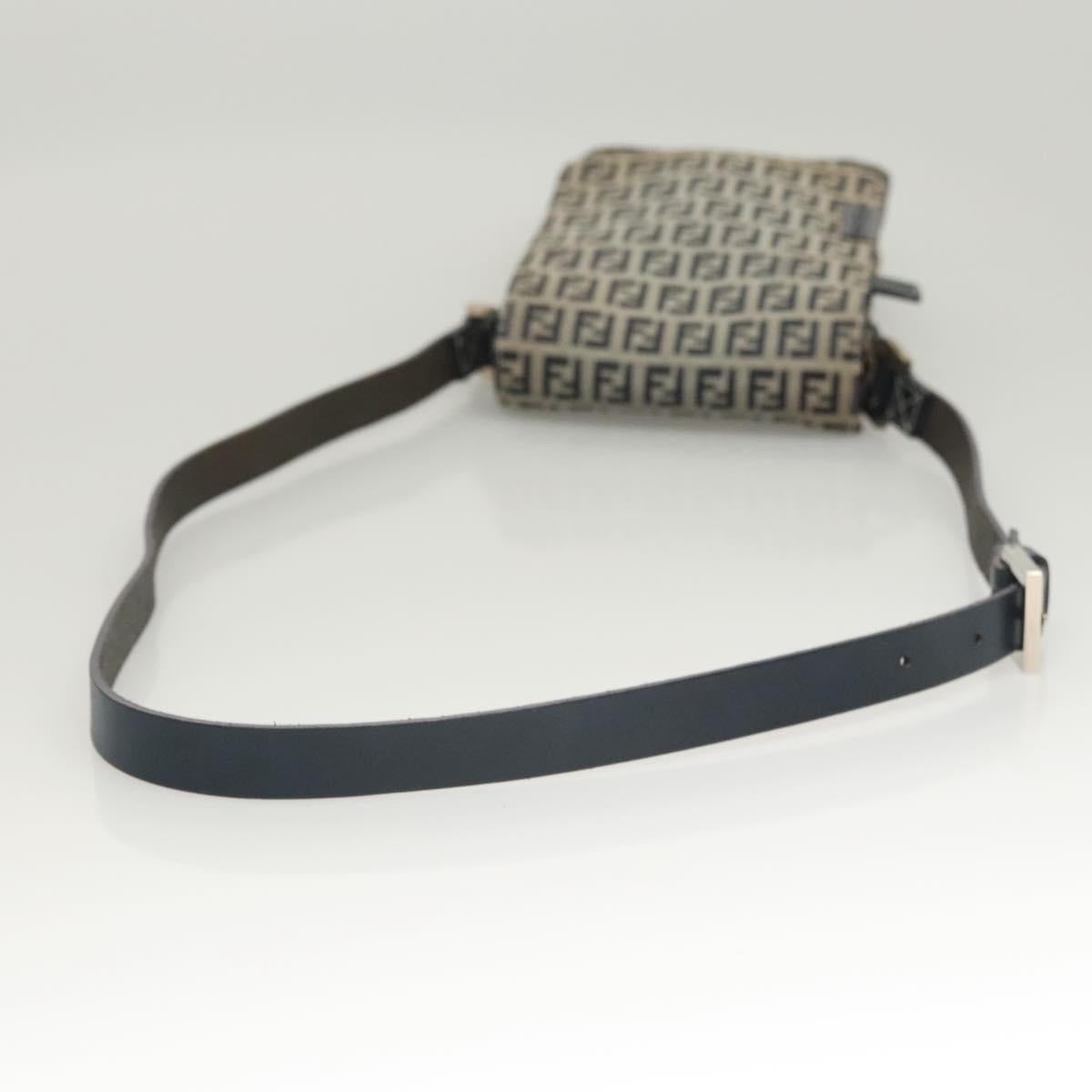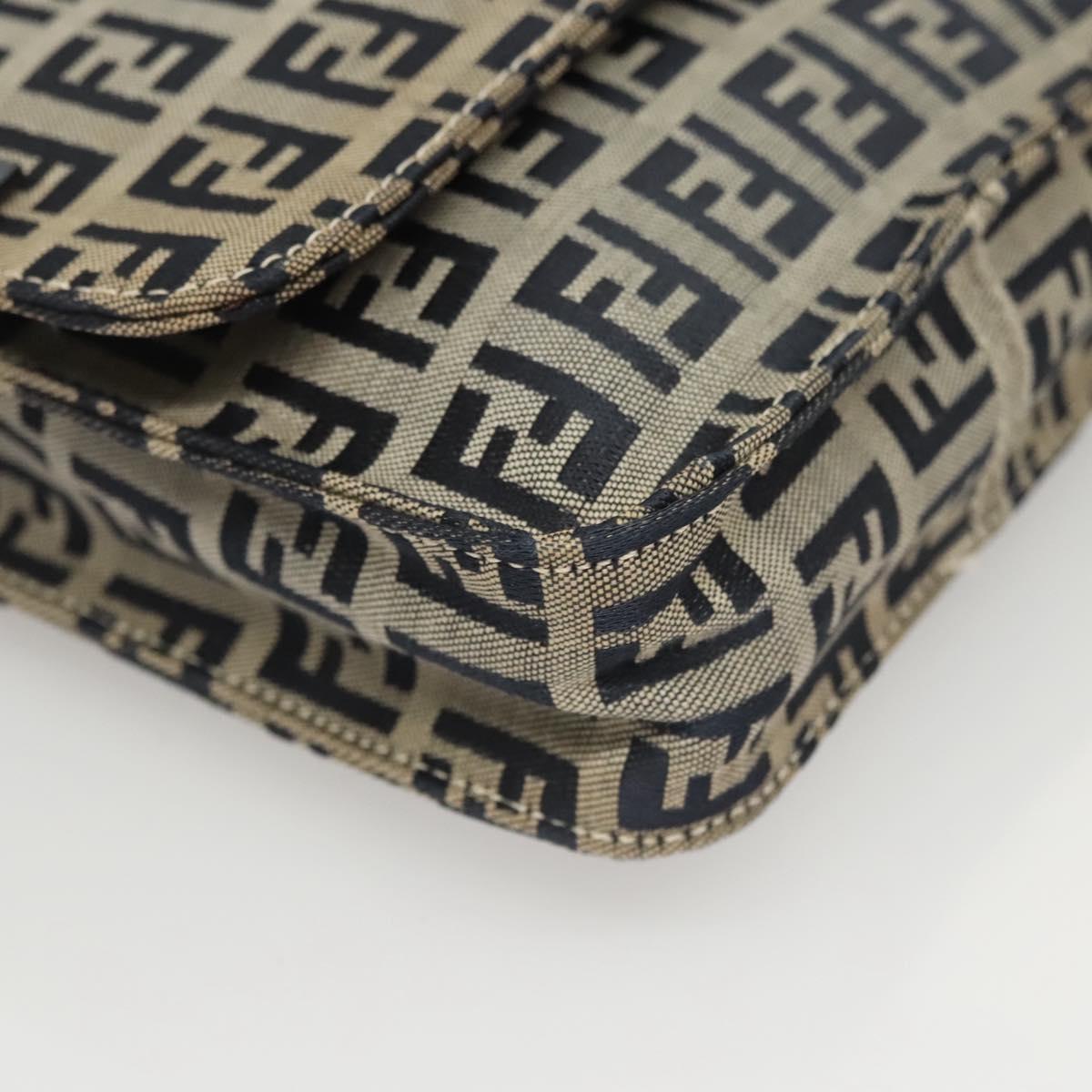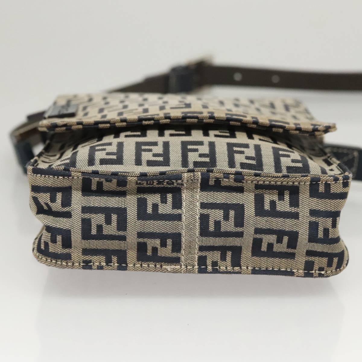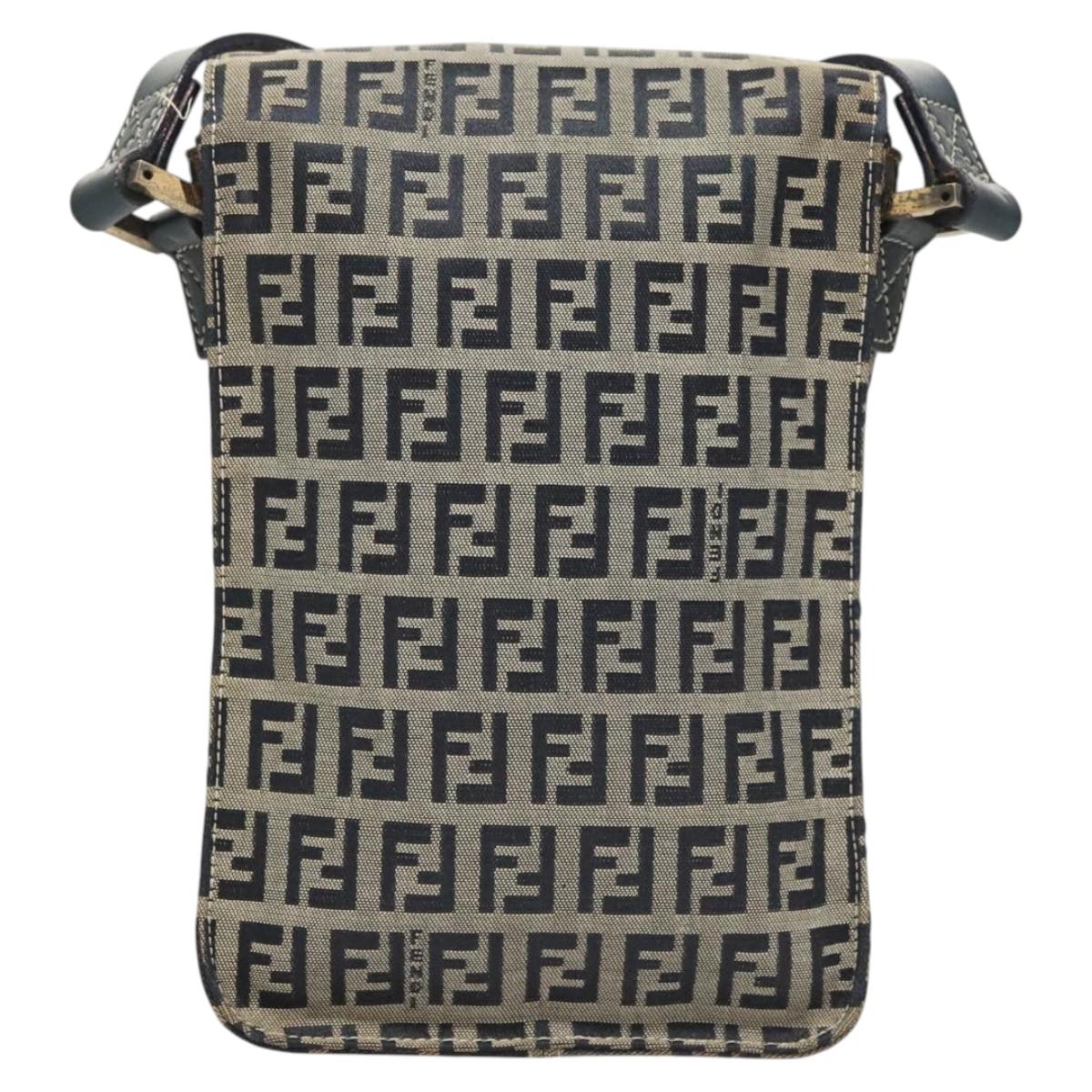 FENDI Zucchino Canvas Shoulder Bag Navy Gold Auth 126273
