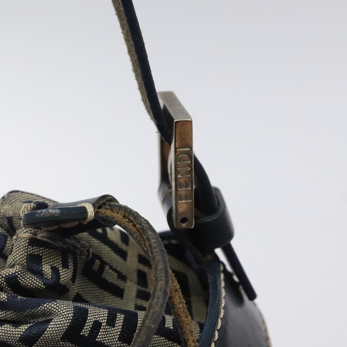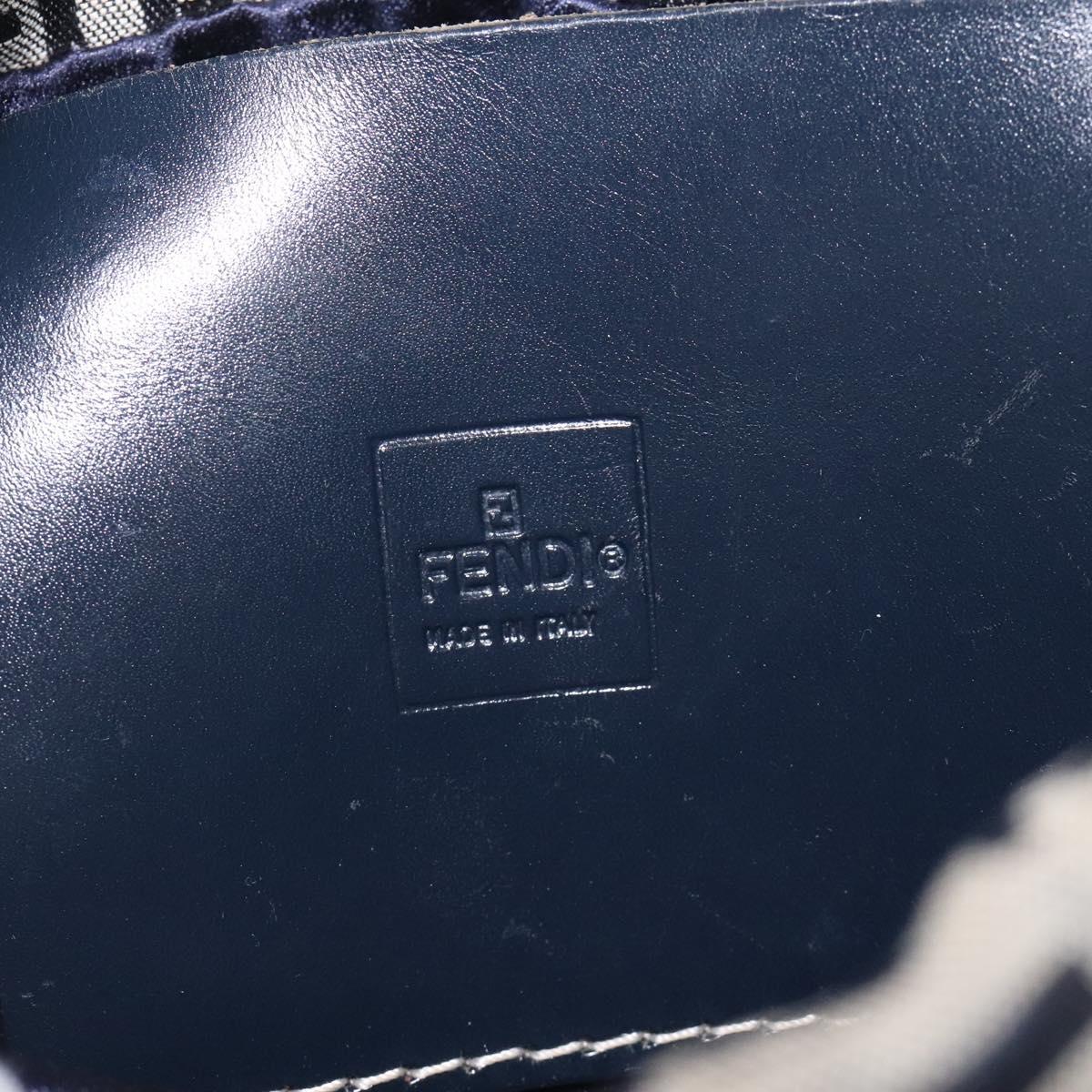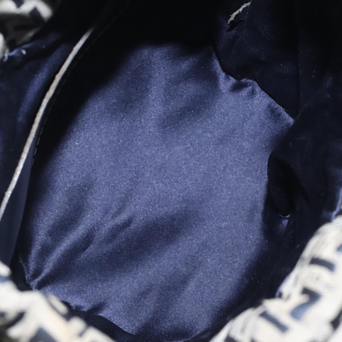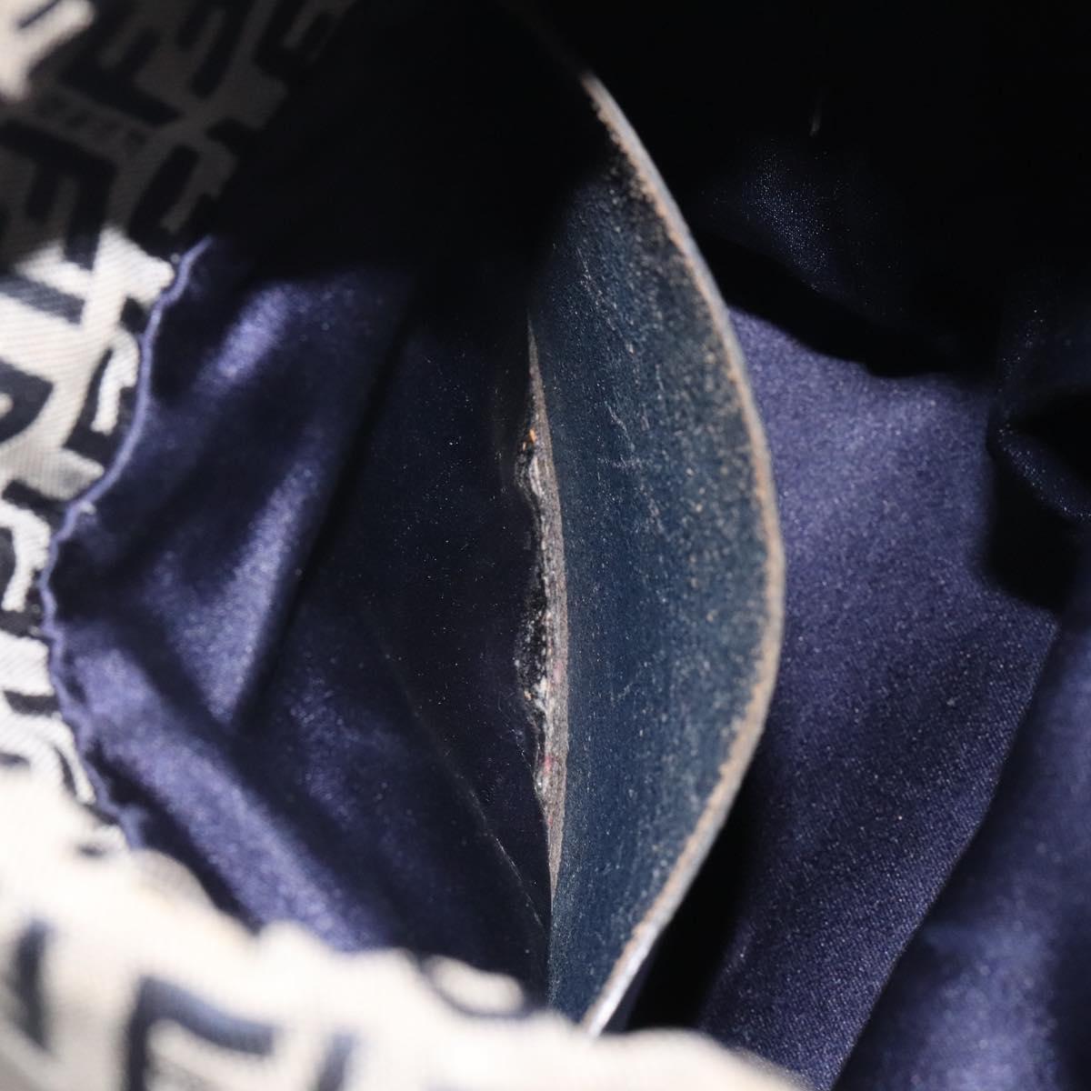 FENDI Zucchino Canvas Shoulder Bag Navy Silver Auth 123405