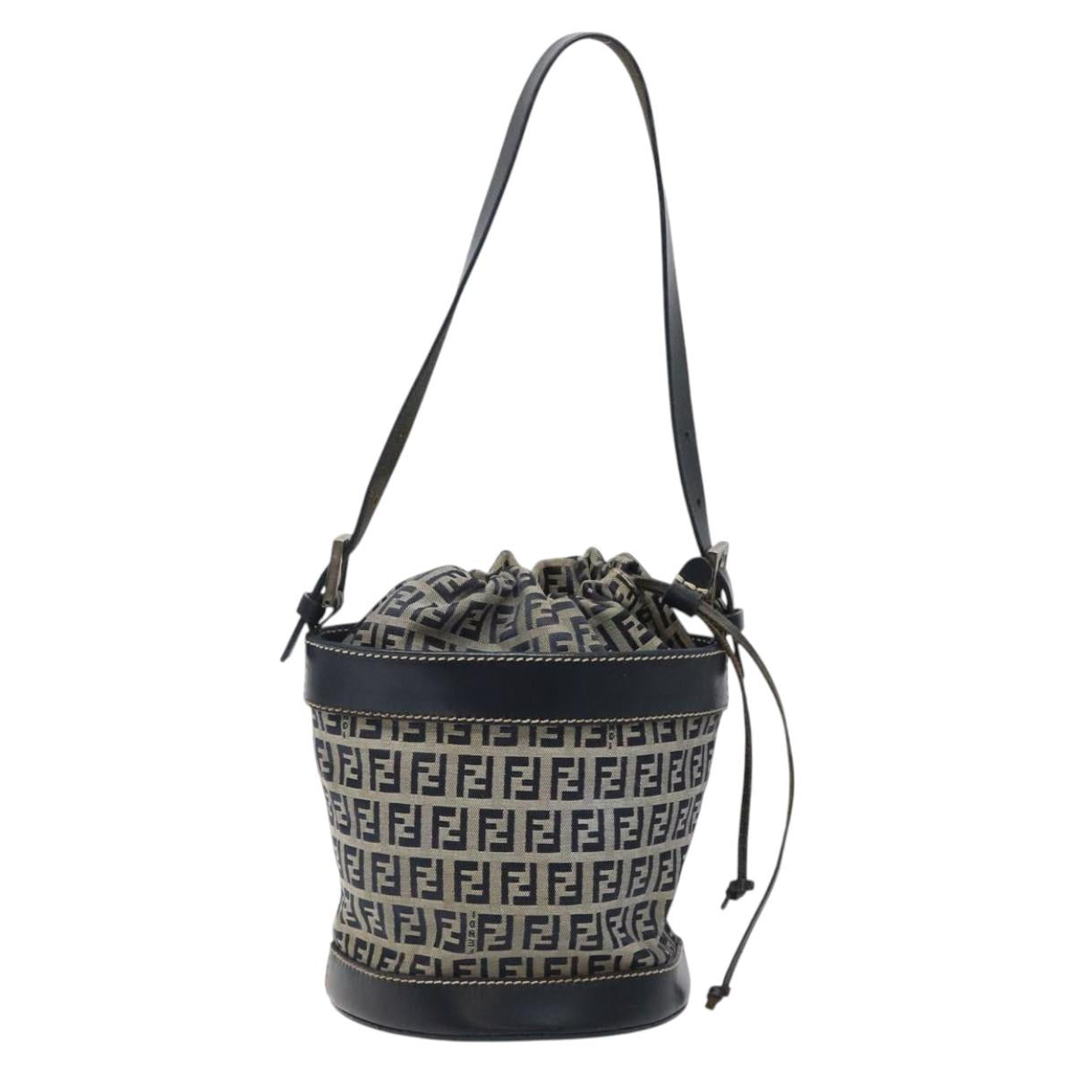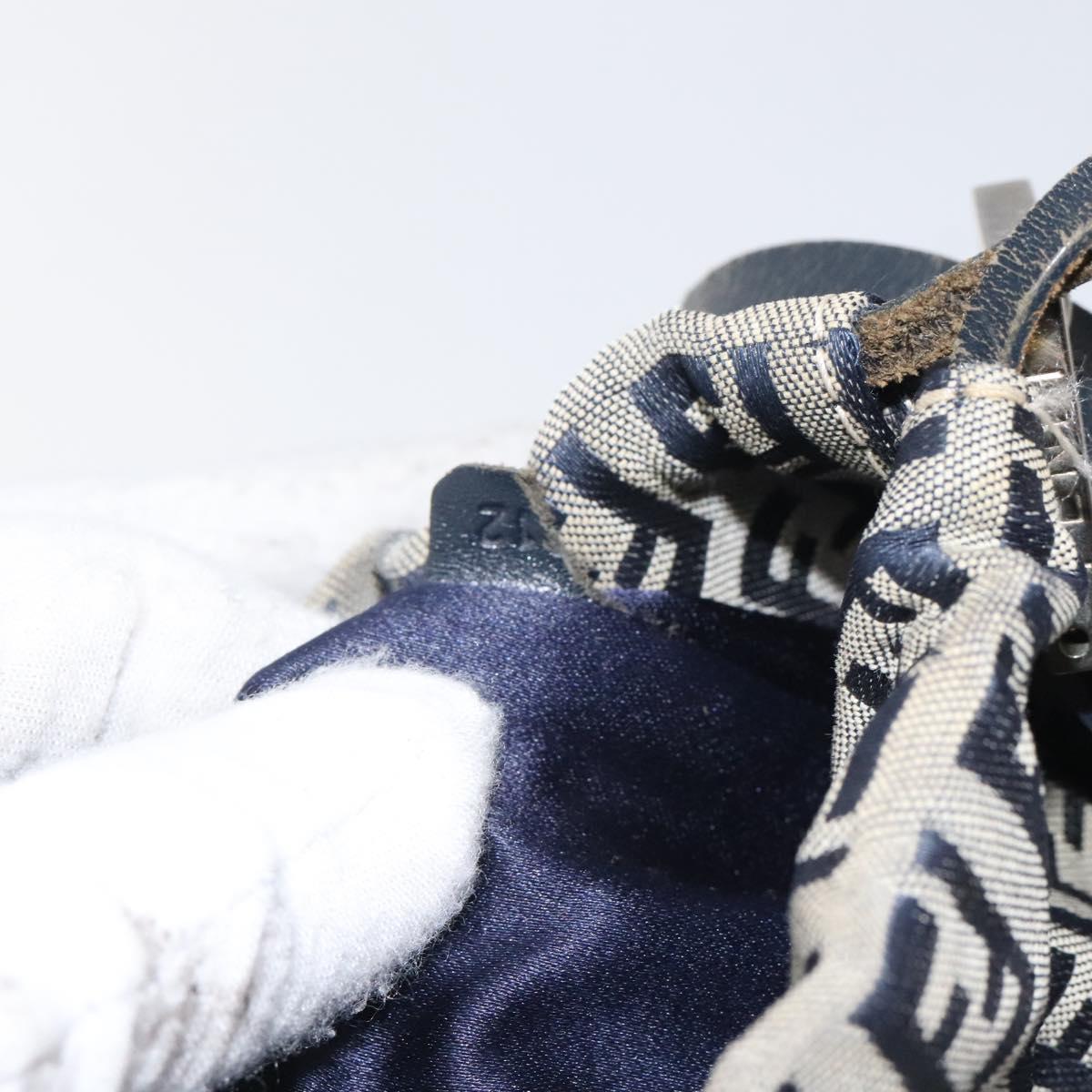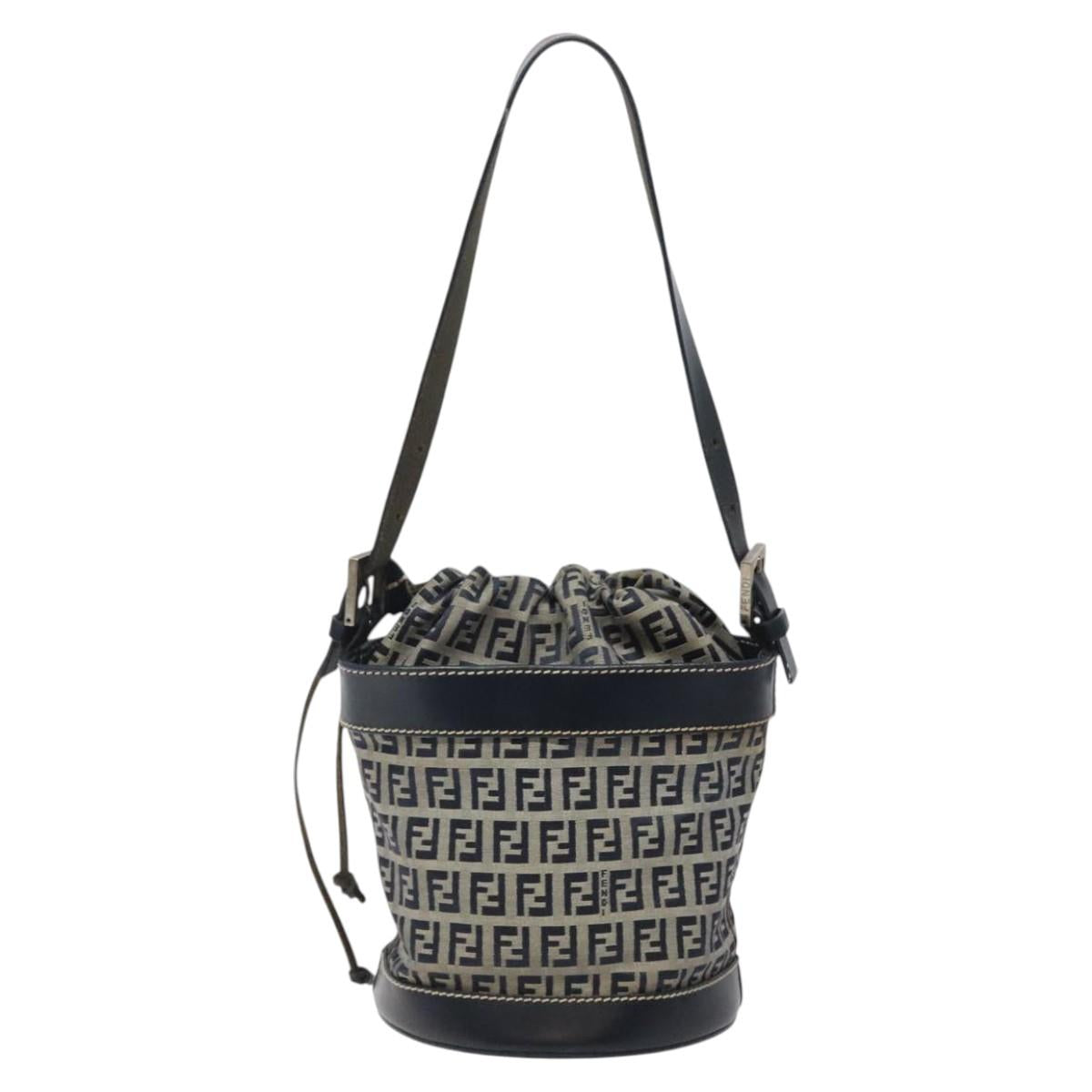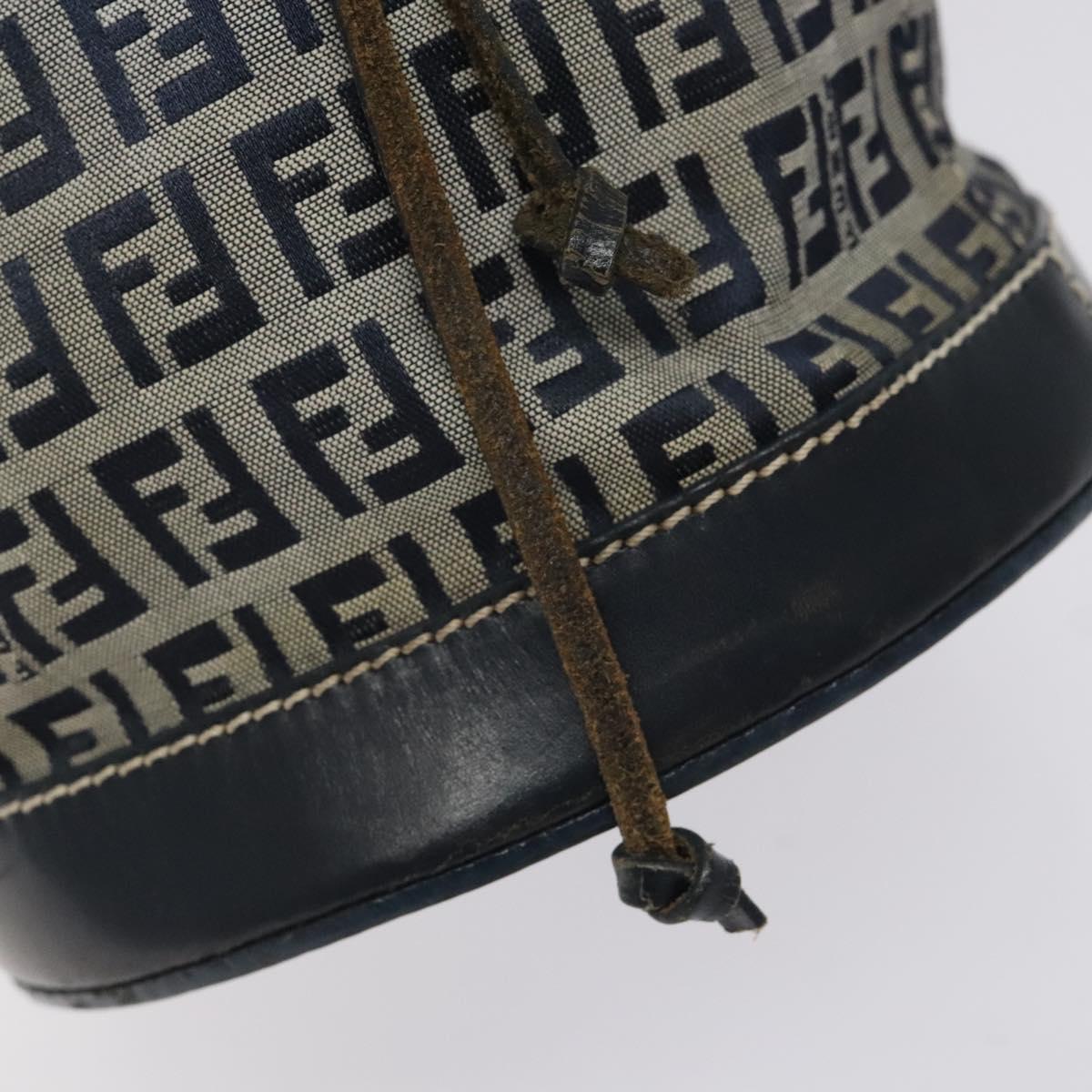 FENDI Zucchino Canvas Shoulder Bag Navy Silver Auth 123405