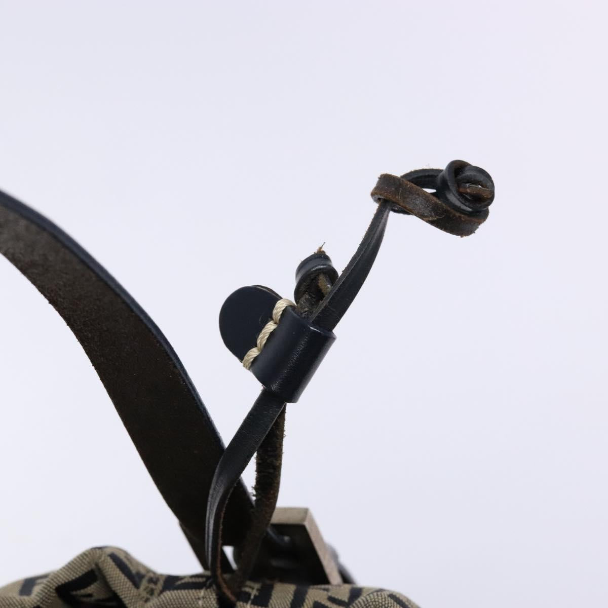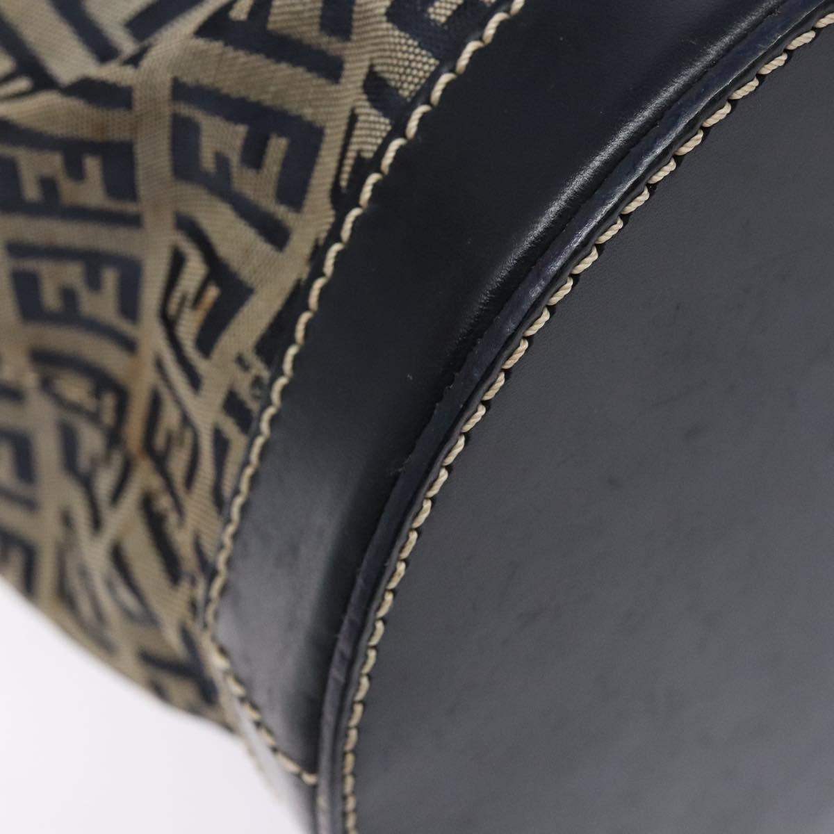 FENDI Zucchino Canvas Shoulder Bag Navy Silver Auth 139734