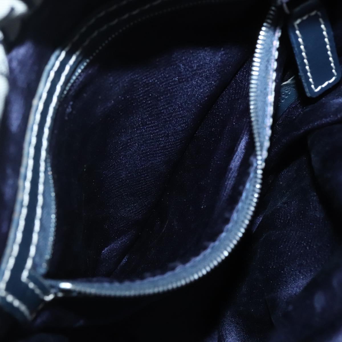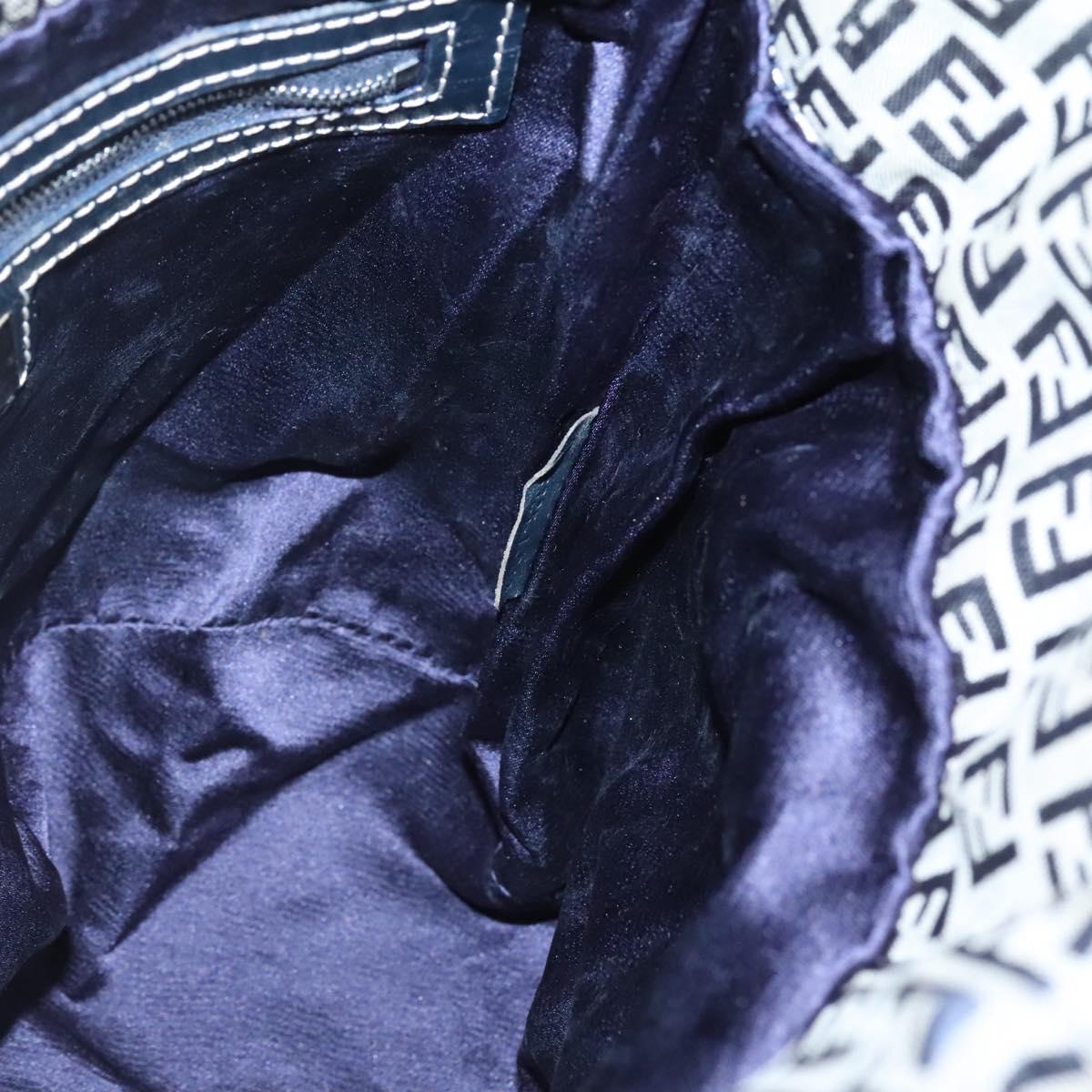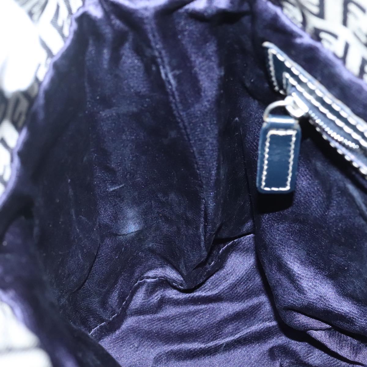 FENDI Zucchino Canvas Shoulder Bag Navy Silver Auth 141032