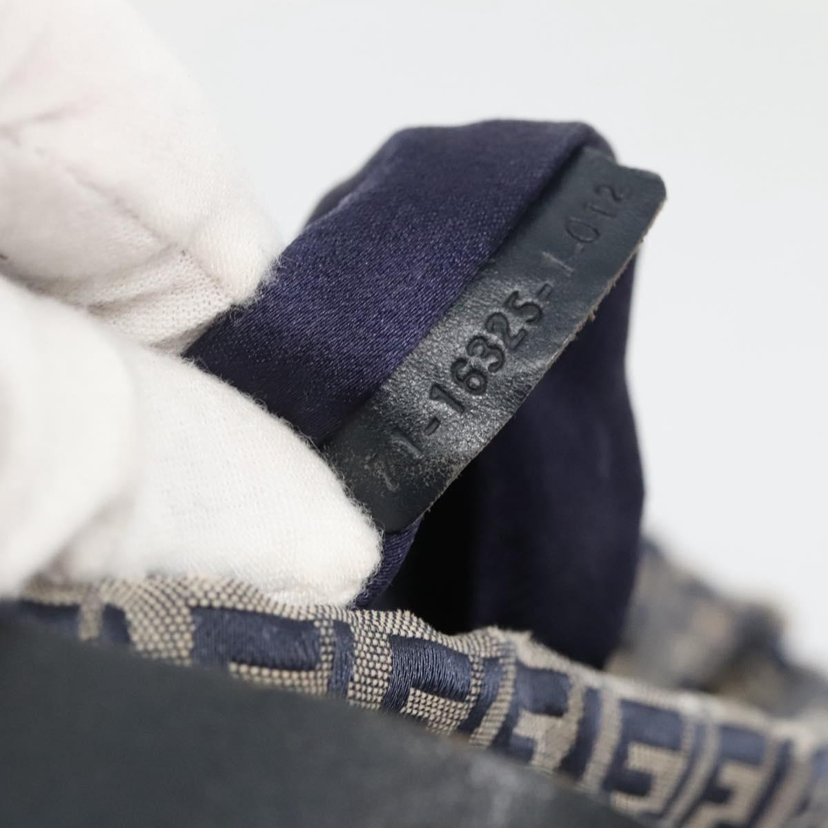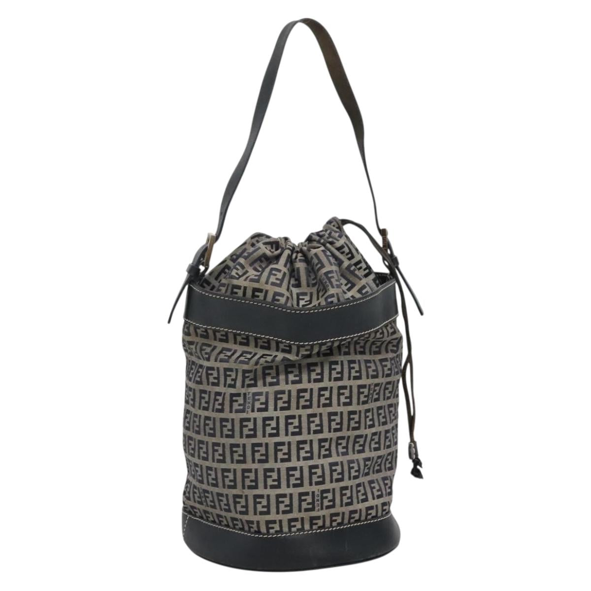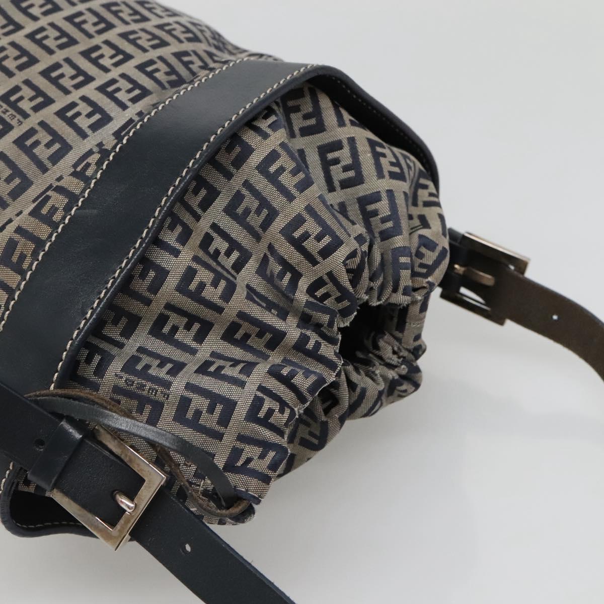FENDI Zucchino Canvas Shoulder Bag Navy Silver Auth 141032