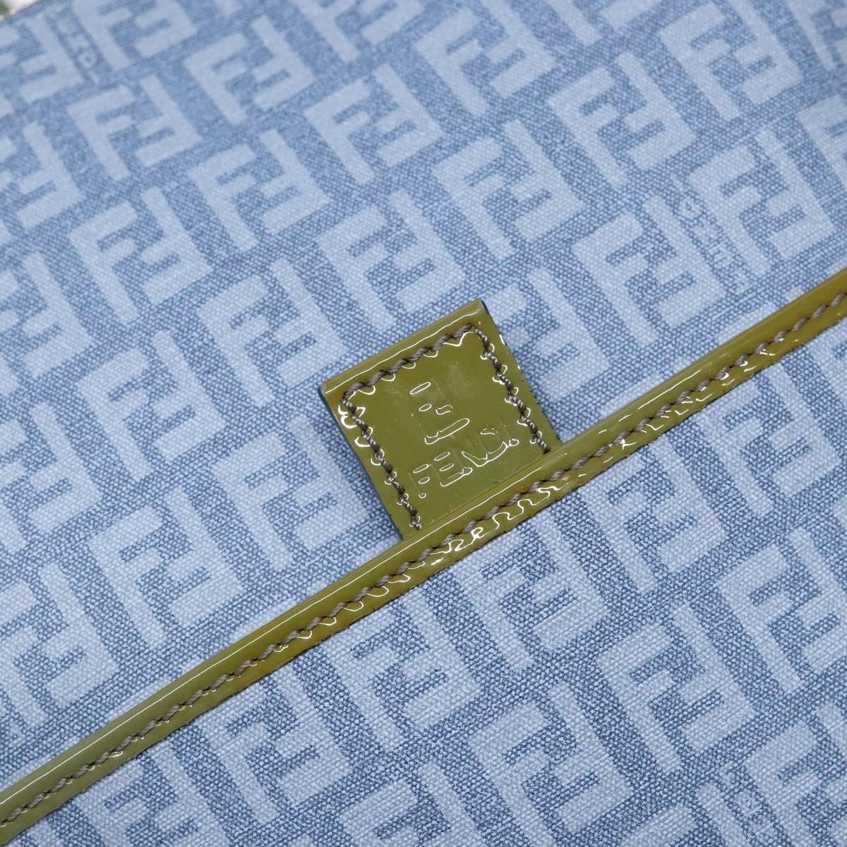 FENDI Zucchino Canvas Shoulder Bag PVC Blue Gold Auth ep10238