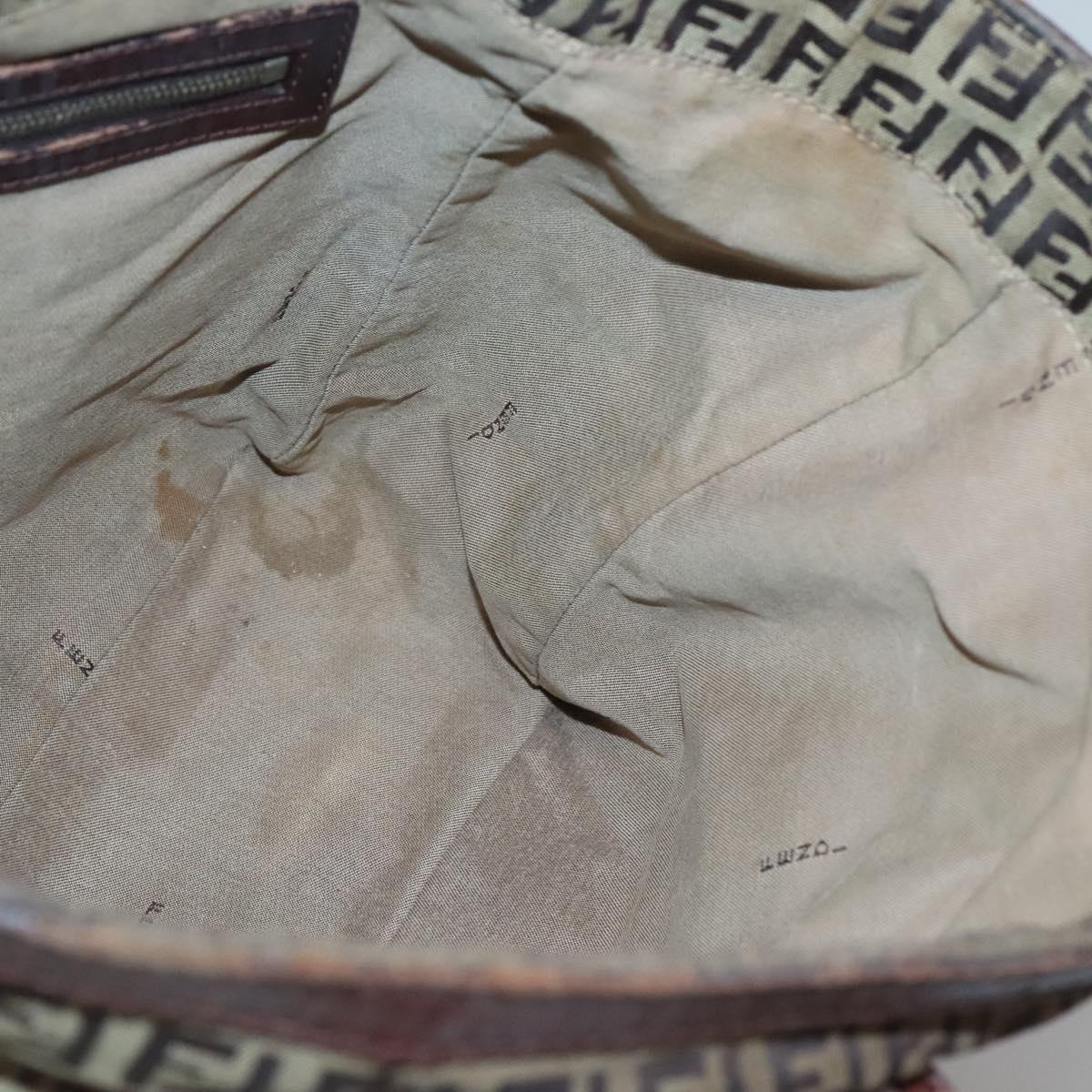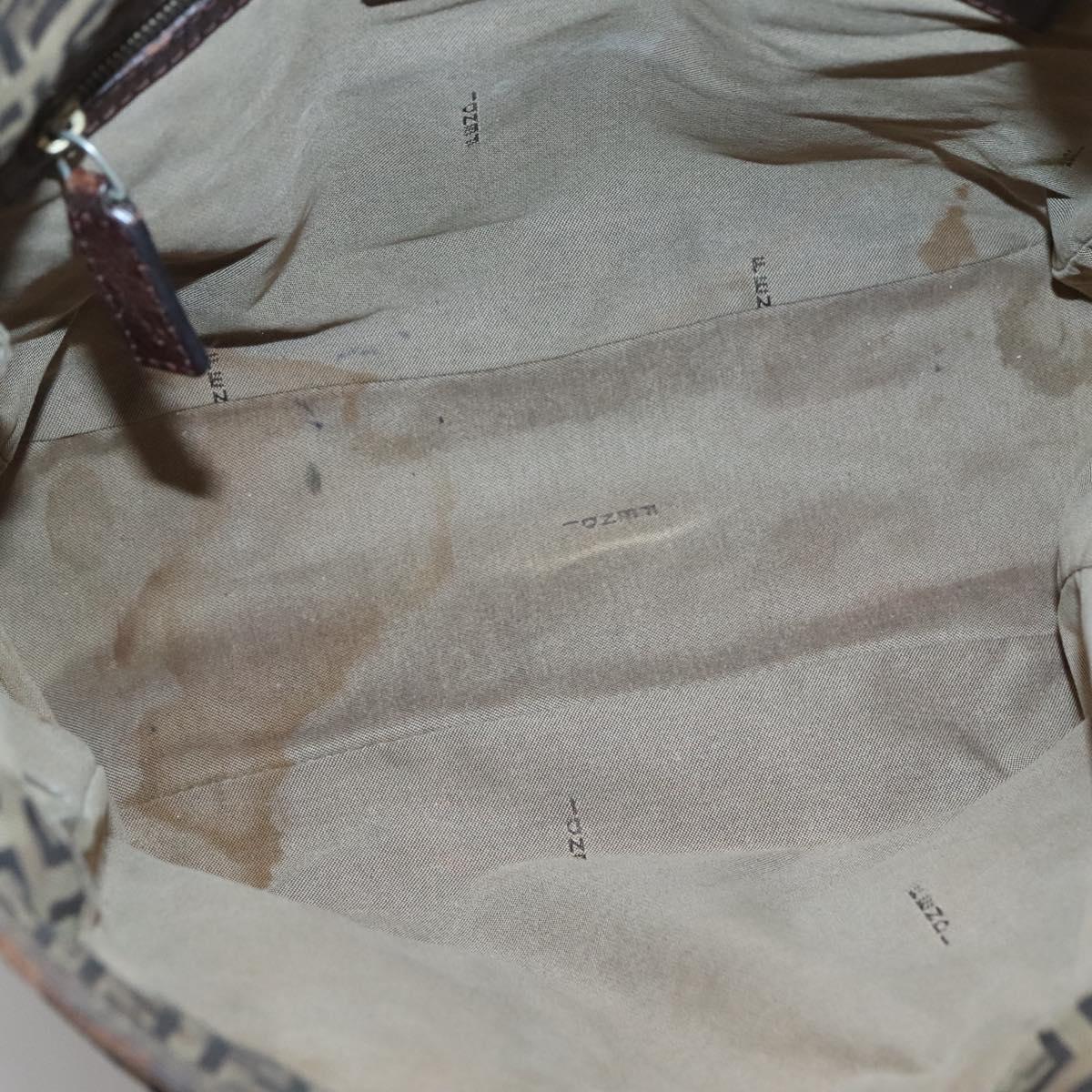 FENDI Zucchino Canvas Tote Bag Brown Gold Auth 139280