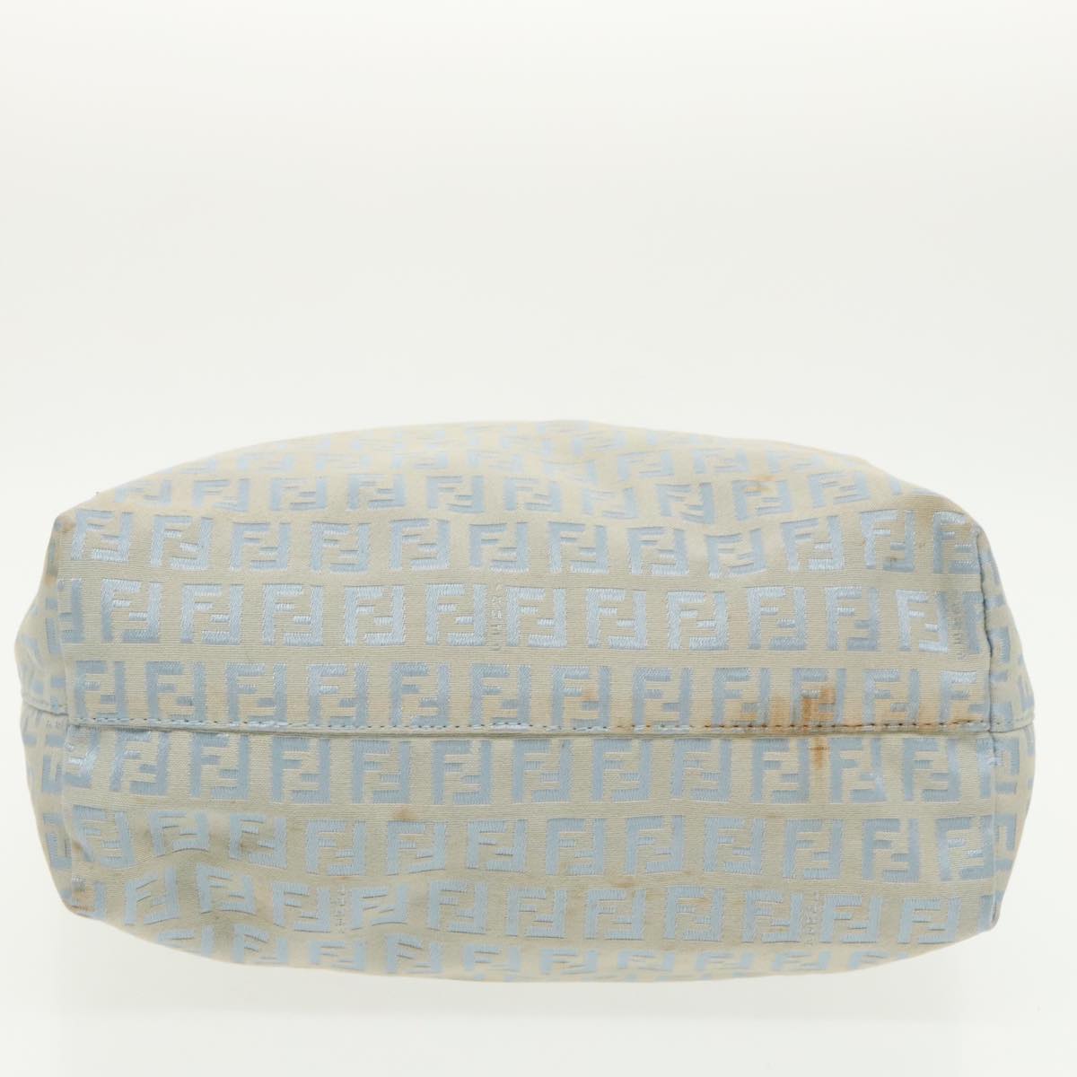 FENDI Zucchino Canvas Tote Bag Light Blue Brown Silver Auth 90434