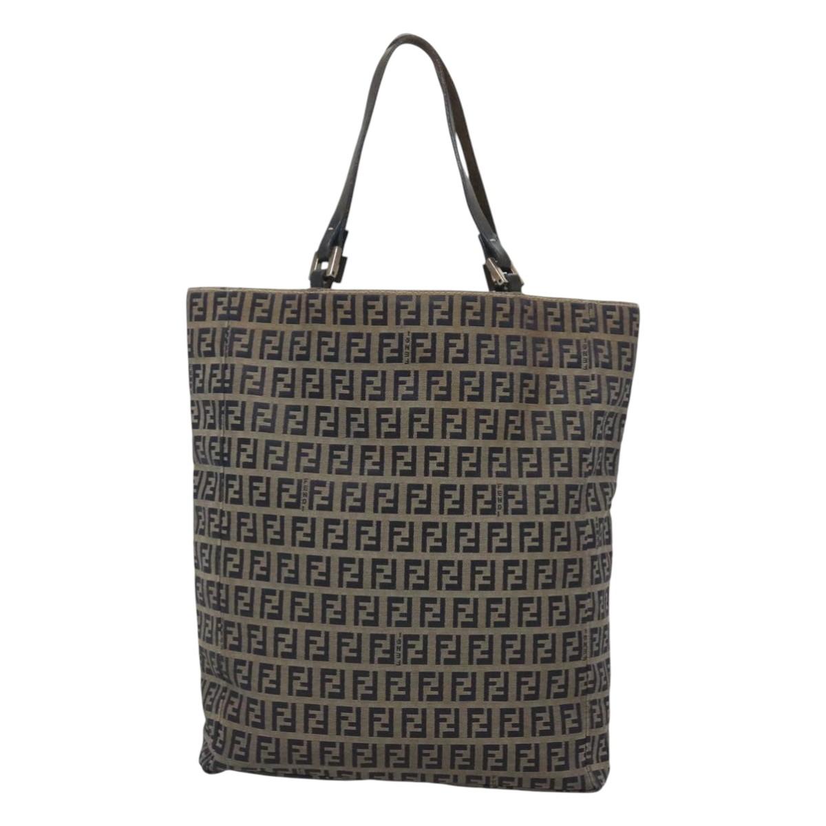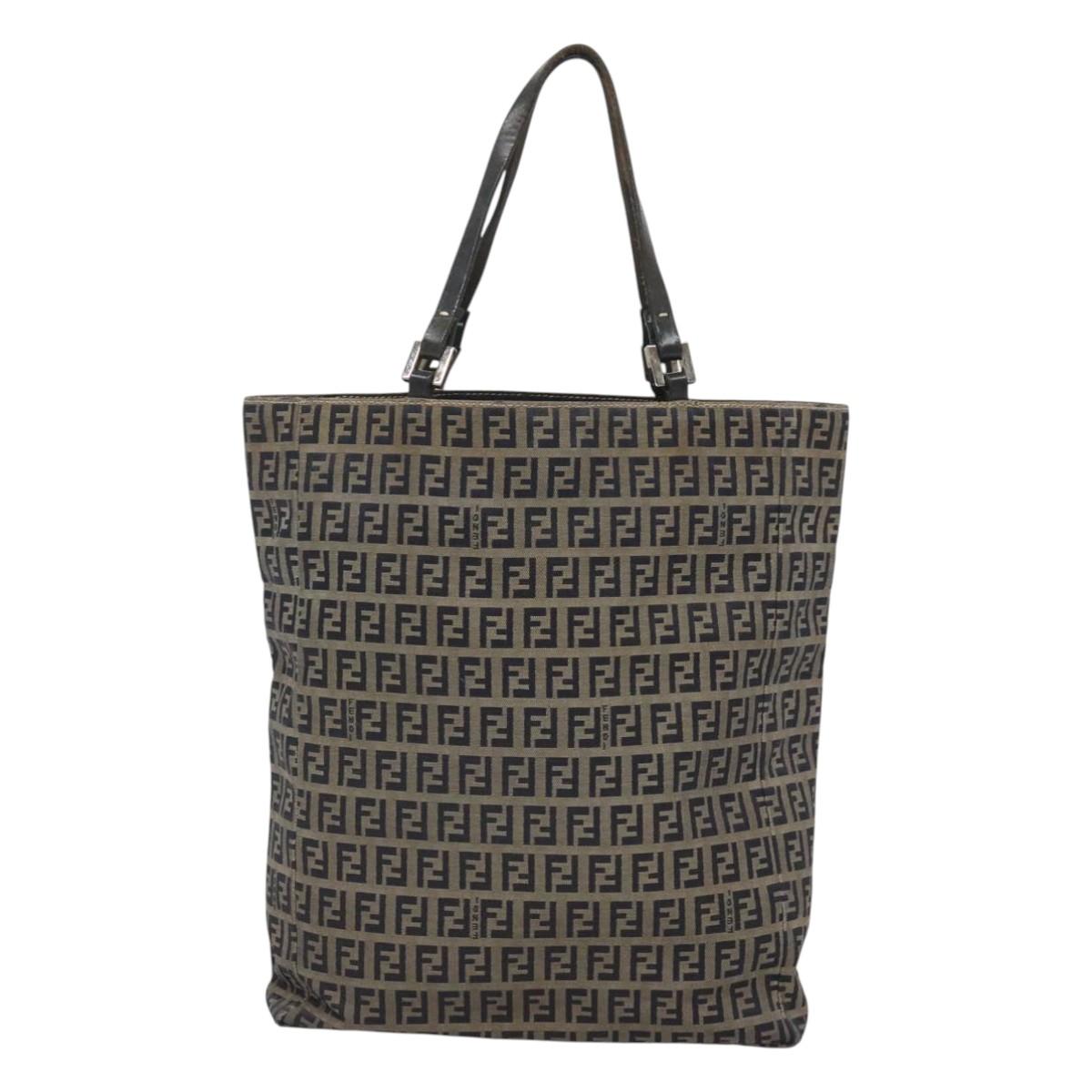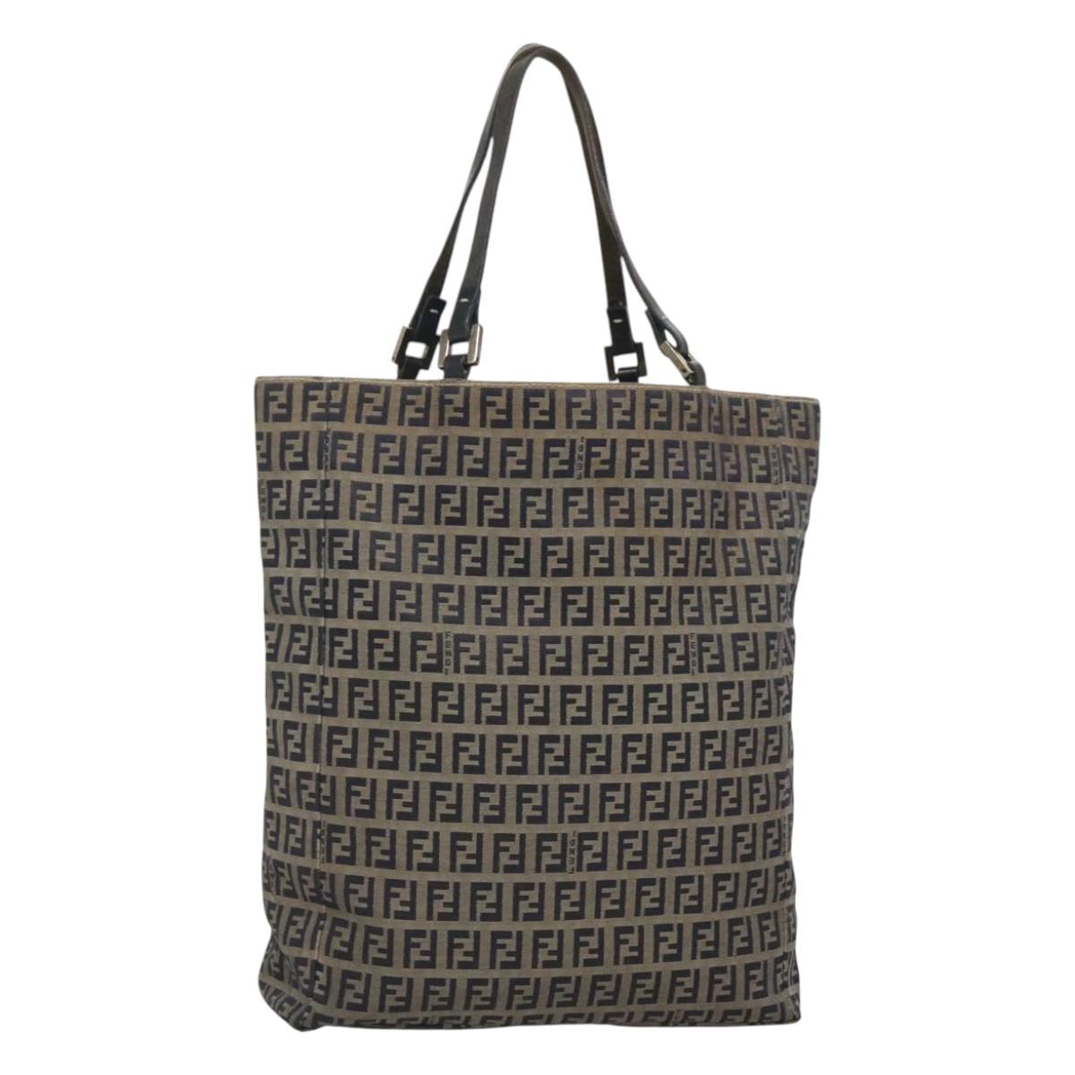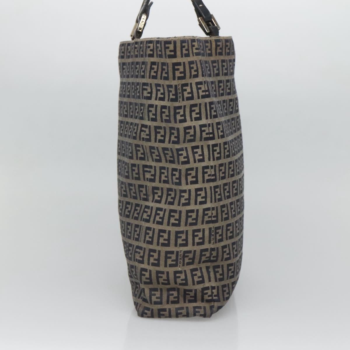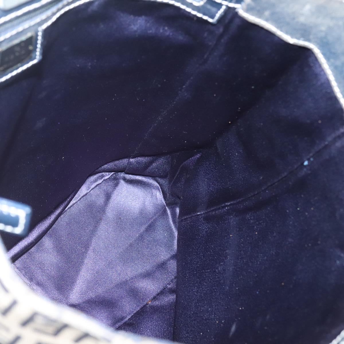 FENDI Zucchino Canvas Tote Bag Navy Silver Auth 126110