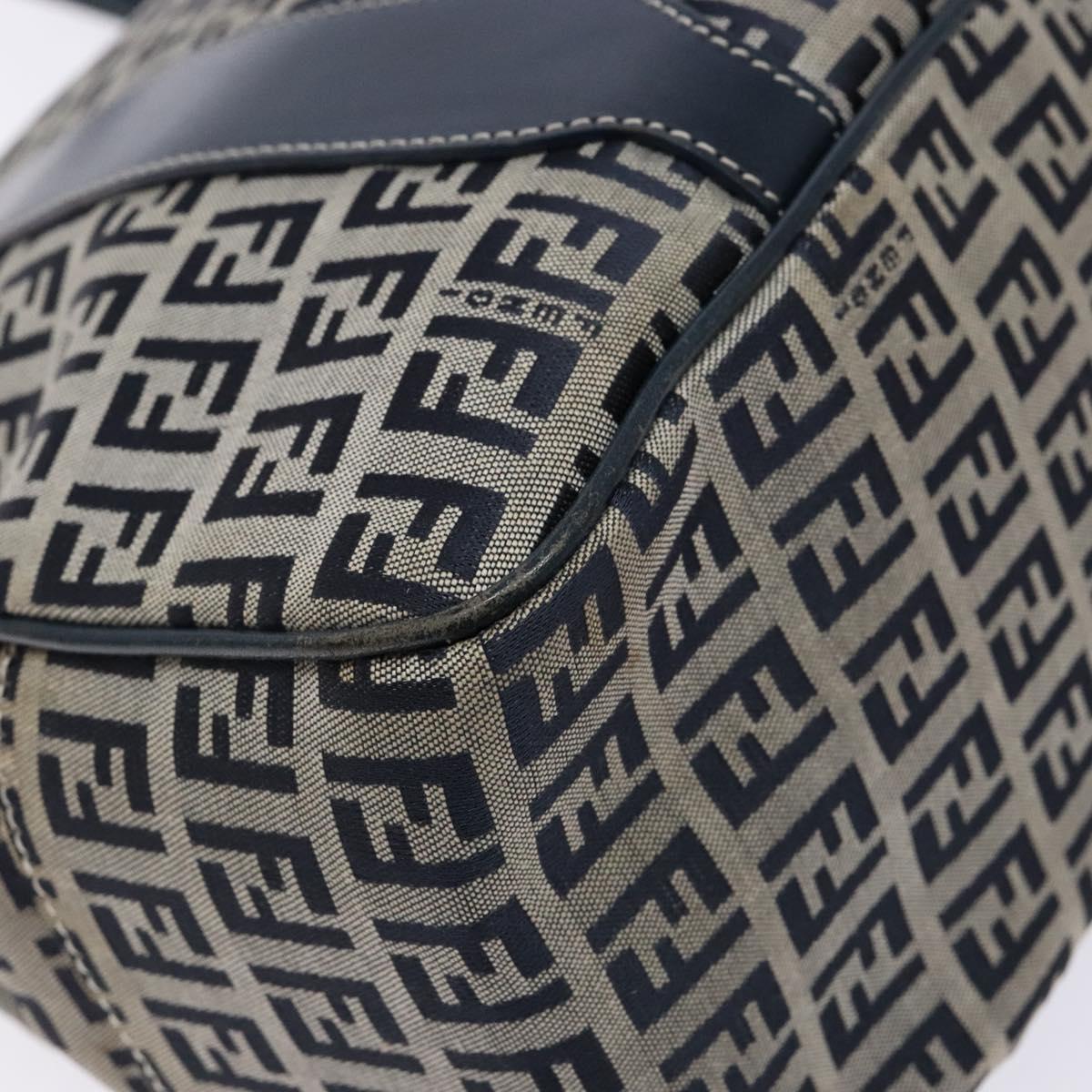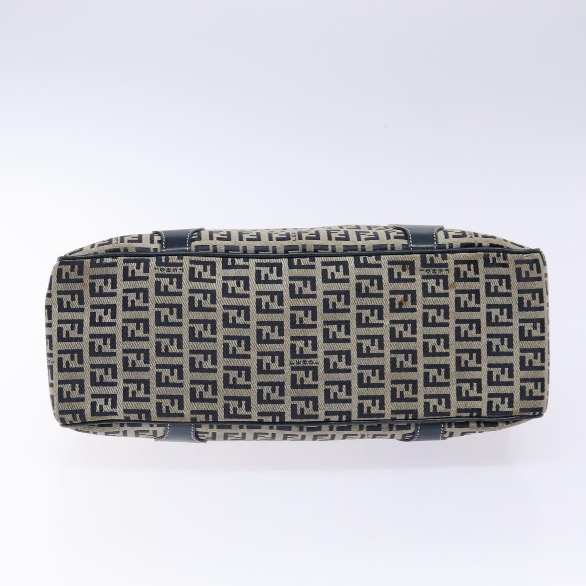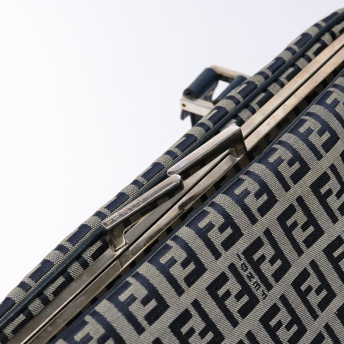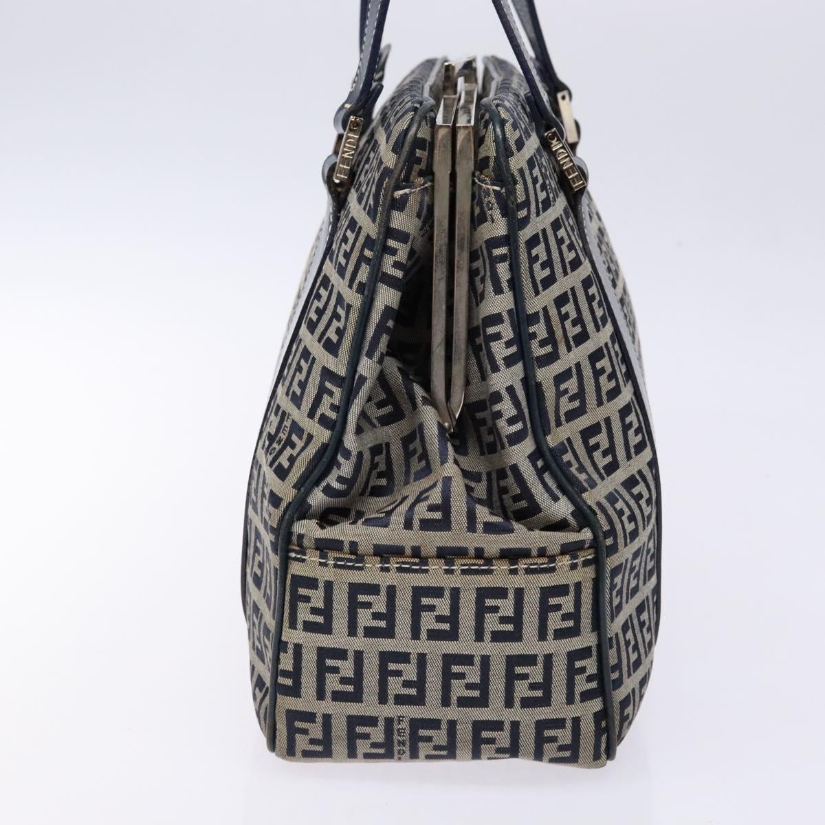 FENDI Zucchino Canvas Tote Bag Navy Silver Auth 139133