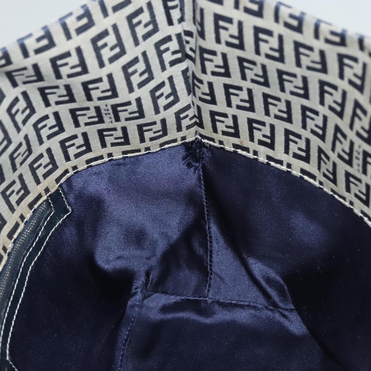 FENDI Zucchino Canvas Tote Bag Nylon Navy Silver Auth 117895