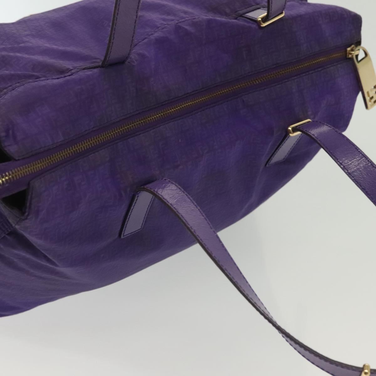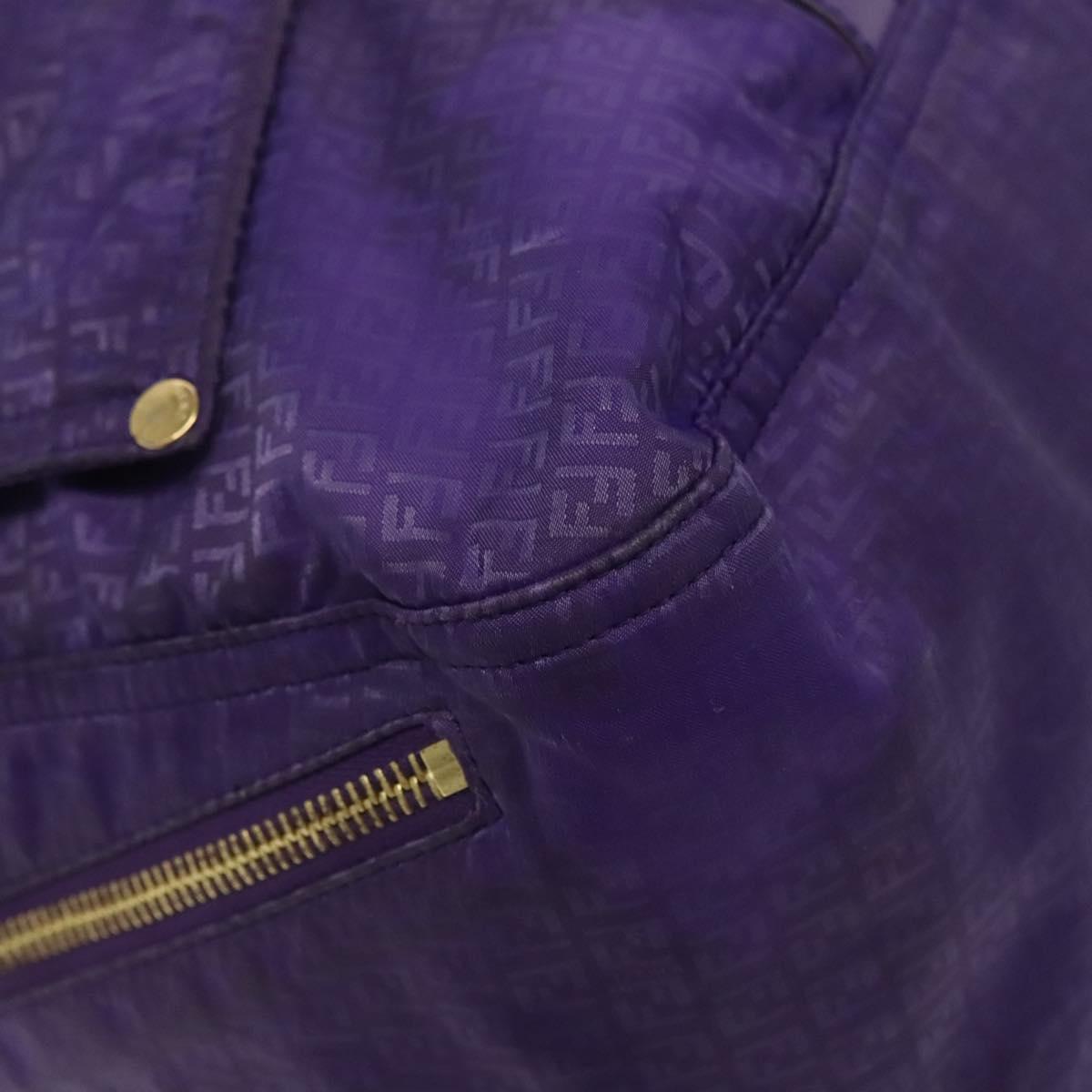 FENDI Zucchino Canvas Tote Bag Nylon Purple Gold Auth bs29272